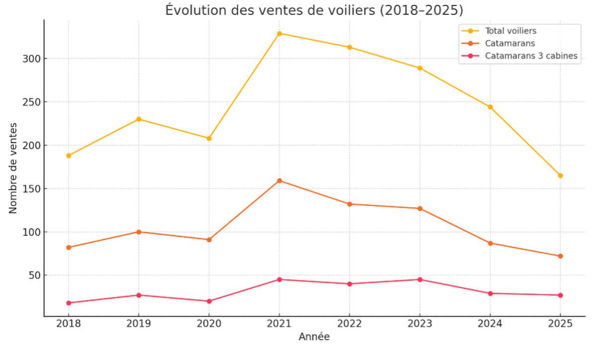 Ces chiffres confirment la prédominance nette des catamarans dans les mises sur le marché récentes.