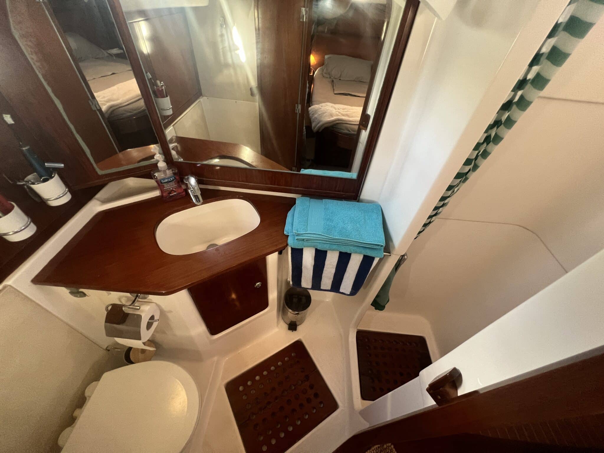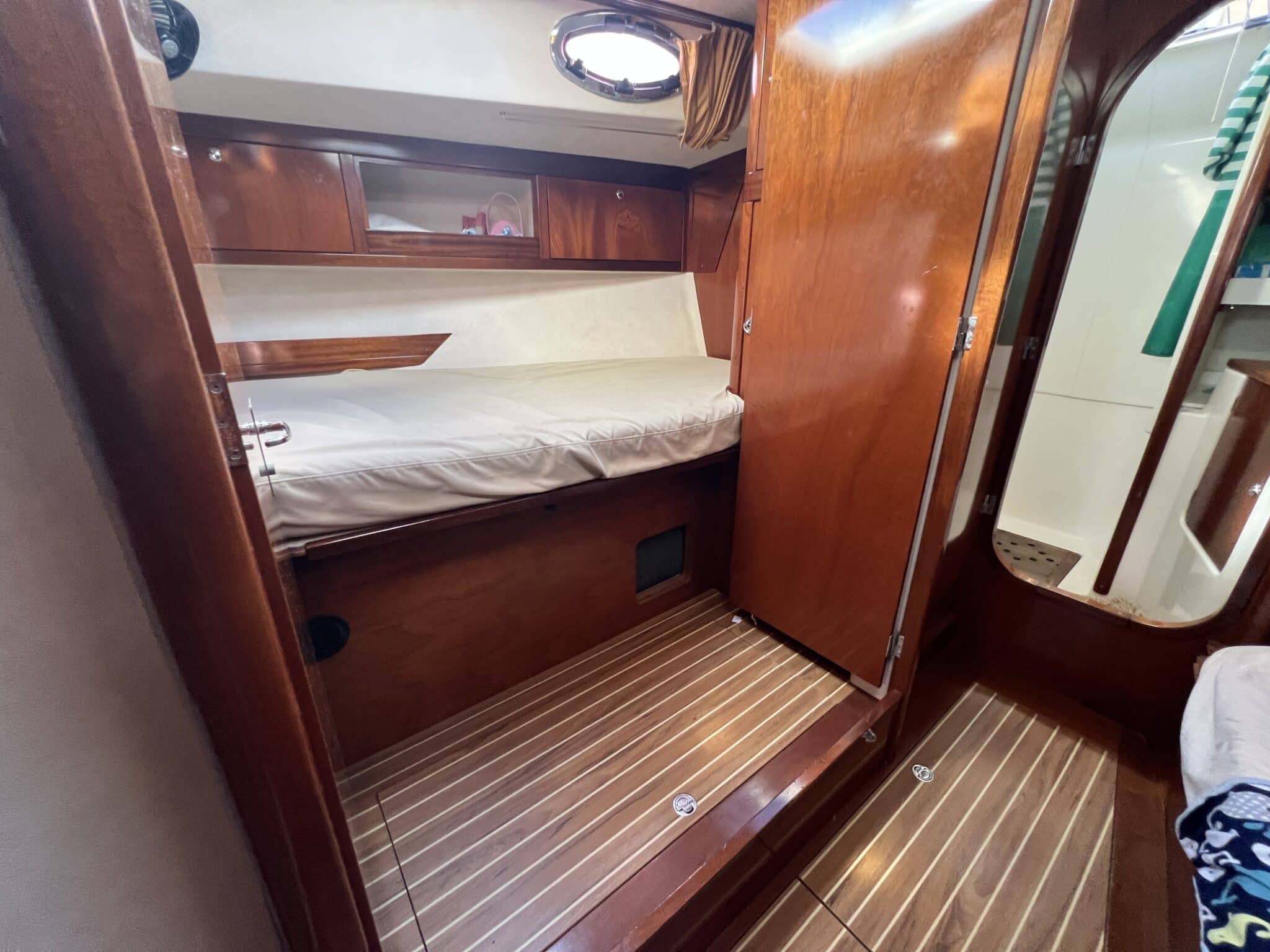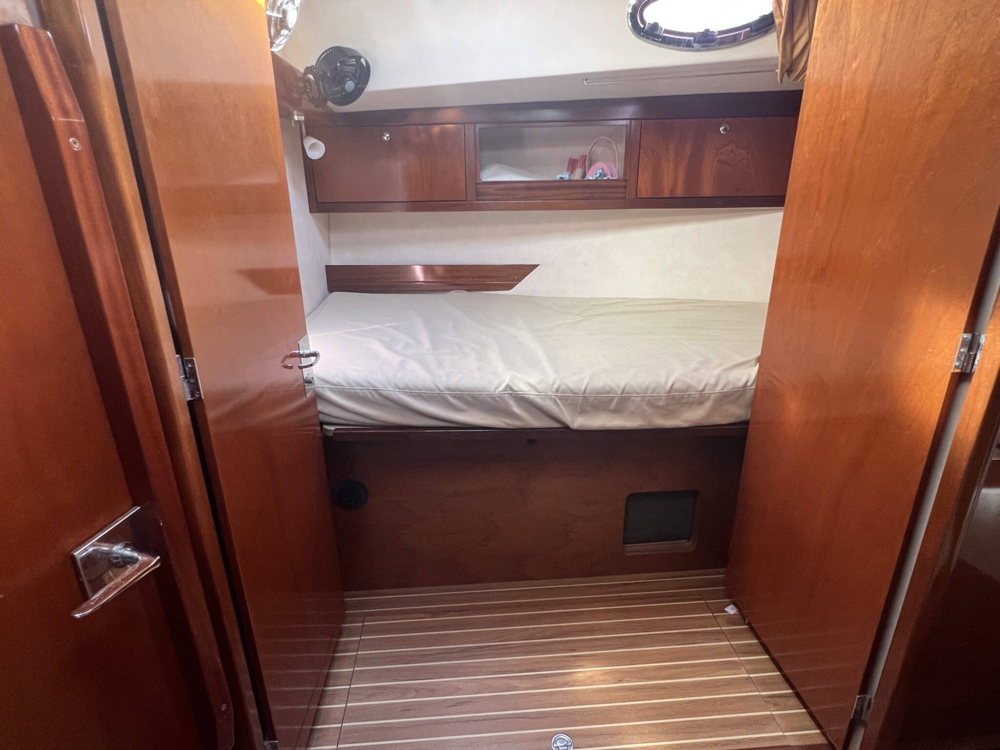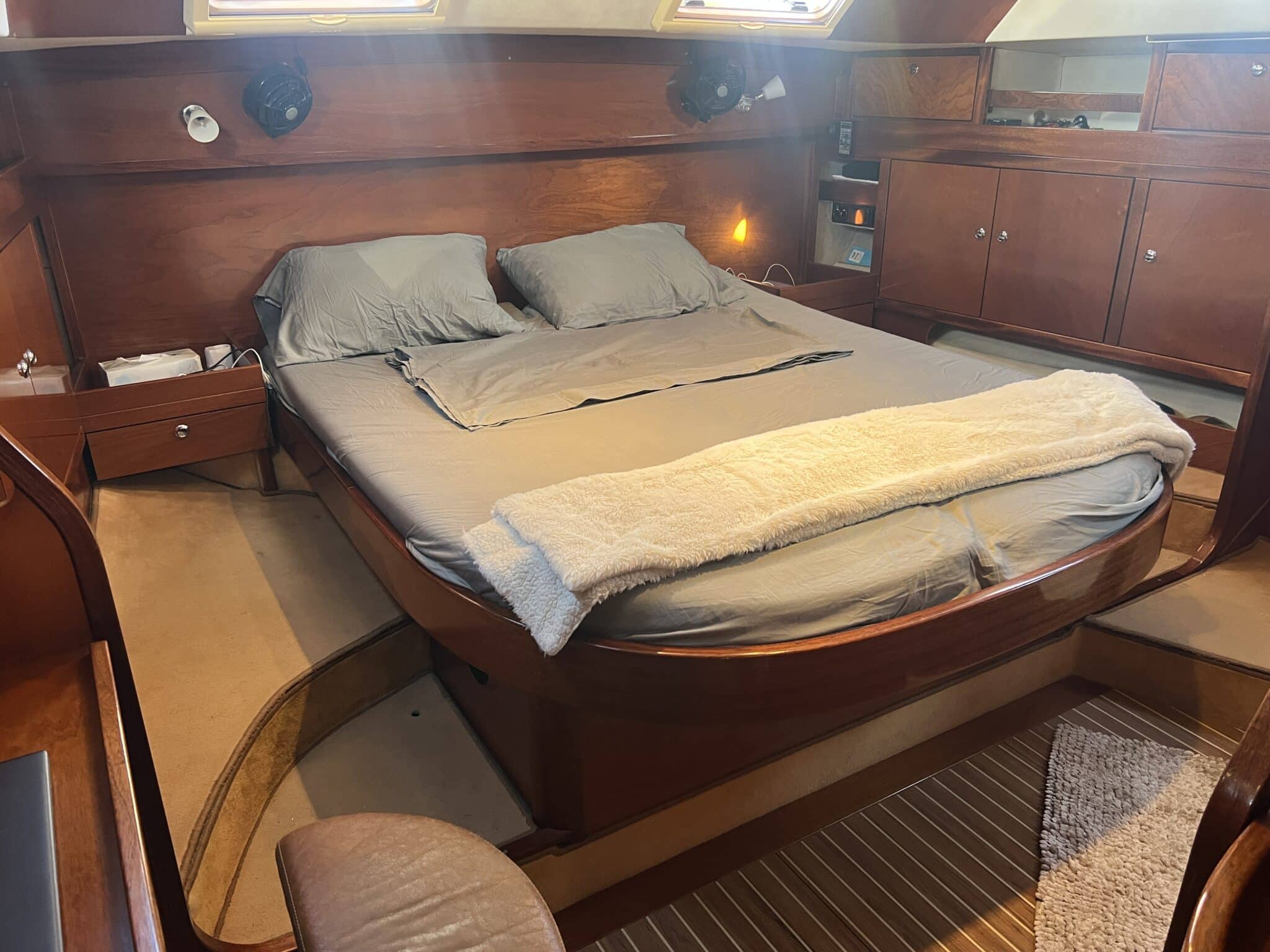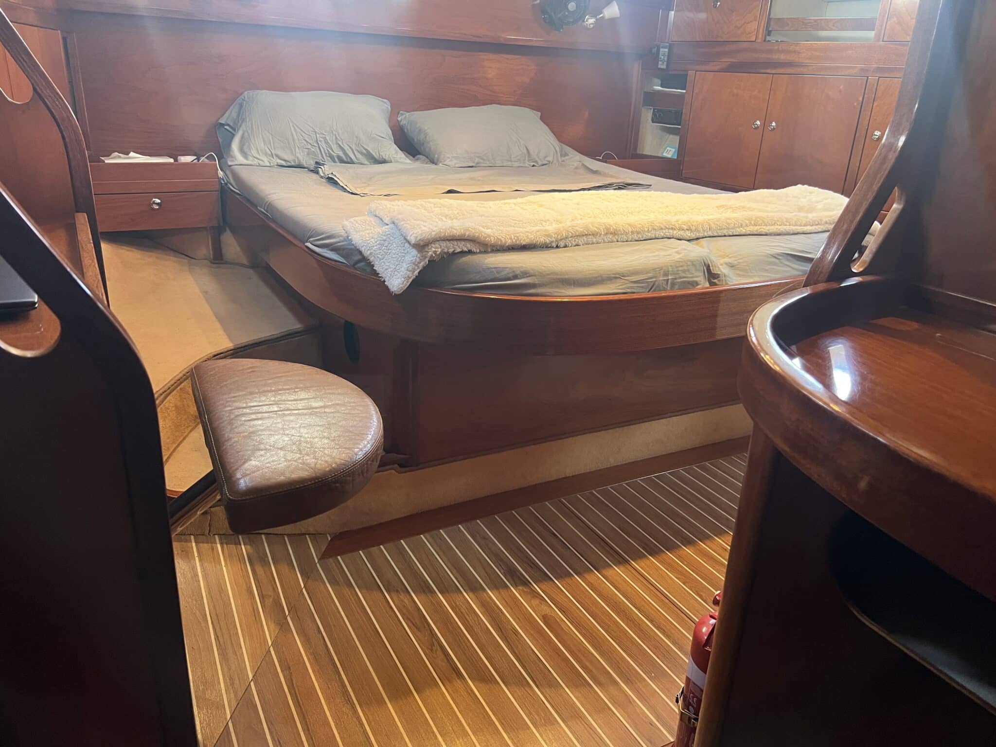 Cabine propriétaire spacieuse à l’arrière avec bureau et salle d’eau privée.