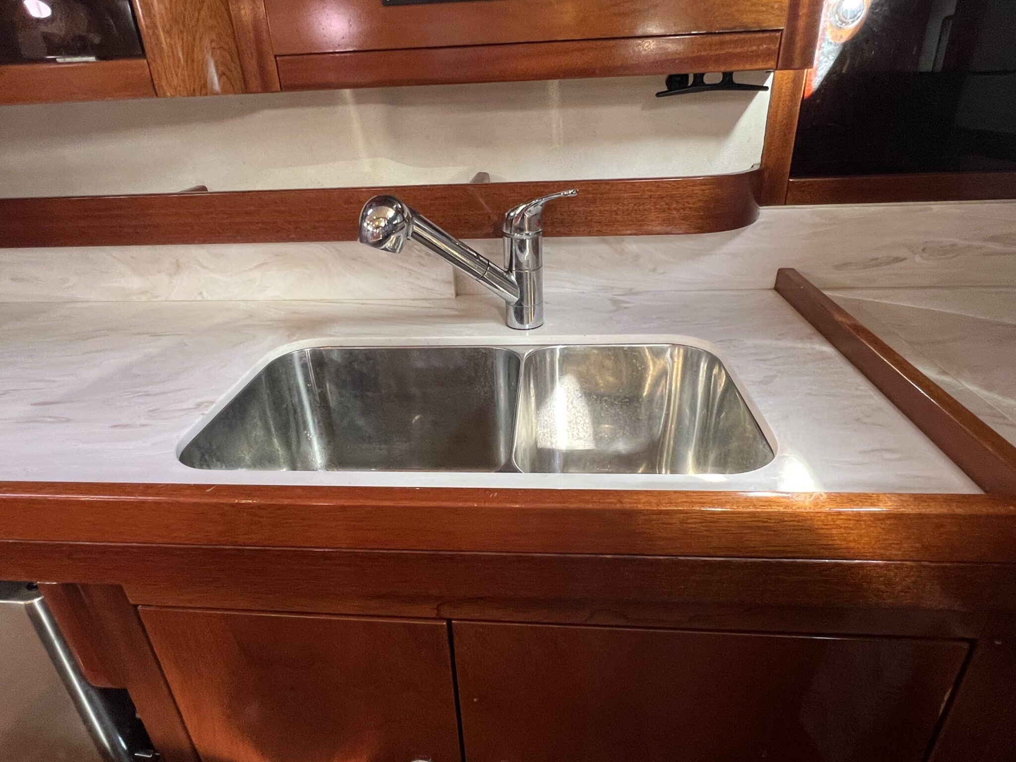 Évier double inox avec eau chaude/froide sous pression