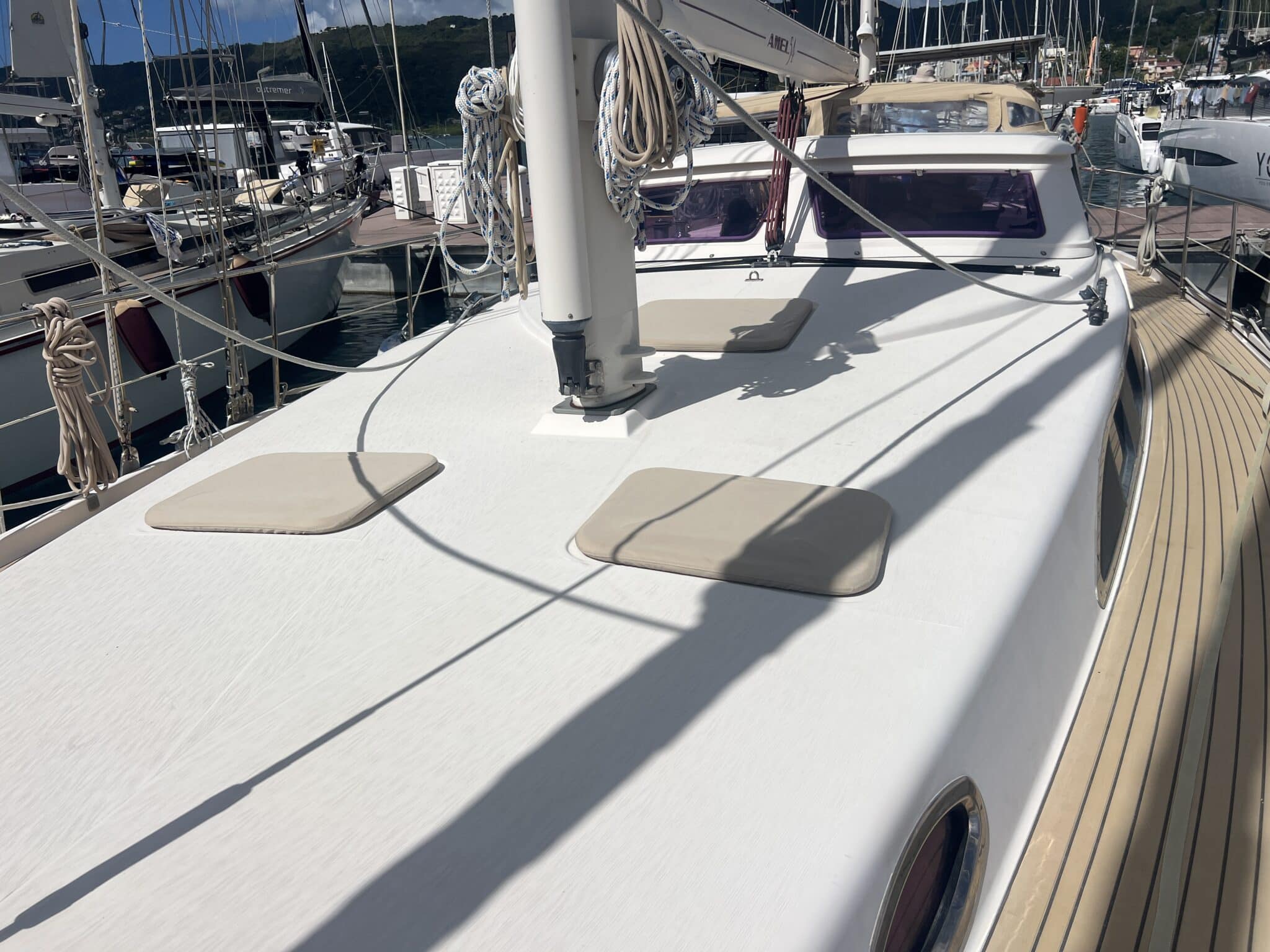 2025 : Nouvelles bandes sur la coque, 2 nouveaux compresseurs de réfrigérateur, entretien de tous les winchs, dessalinisateur, pompe à eau neuve, 9 ventilateurs, nouveau couvre-barre