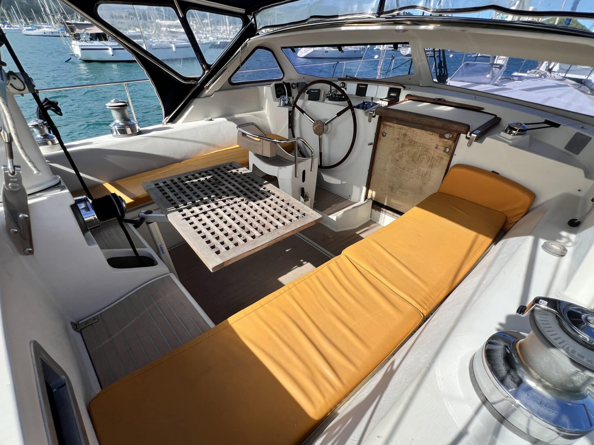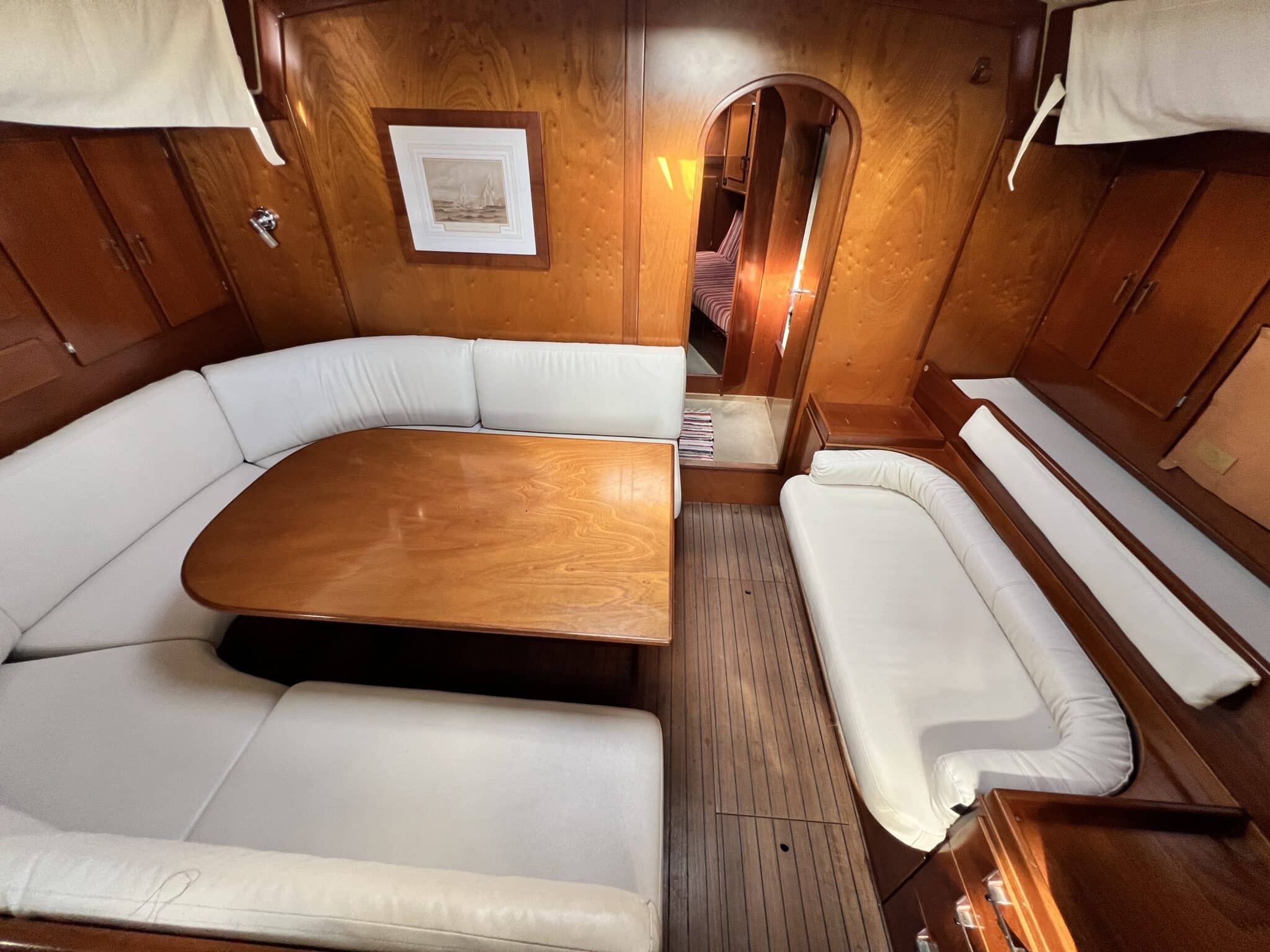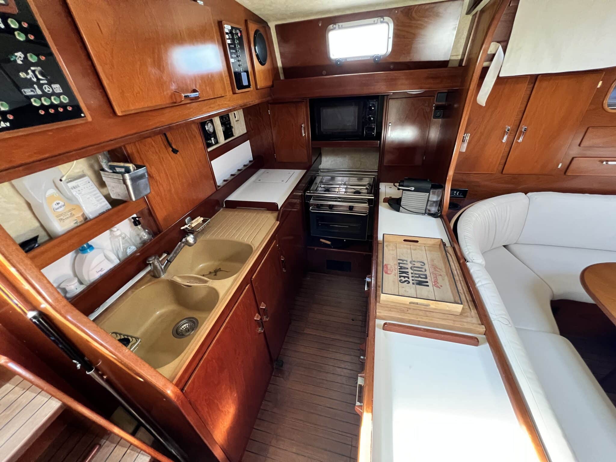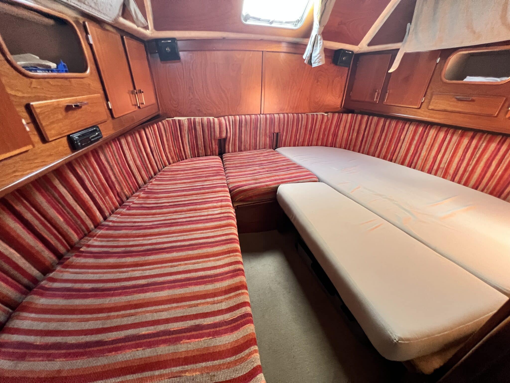 Coté tribord avec siège canapé / couchette de quart