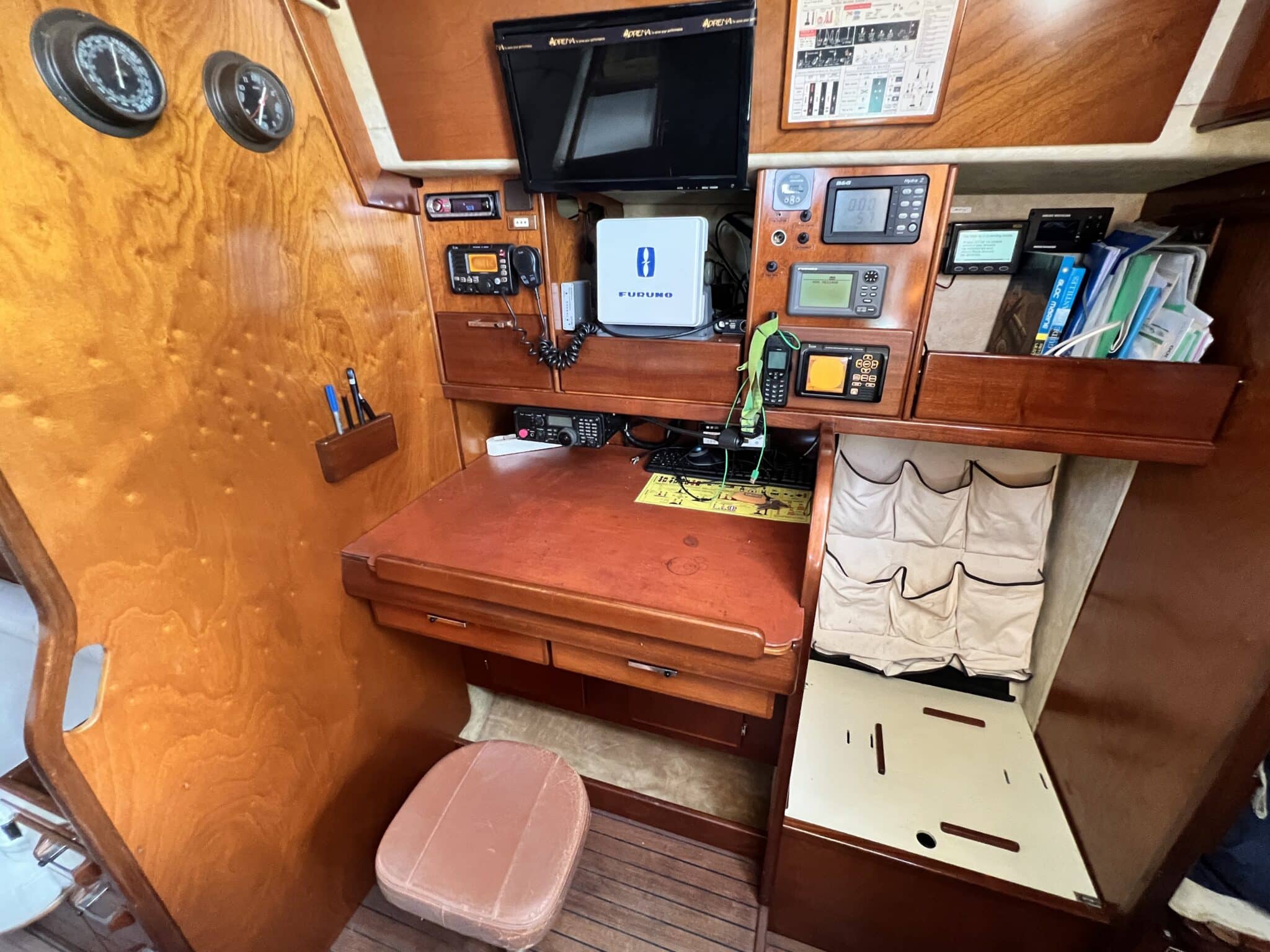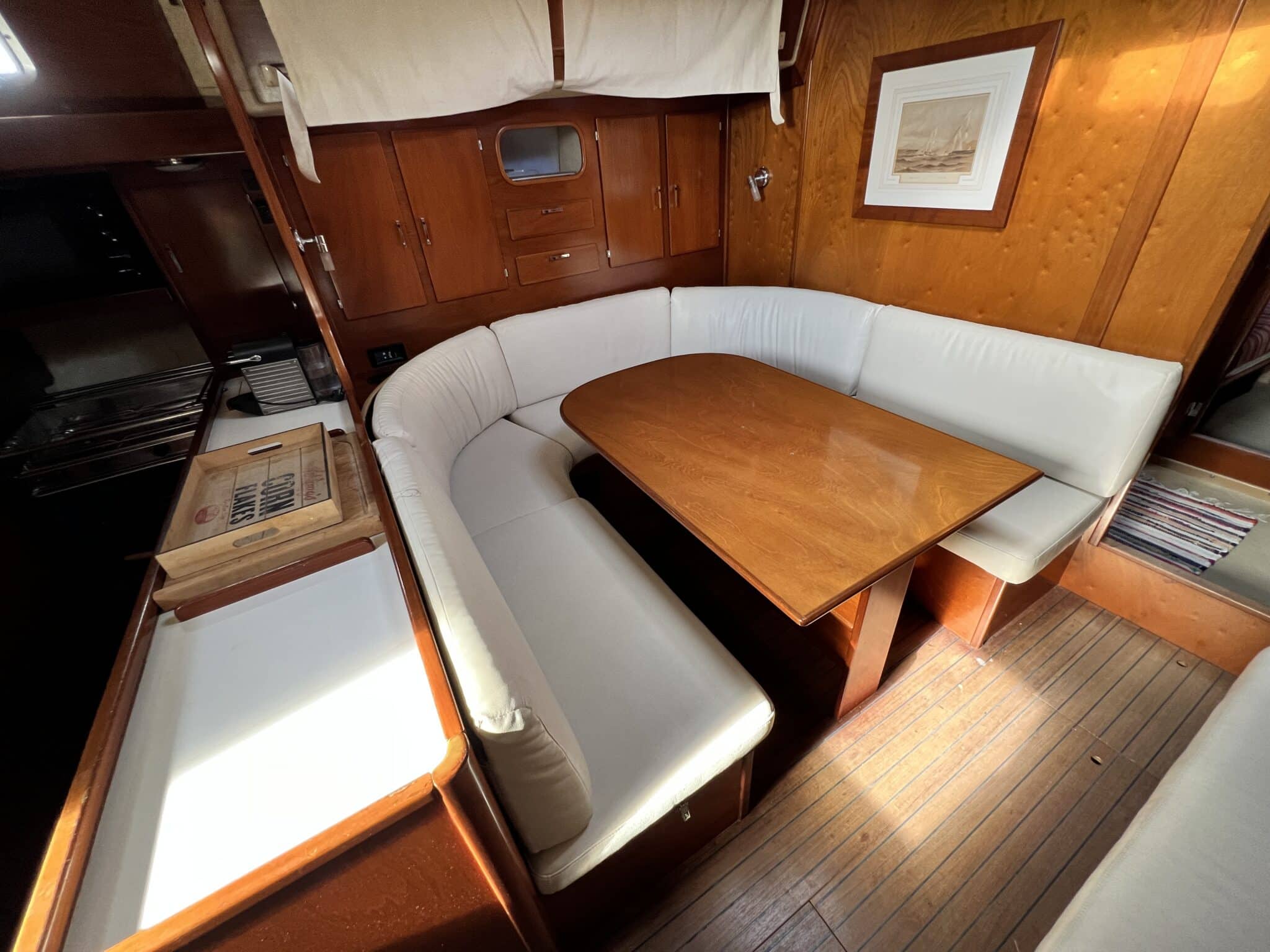 Table à carte sur tribord de la descente avec nombreux rangements