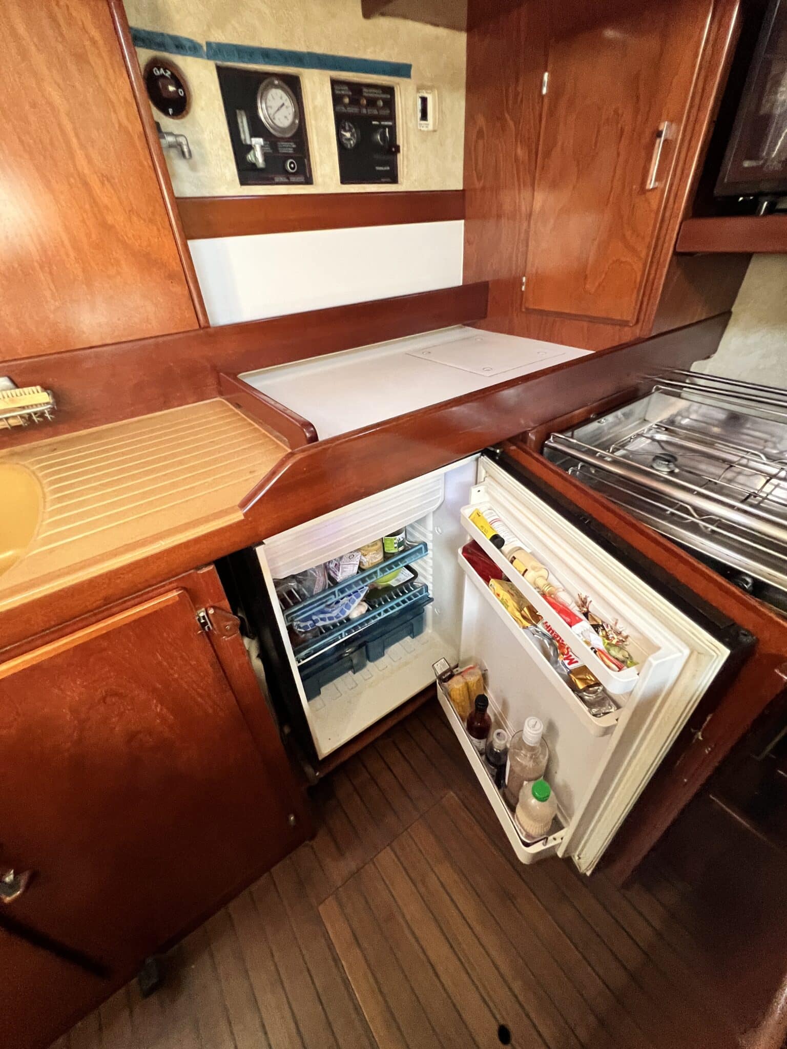 Vaste carré en bas de la descente avec cuisine sur bâbord