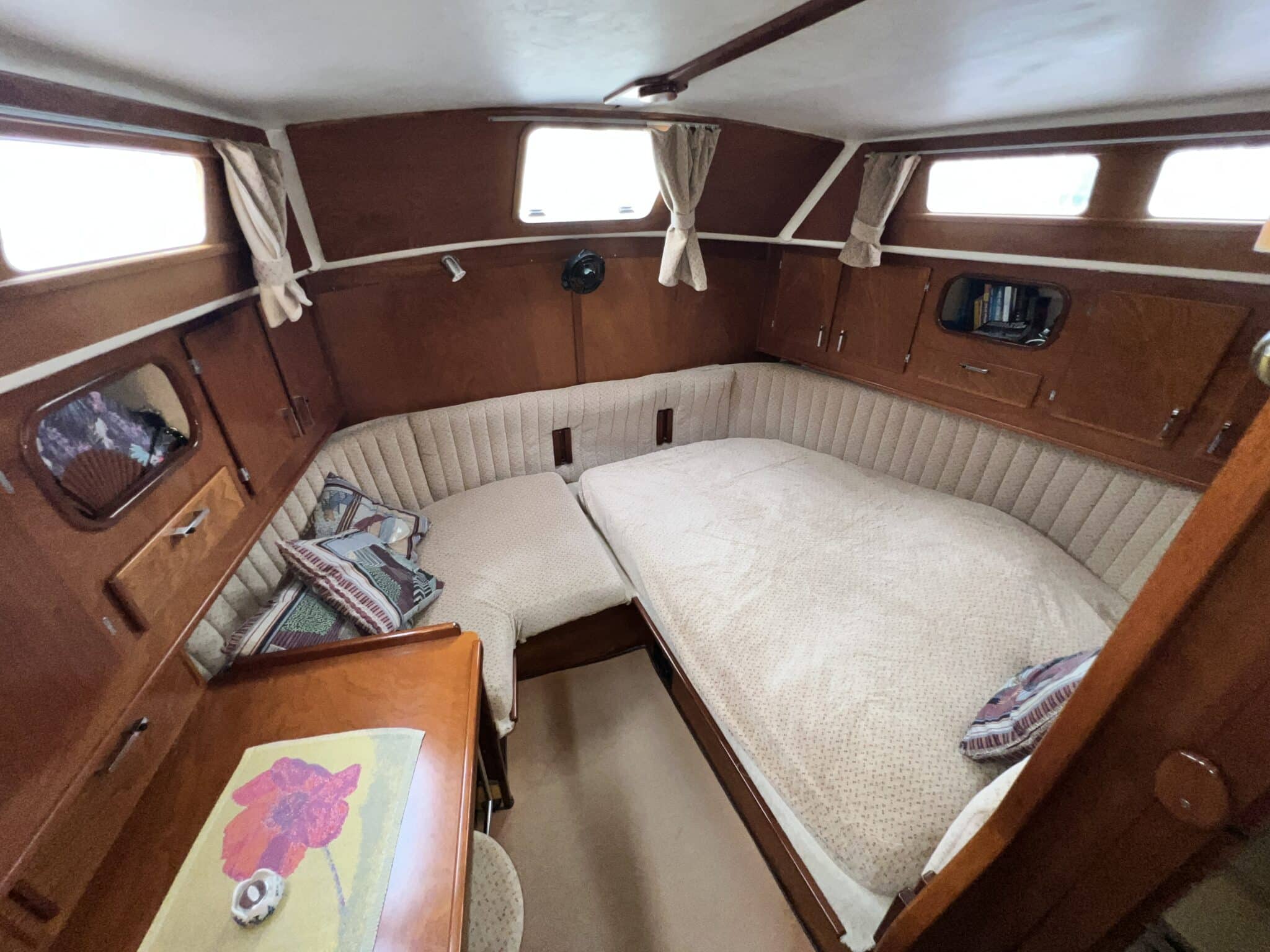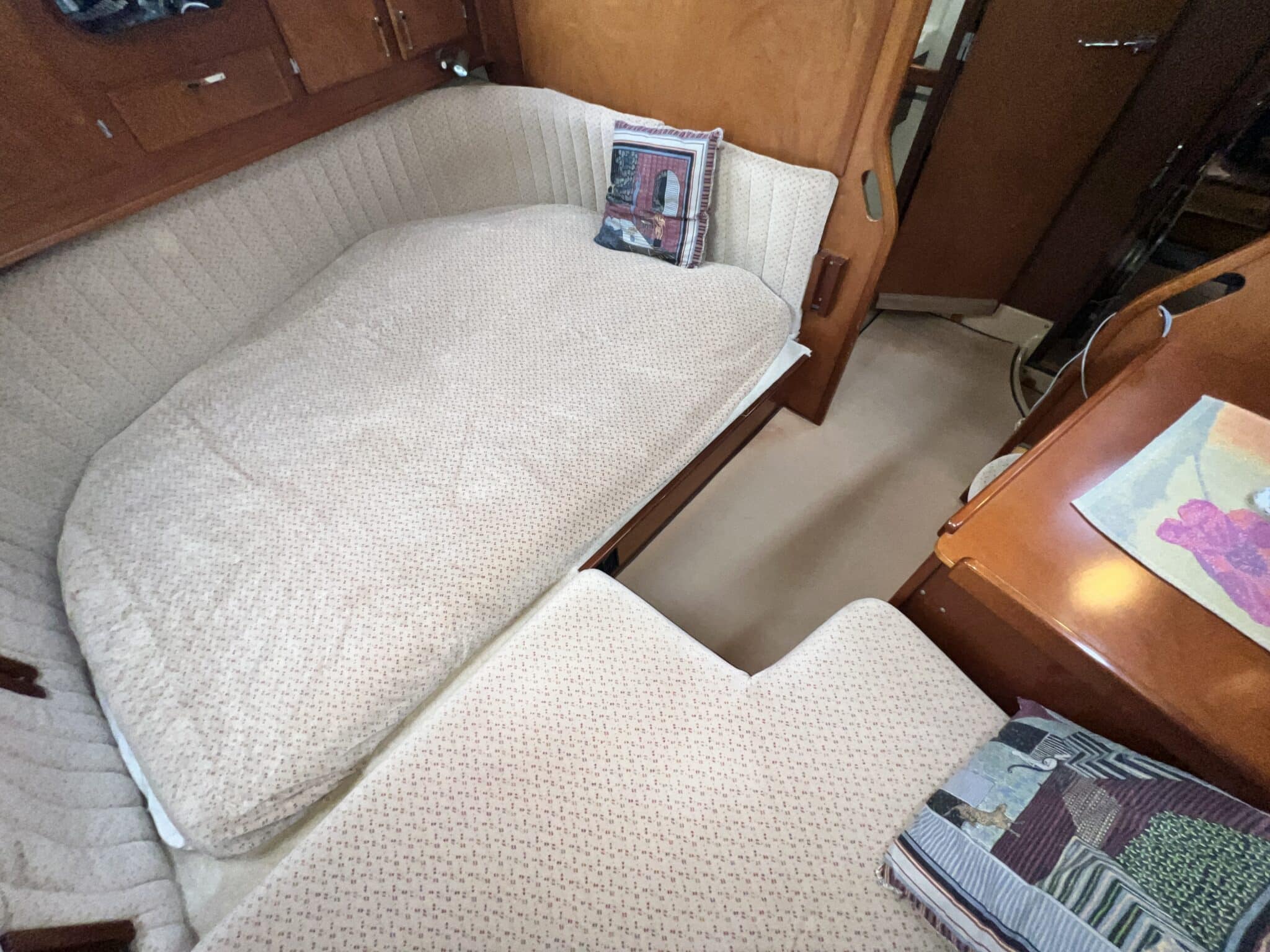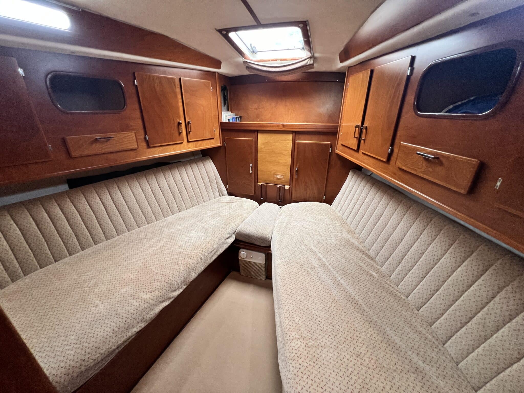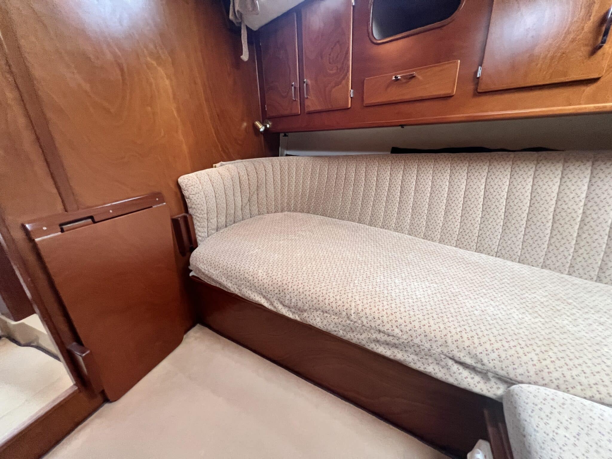 La coursive arrière est équipée d’une couchette de mer avec tiroirs de rangement dessous