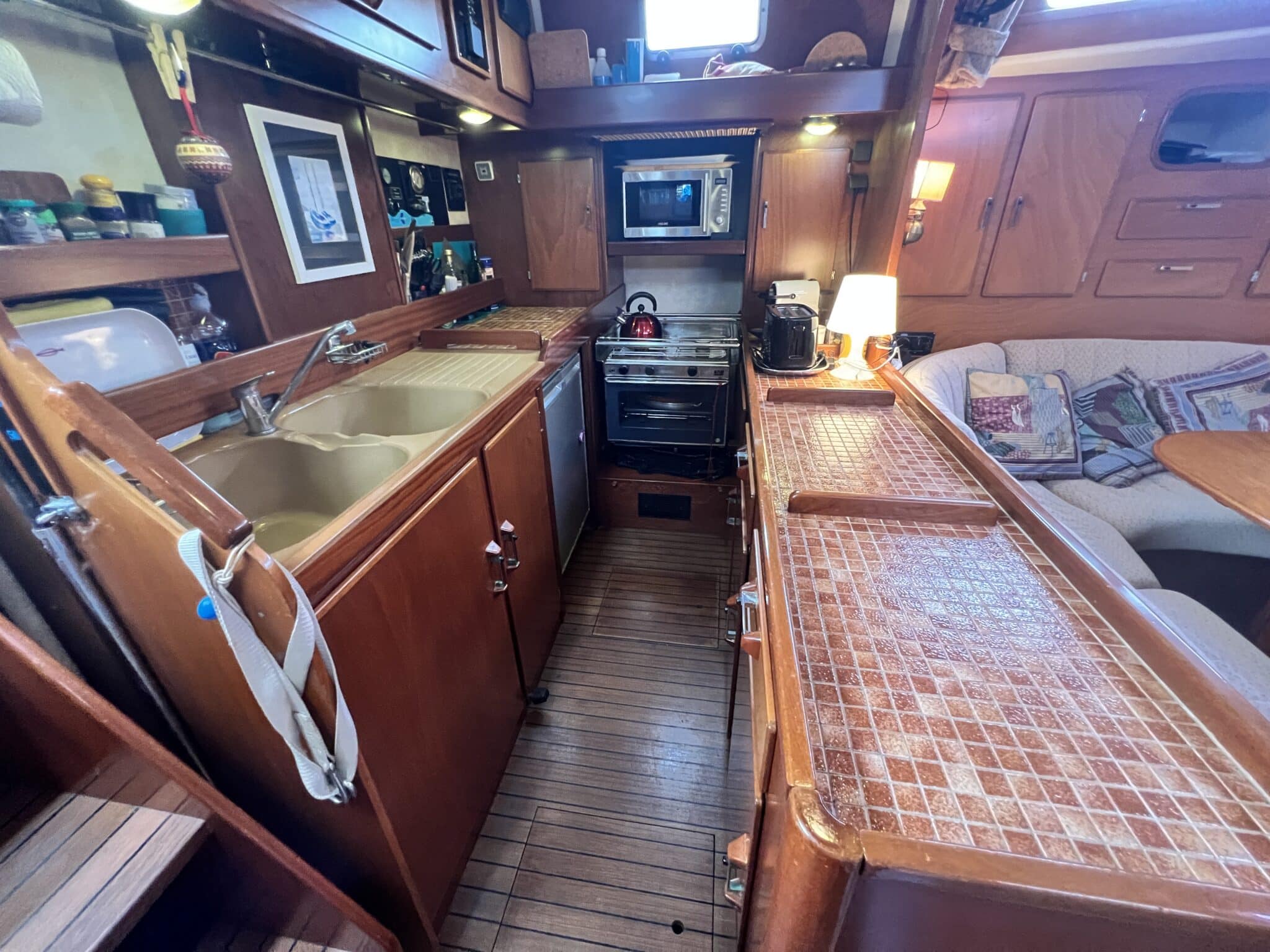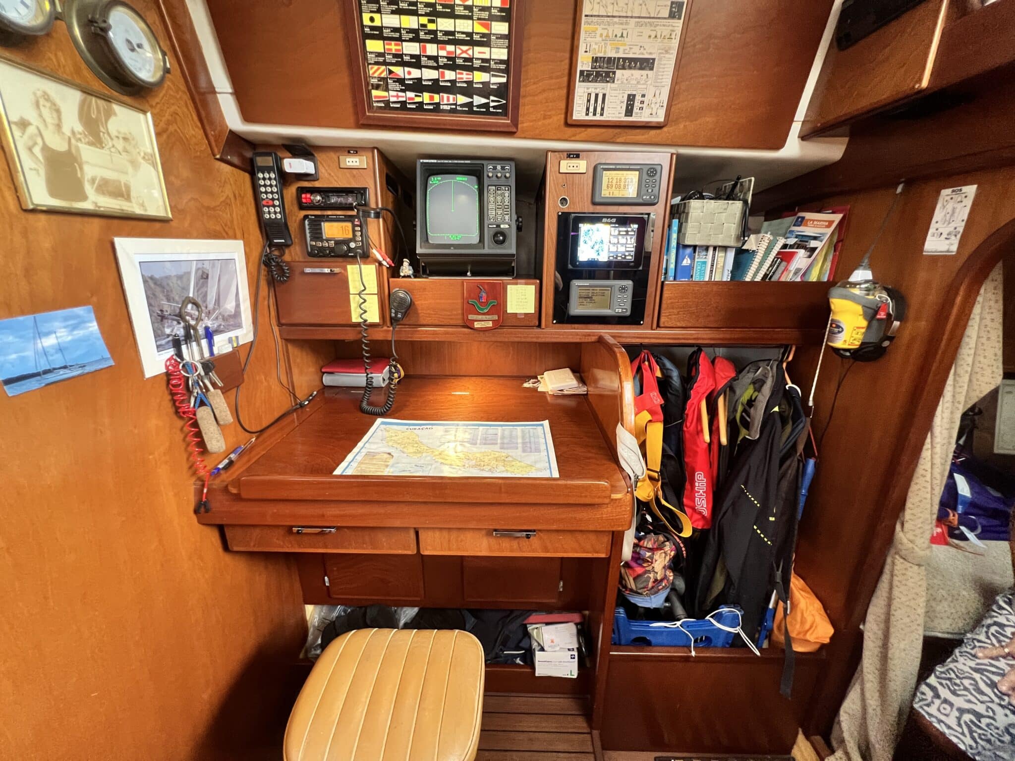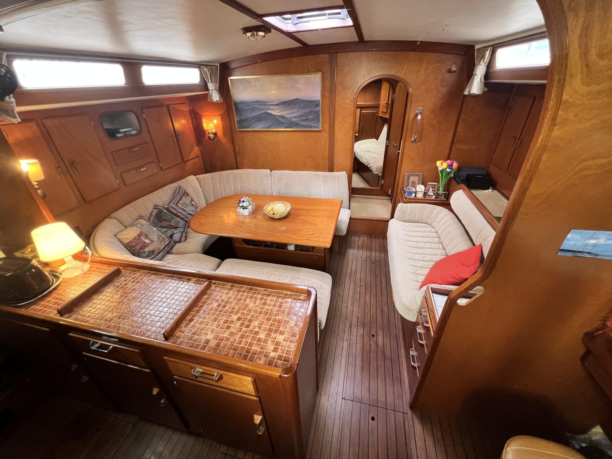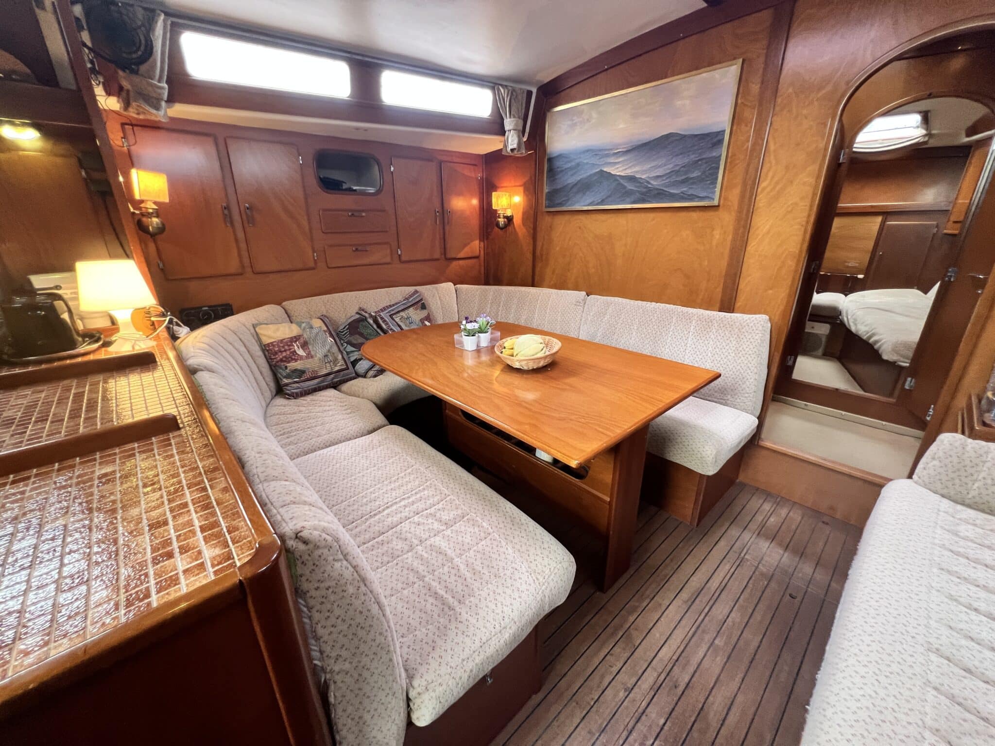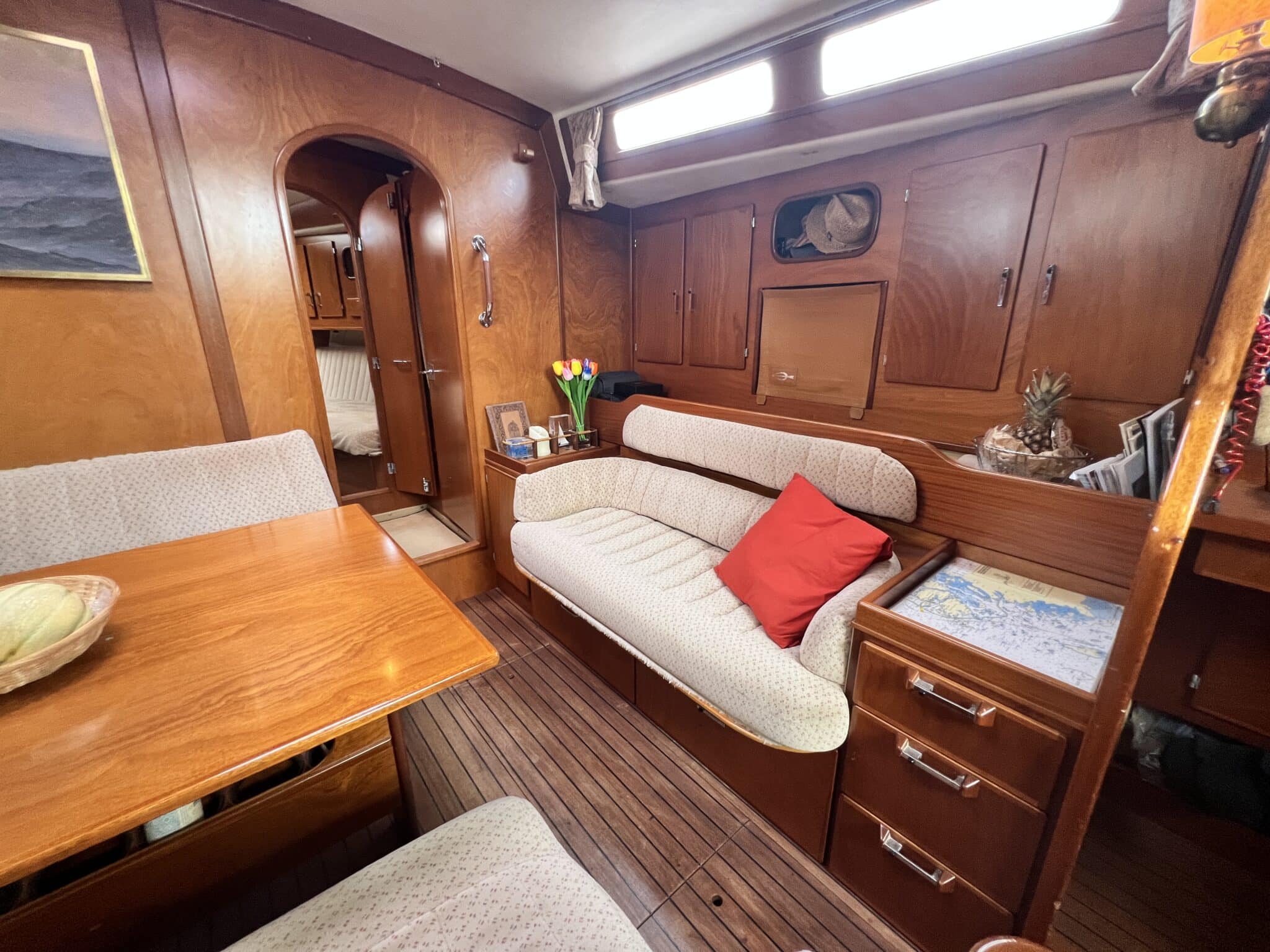 Spacieux carré, cuisine sur bâbord, table à carte sur tribord
