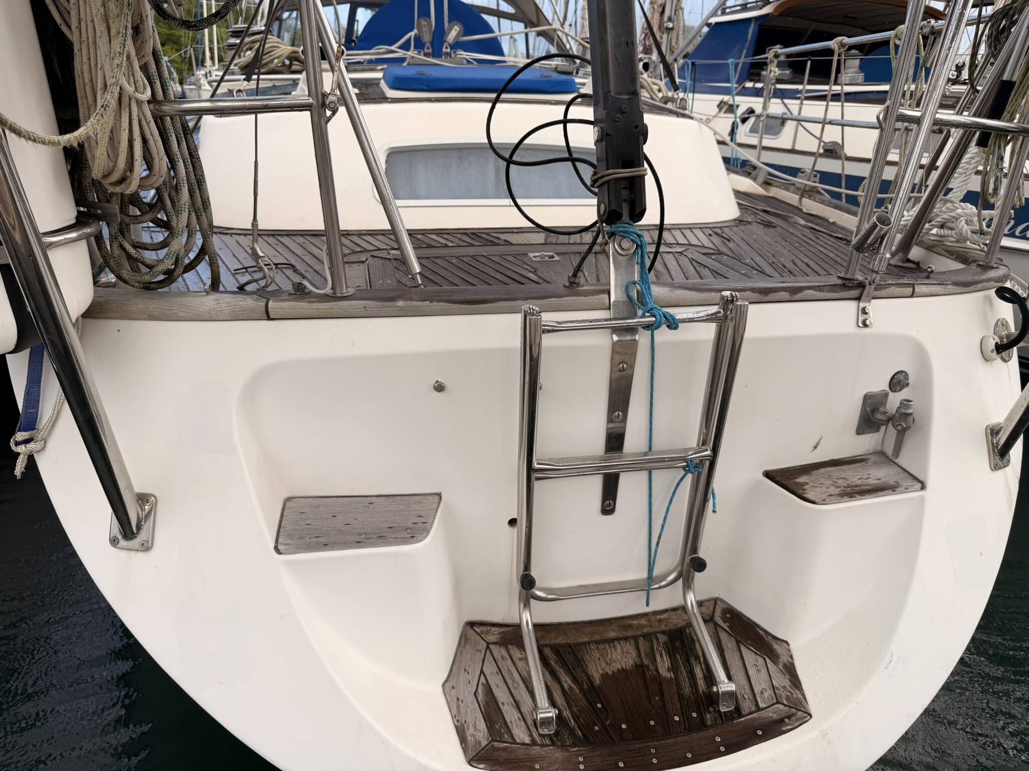 Echelle de bain et douchette dans jupe arrière