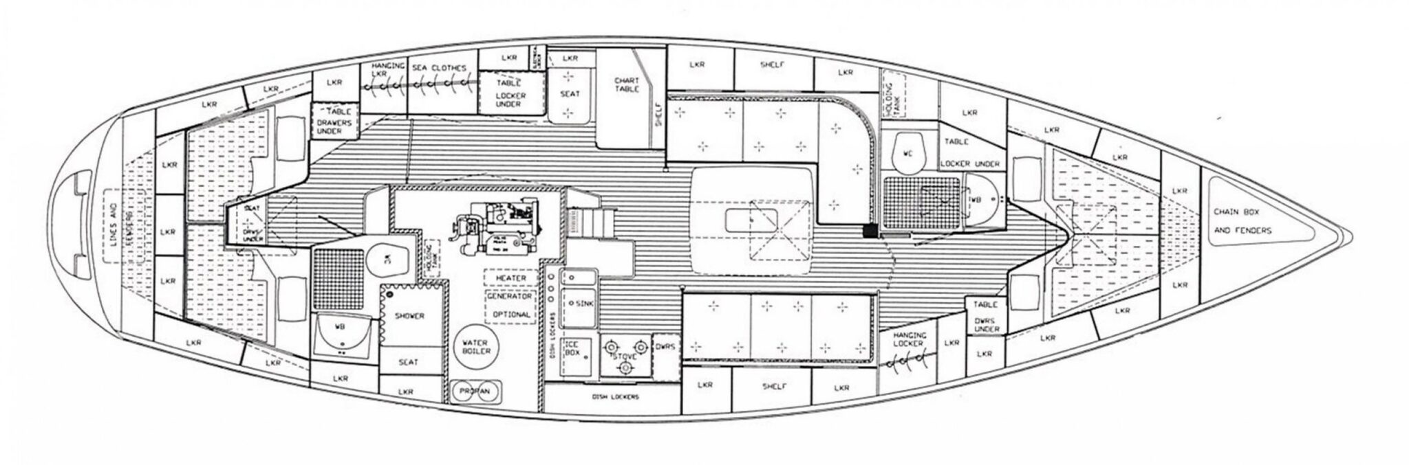 Grande couchette de navigation à tribord