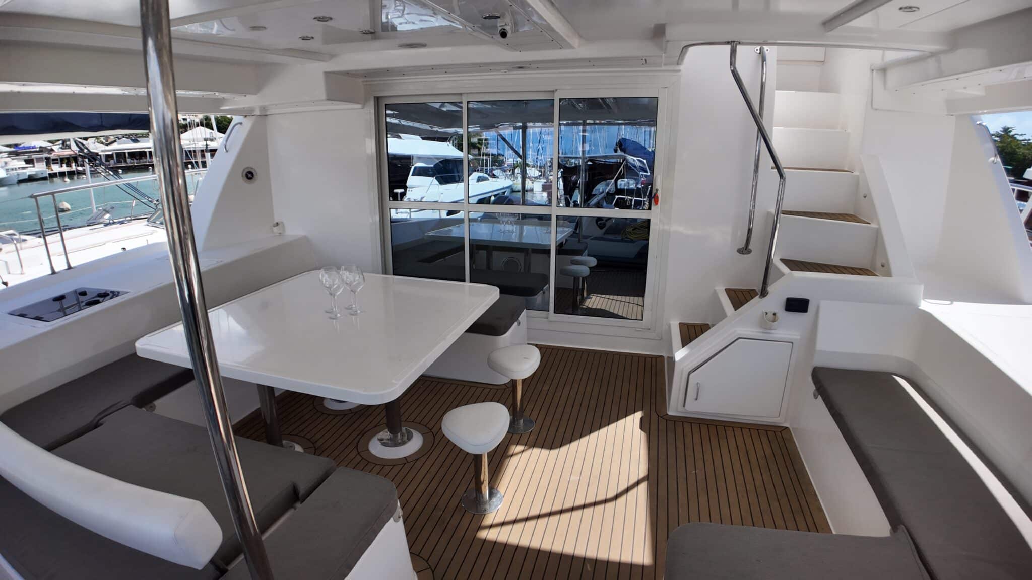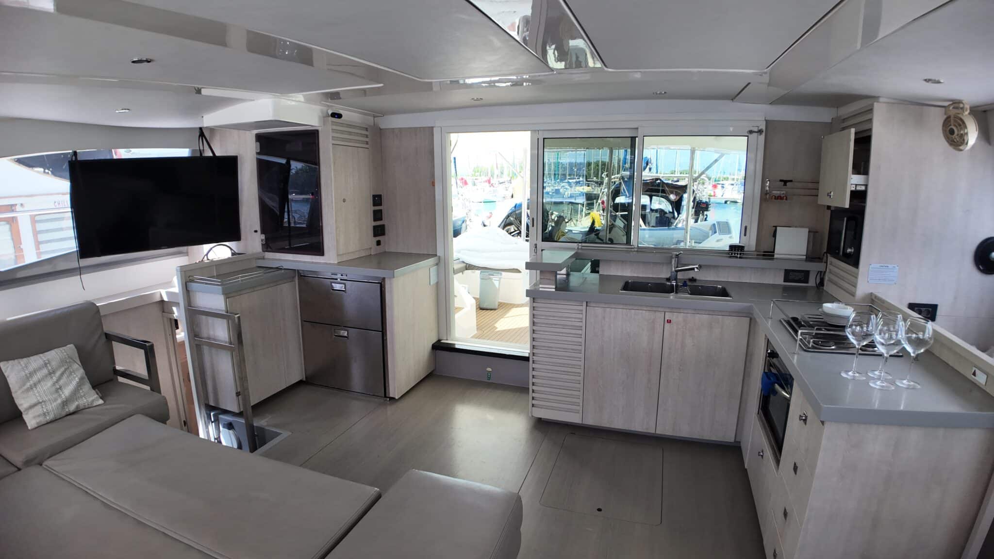 Cockpit arrière donnant sur un immense espace Carré cuisine