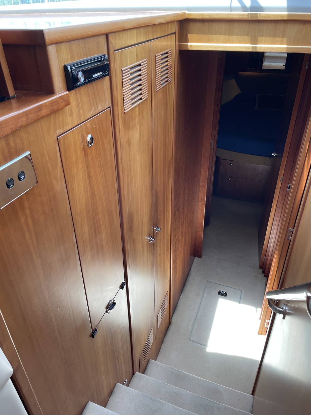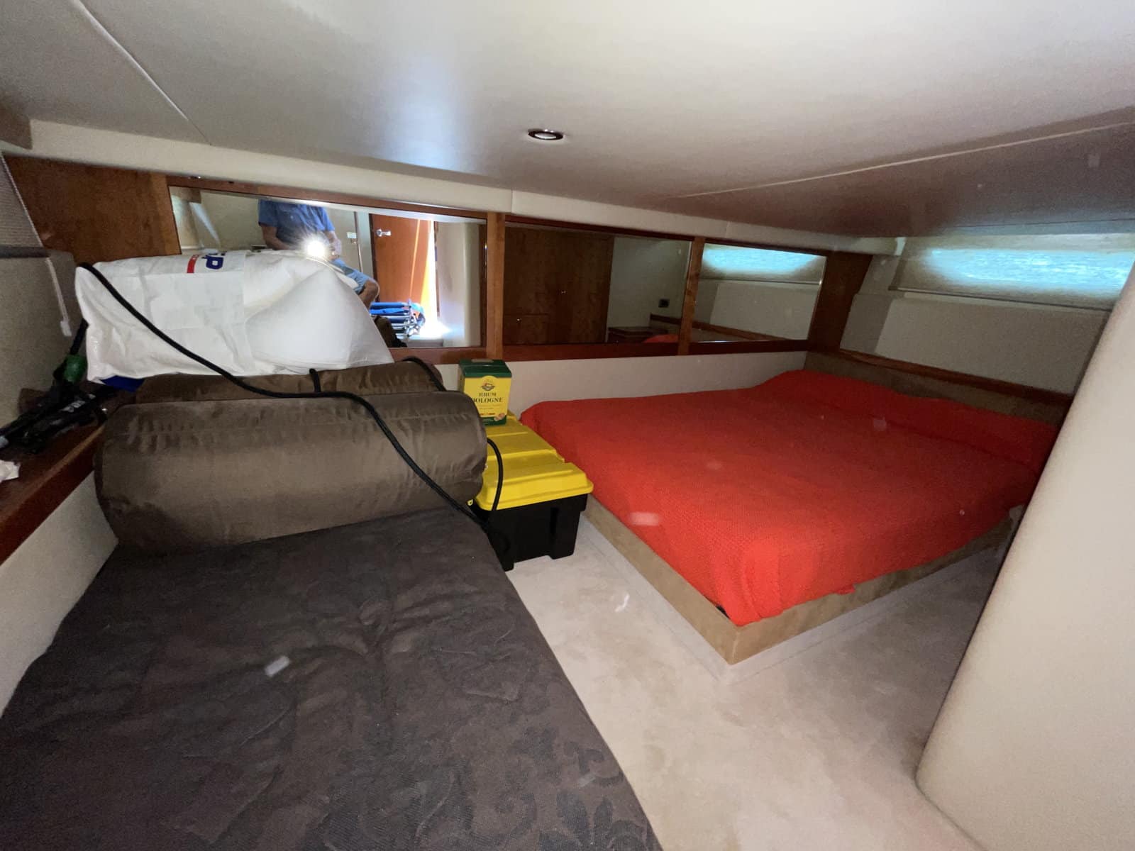 Cabine arrière équipée d’1 lit king size + I couchette simple.