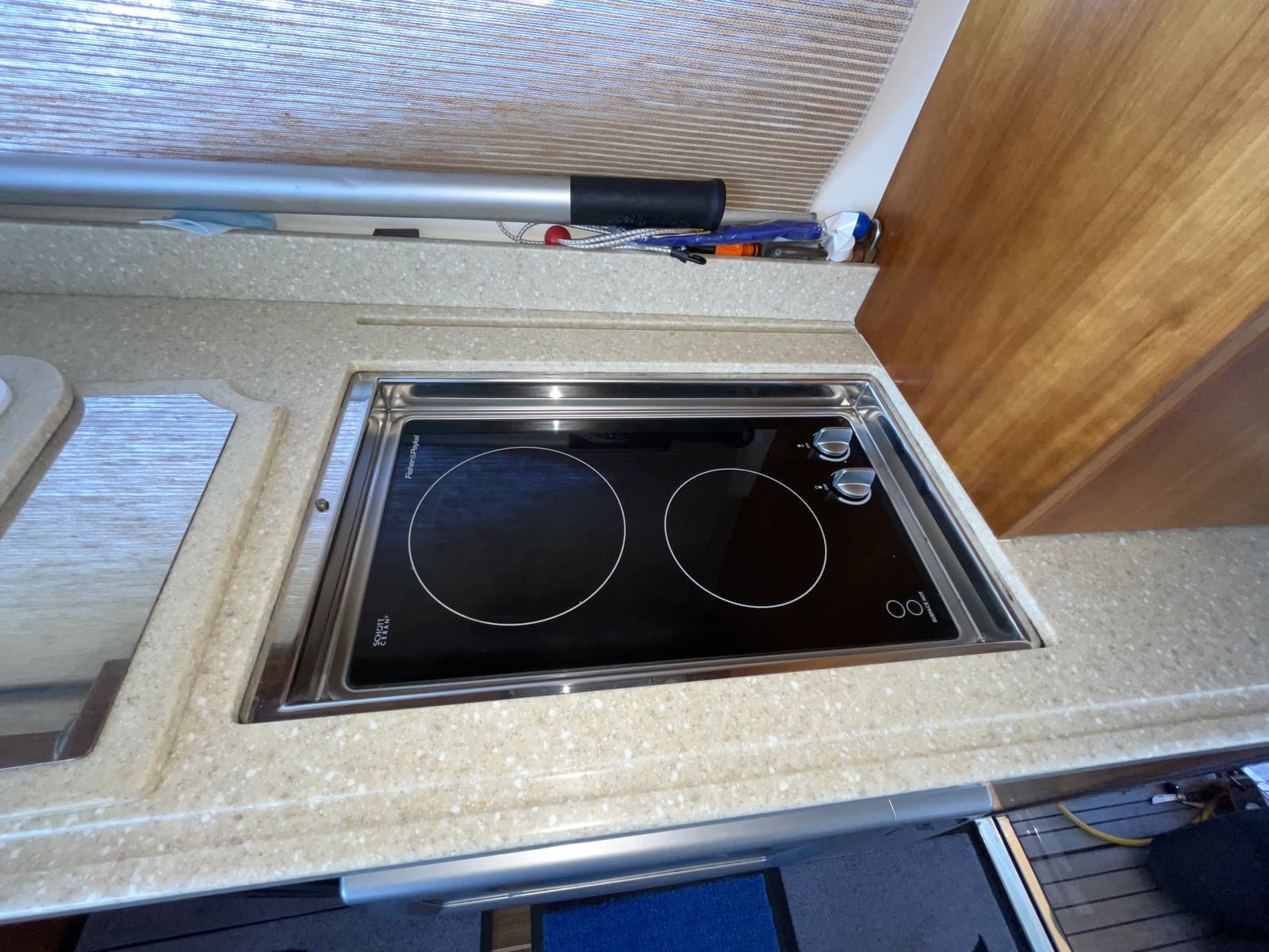 Plancha inox dans le cockpit sur plateforme arrière