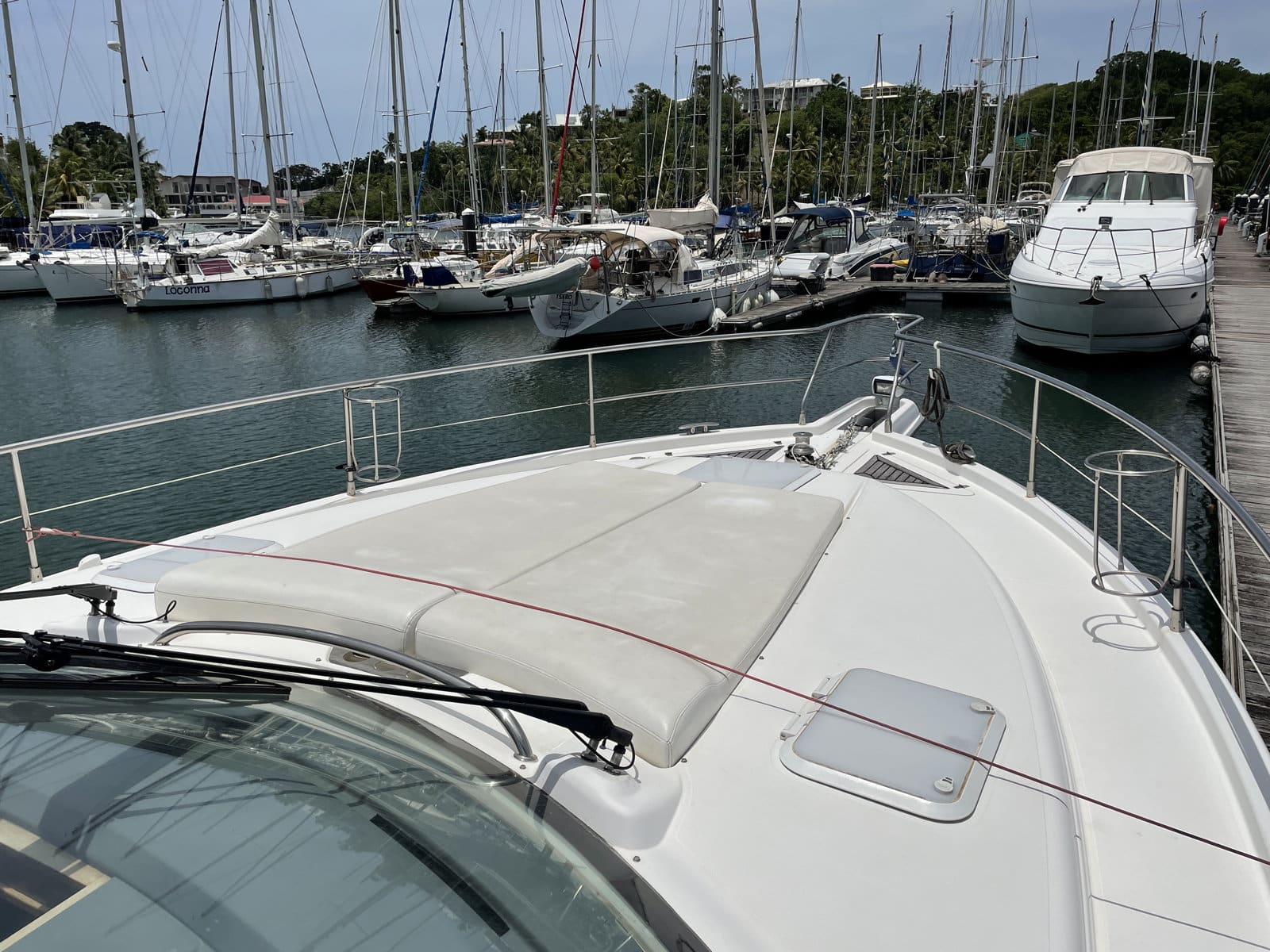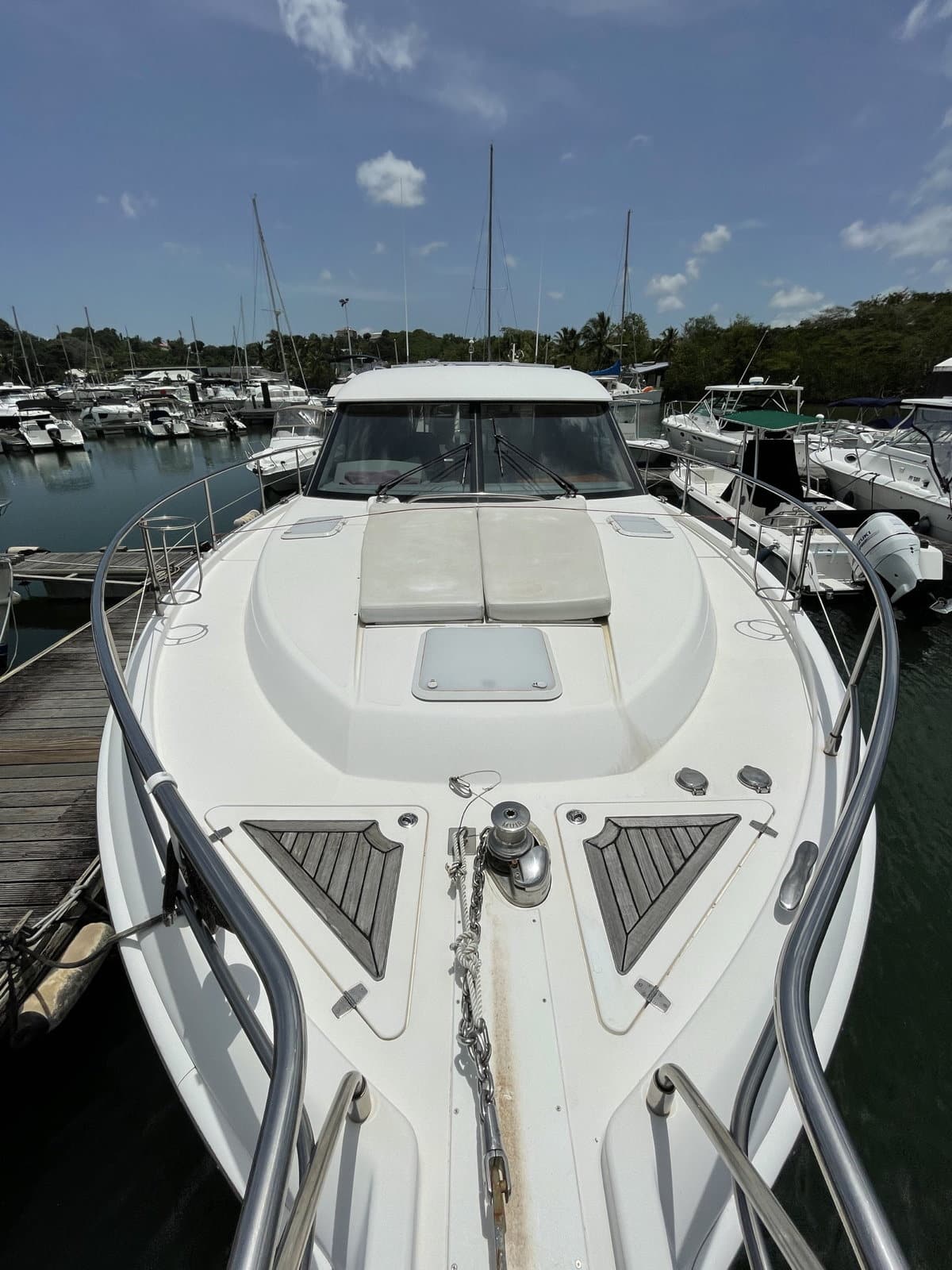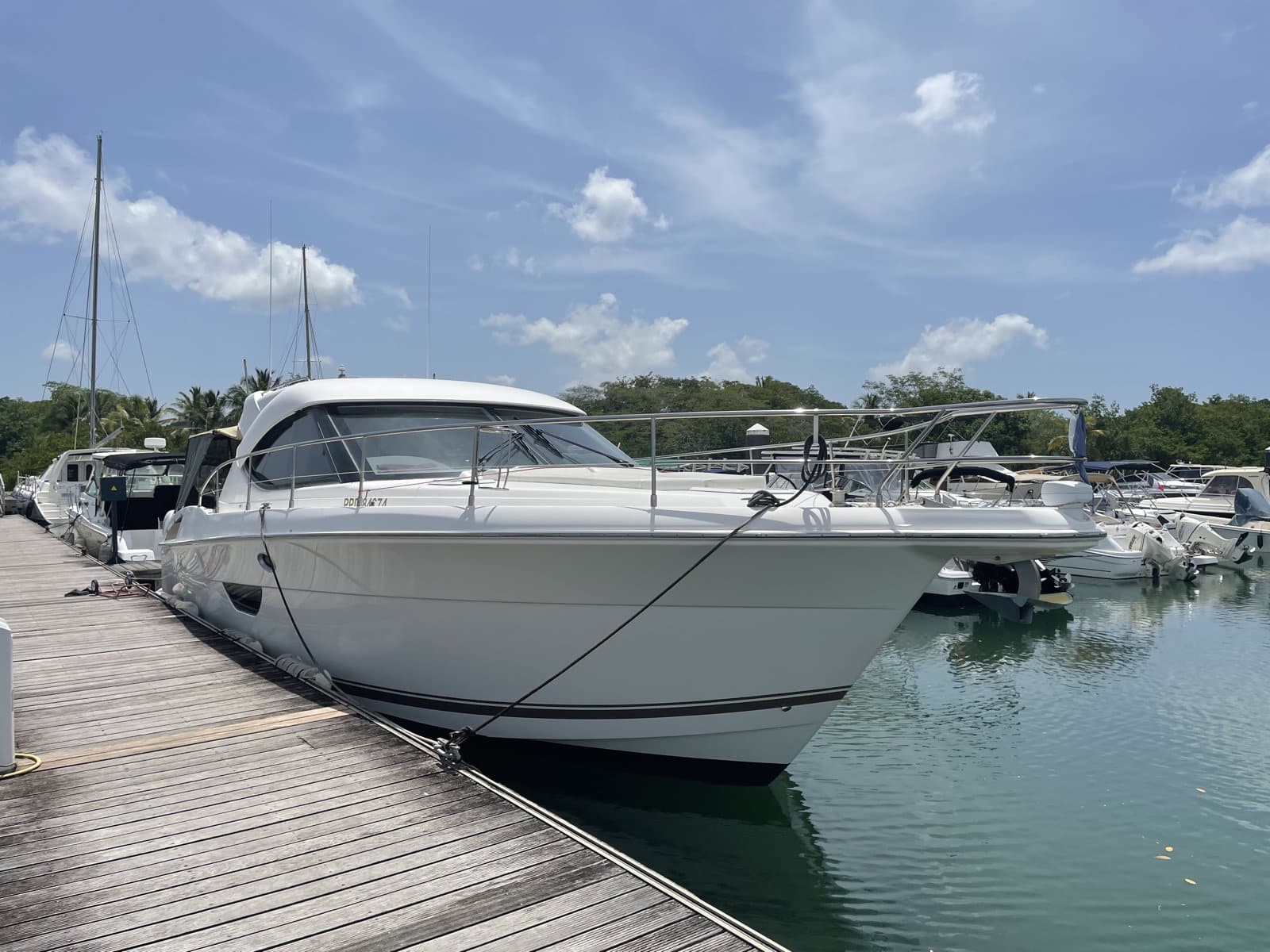 La qualité de sa conception qui génère un grand confort avec ses deux cabines et 2 salles d’eau attenantes avec wc, permet de recevoir amis et famille en toute intimité. La plate-forme hydraulique à l’arrière autorise une mise à l’eau de l’annexe sans effort, c’est également une plage de bains très agréable et très conviviale. Pour les manœuvres en mer comme au port, le joystick qui pilote les IPS, vous séduira par sa maniabilité et sa précision. Il y a beaucoup d’autres choses à dire , mais il serait mieux de les apprécier en les découvrant lors de vos sorties. »