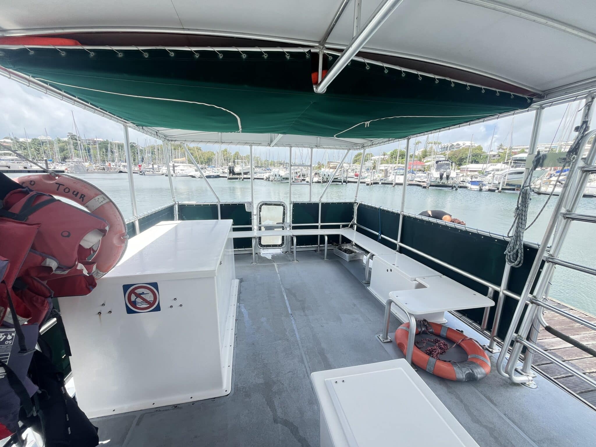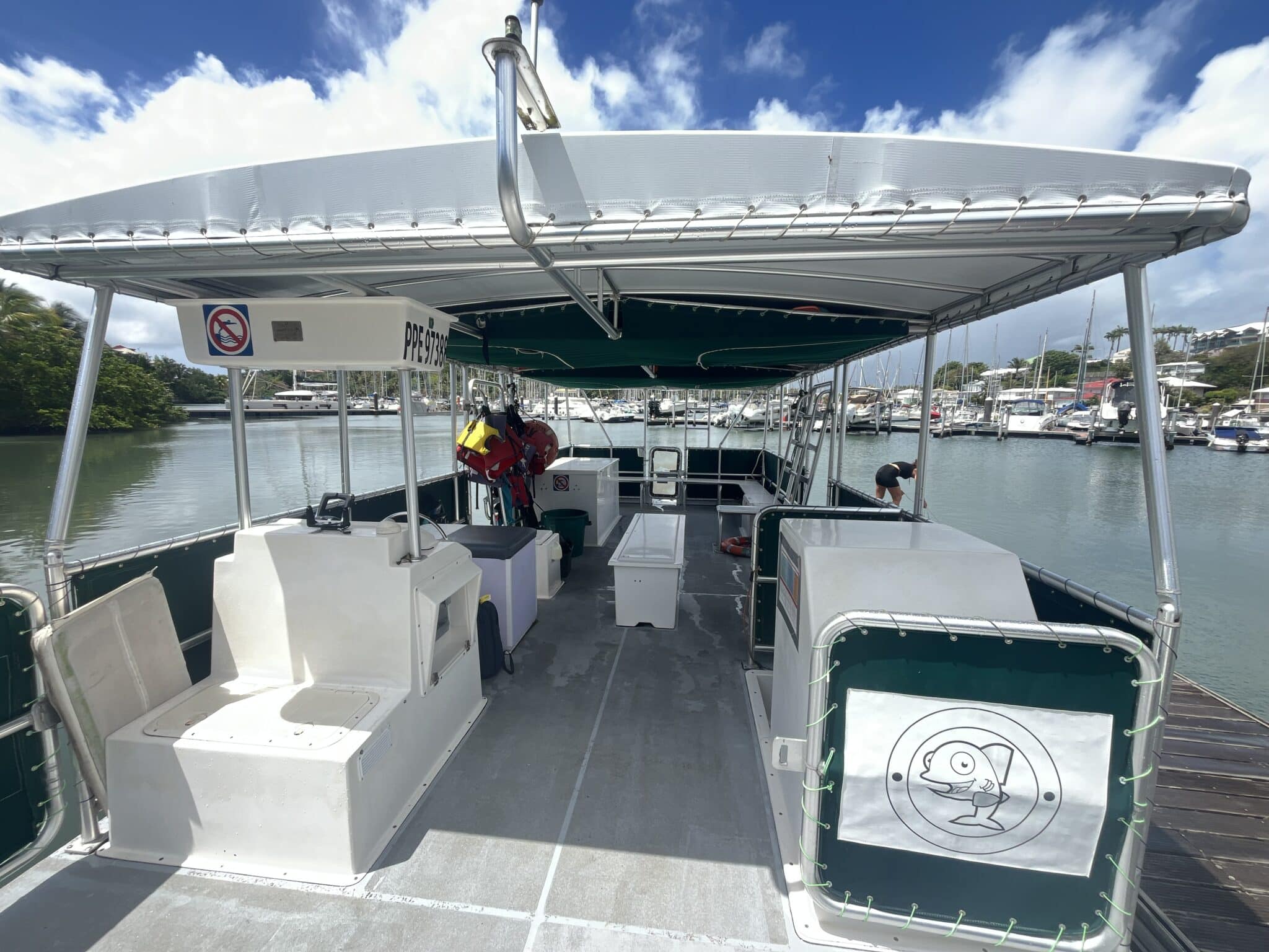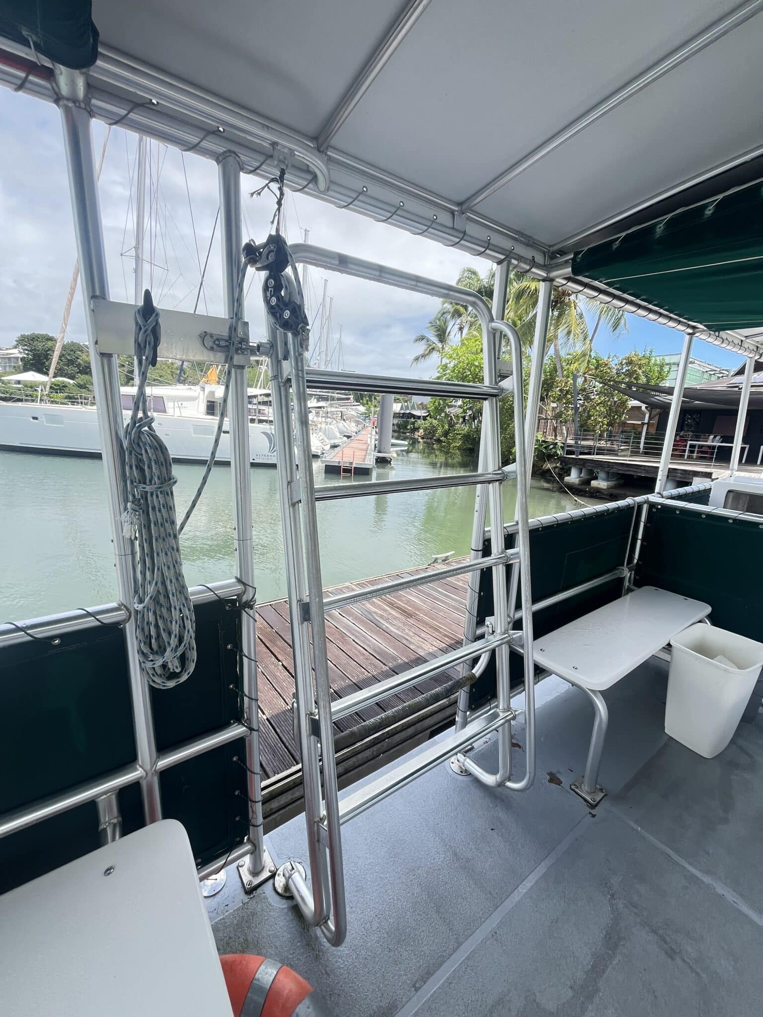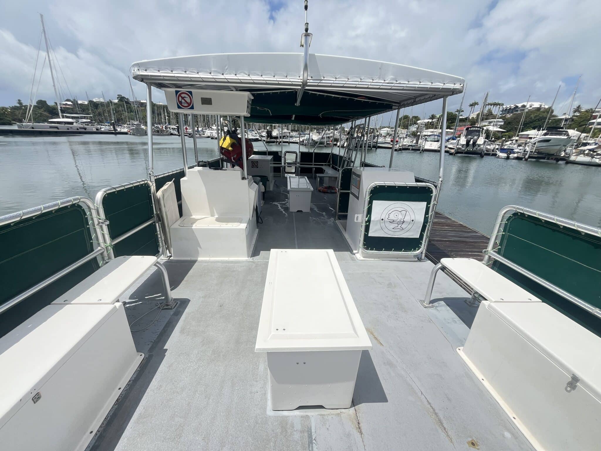 Capacité 35 Pax. Actuellement utilise en bateau support plongée PMT . Peut être aménagé en bateau plongée ou en promenade touristique sur plan d’eau protégé .