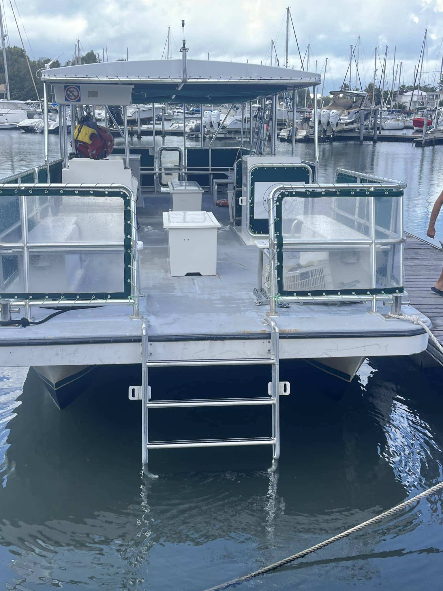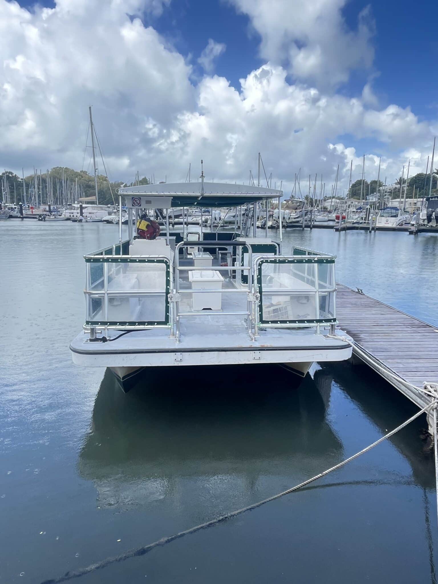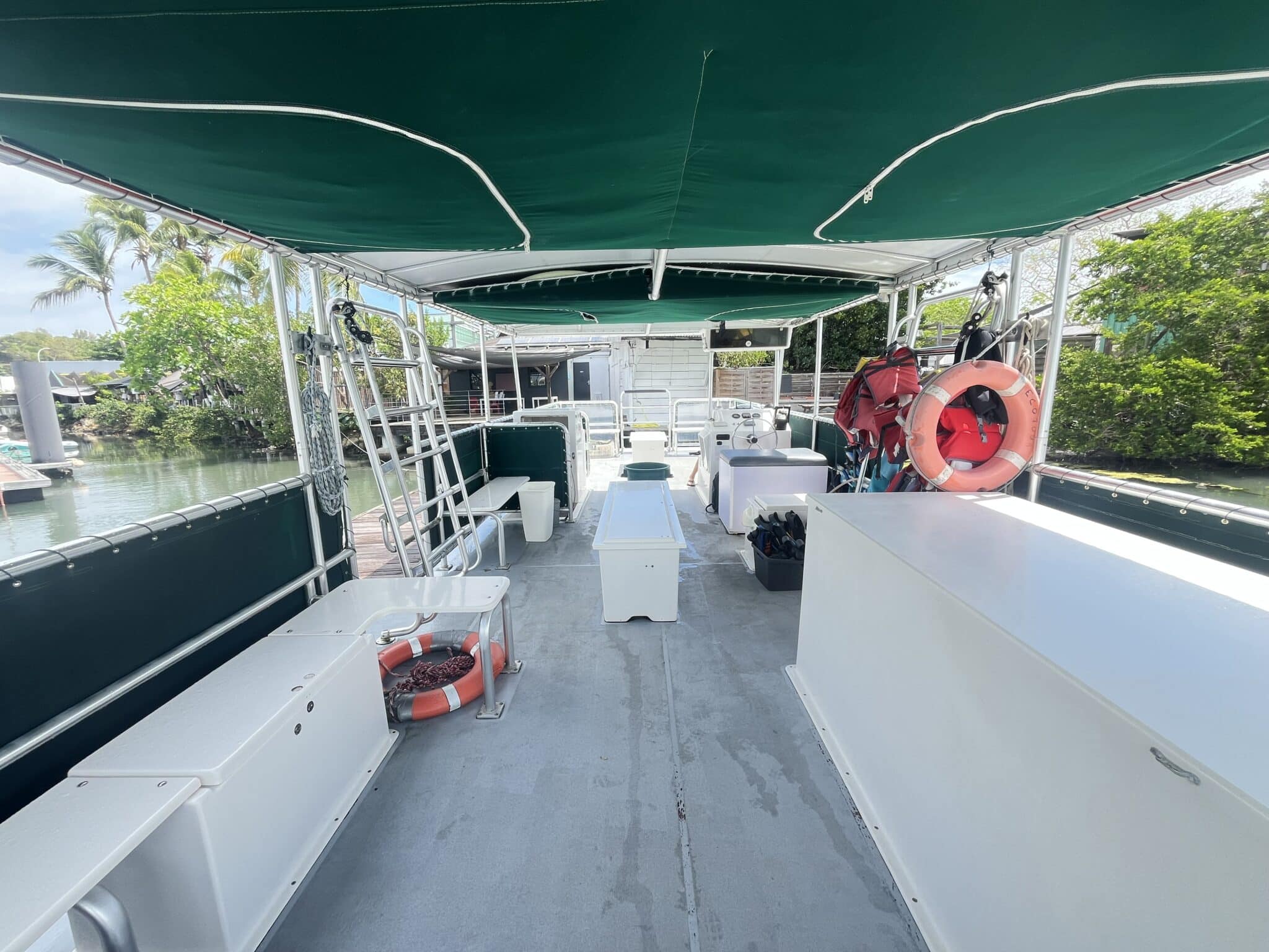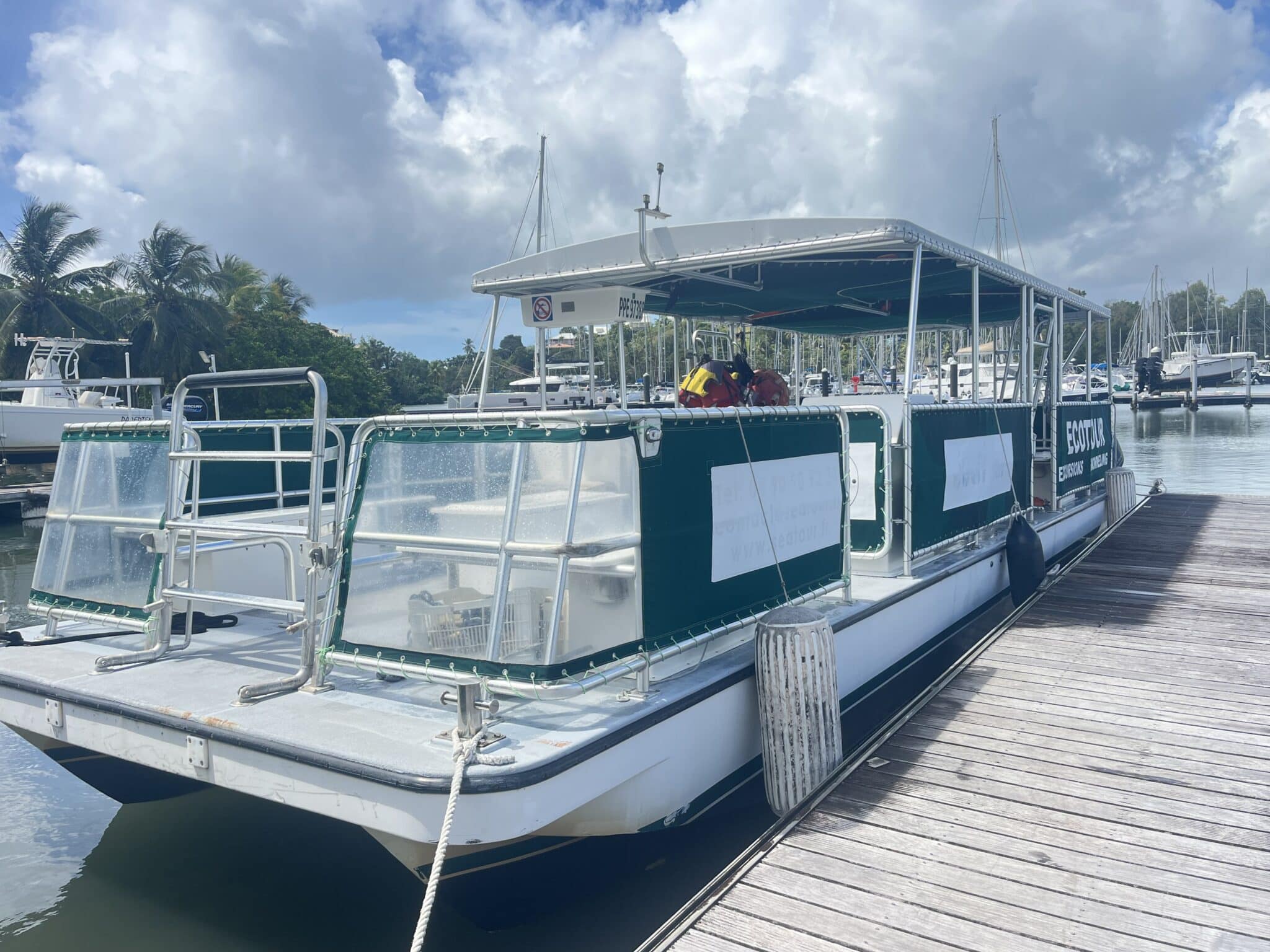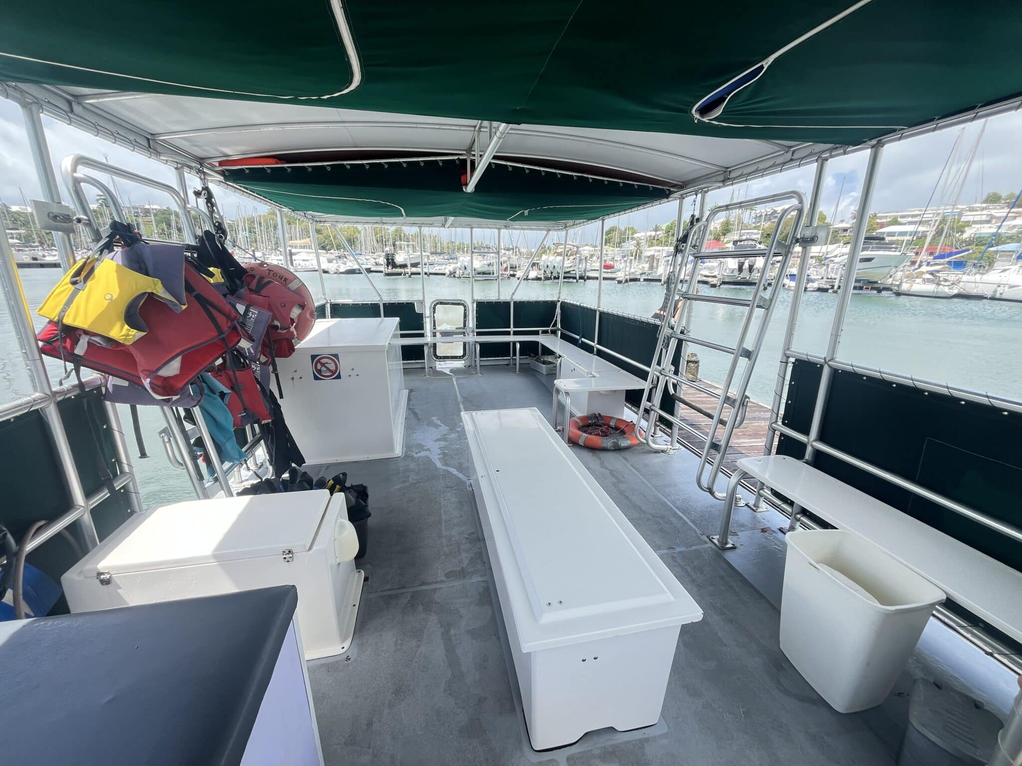 Capacité 35 Pax. Actuellement utilise en bateau support plongée PMT . Peut être aménagé en bateau plongée ou en promenade touristique sur plan d’eau protégé .