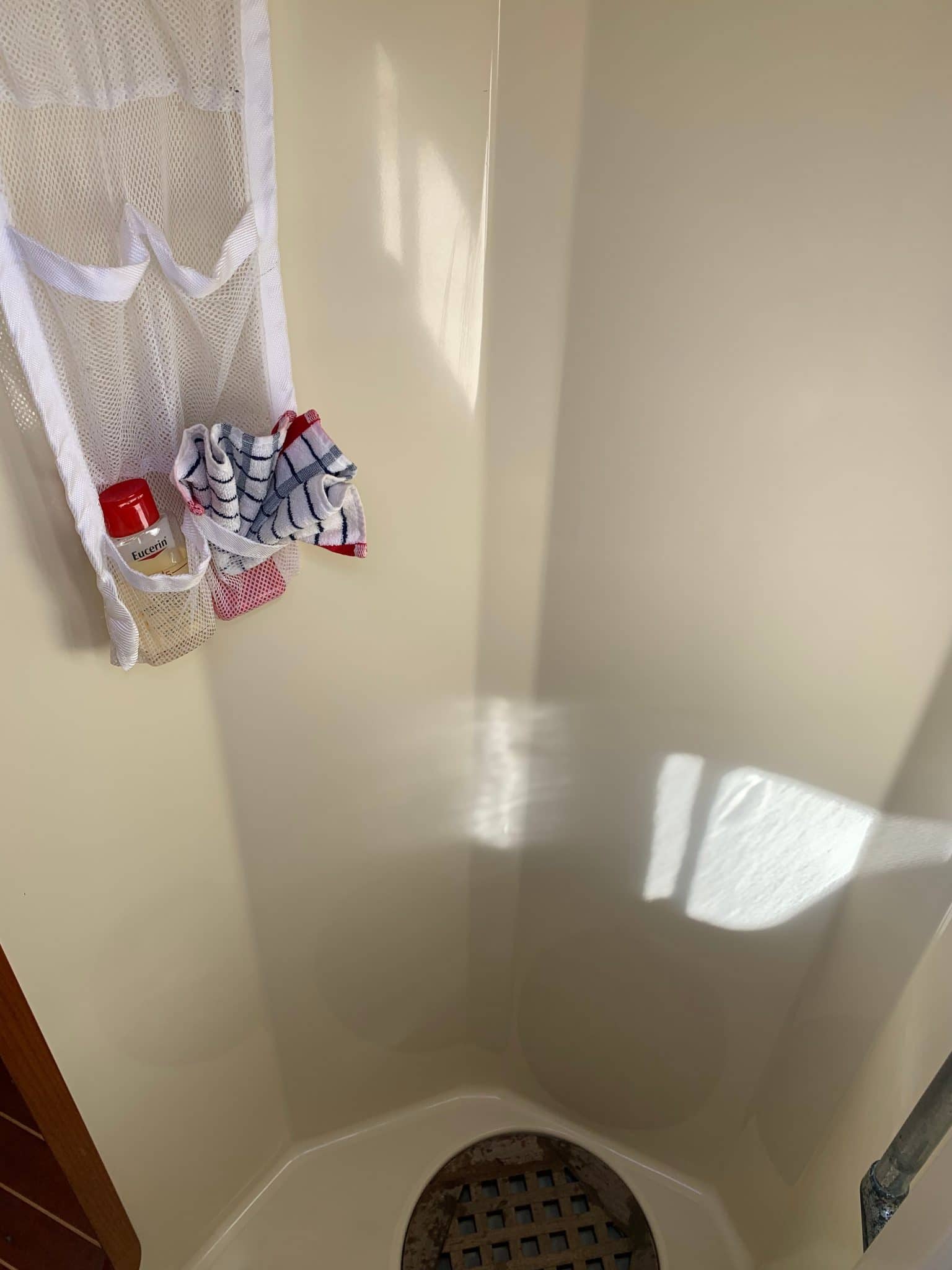 Echelle de bain et douche (eau froide et chaude) dans jupe arrière