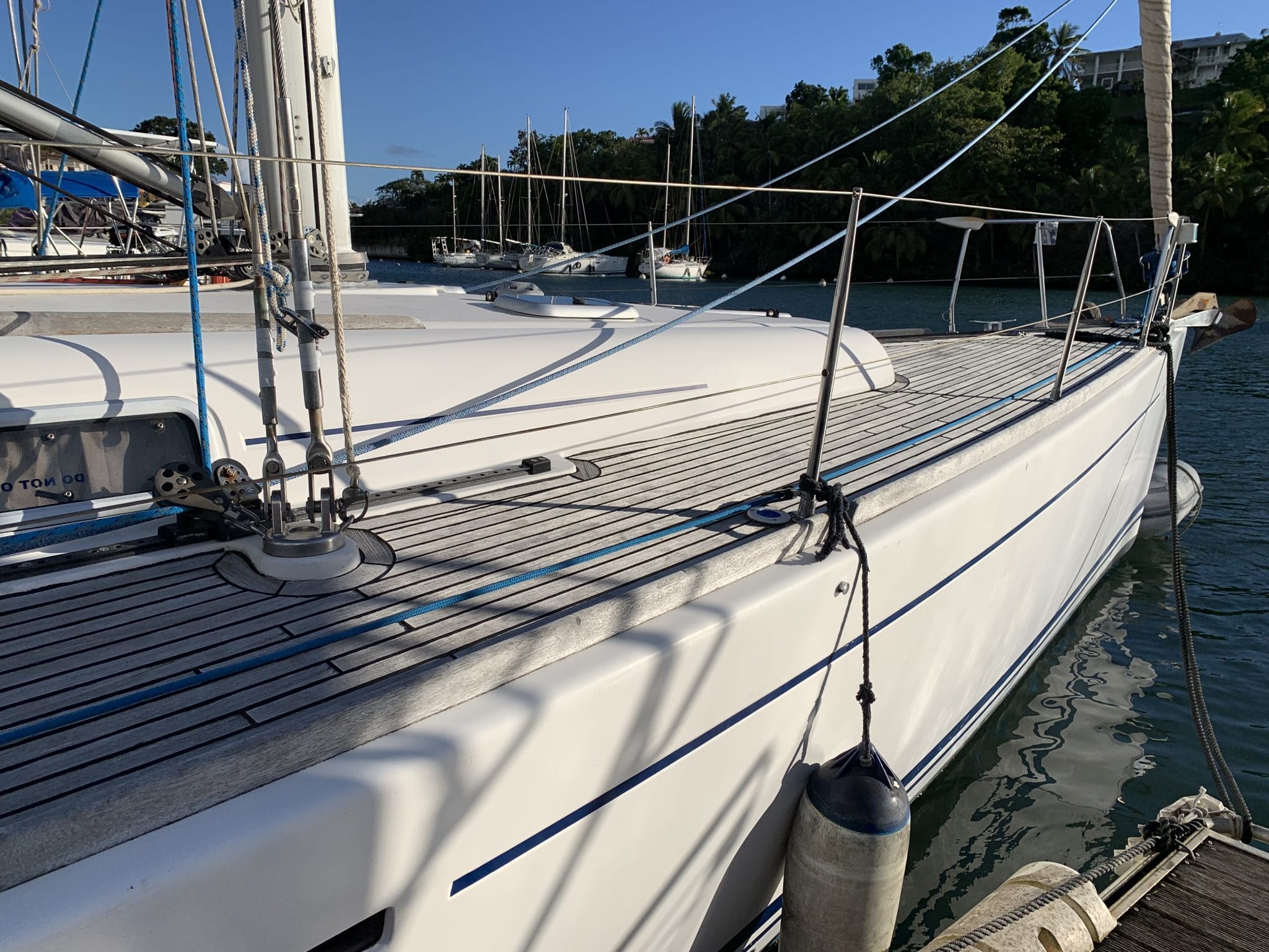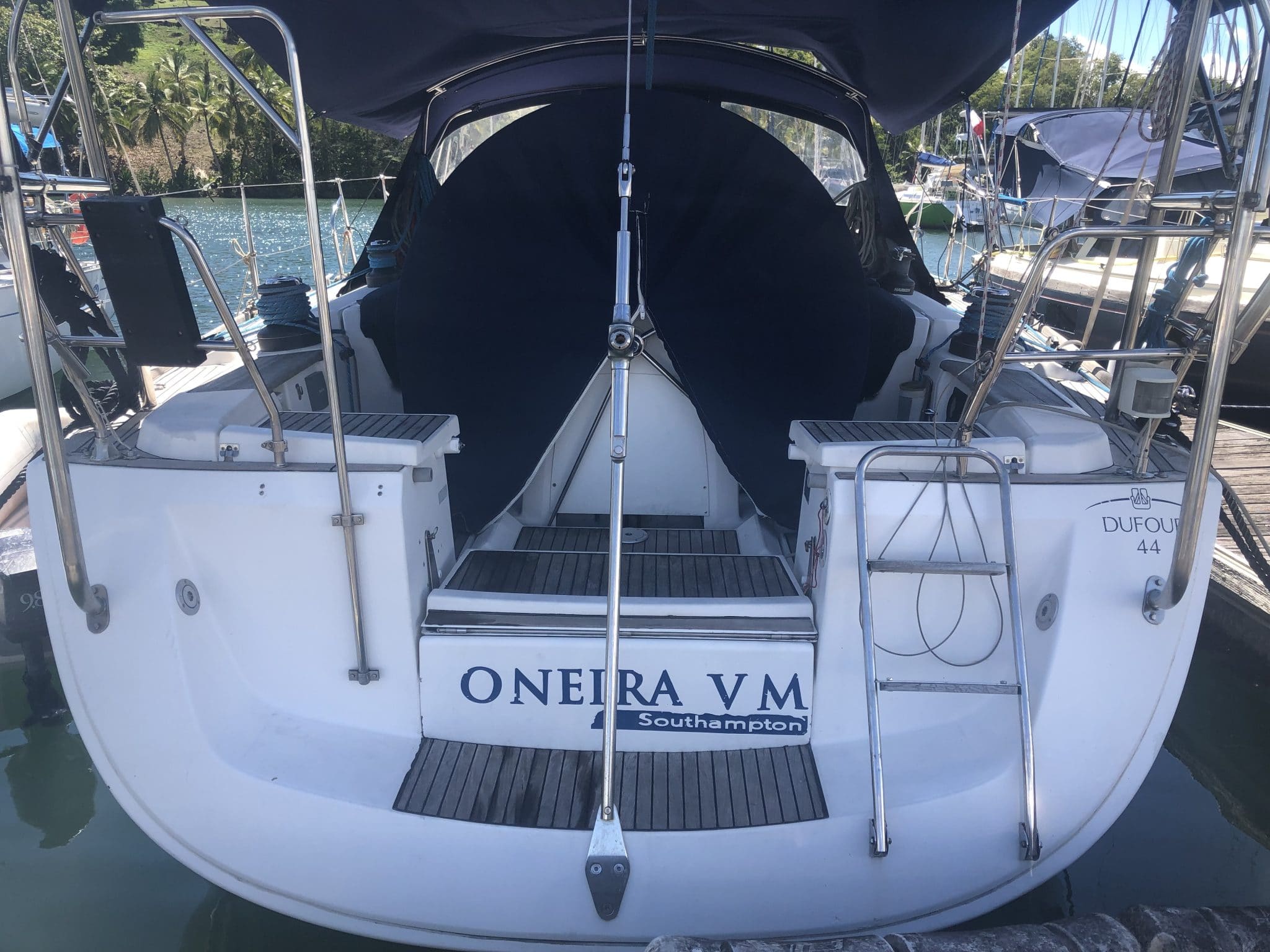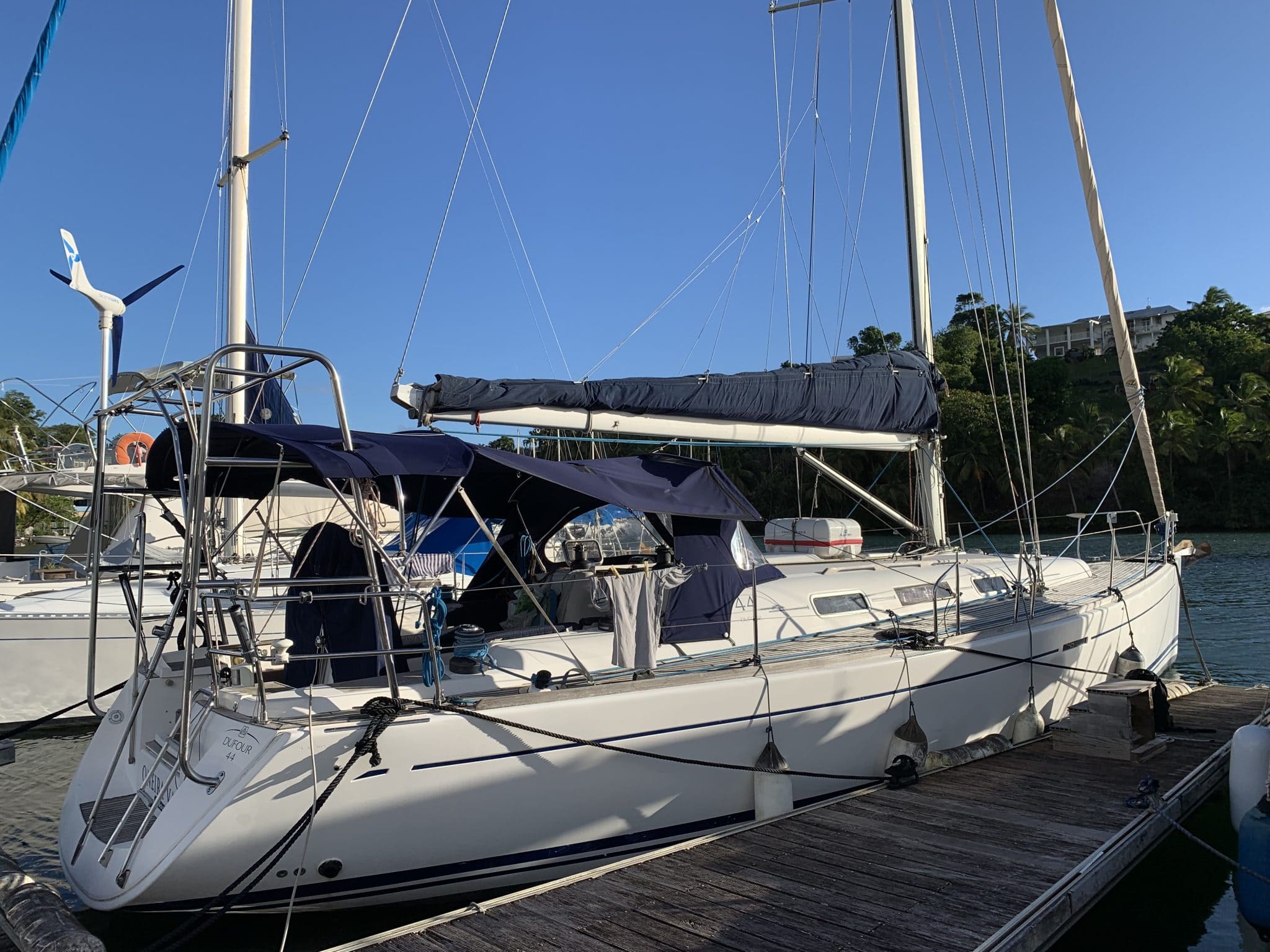 Le Dufour 44 est un magnifique bateau Course Croisière dessiné par Umberto Felci quand le Chantier Dufour faisait partie du chantier Italien Grand Soleil . Ce bateau a d’abord navigué en Europe avant de traverser l’Atlantique .