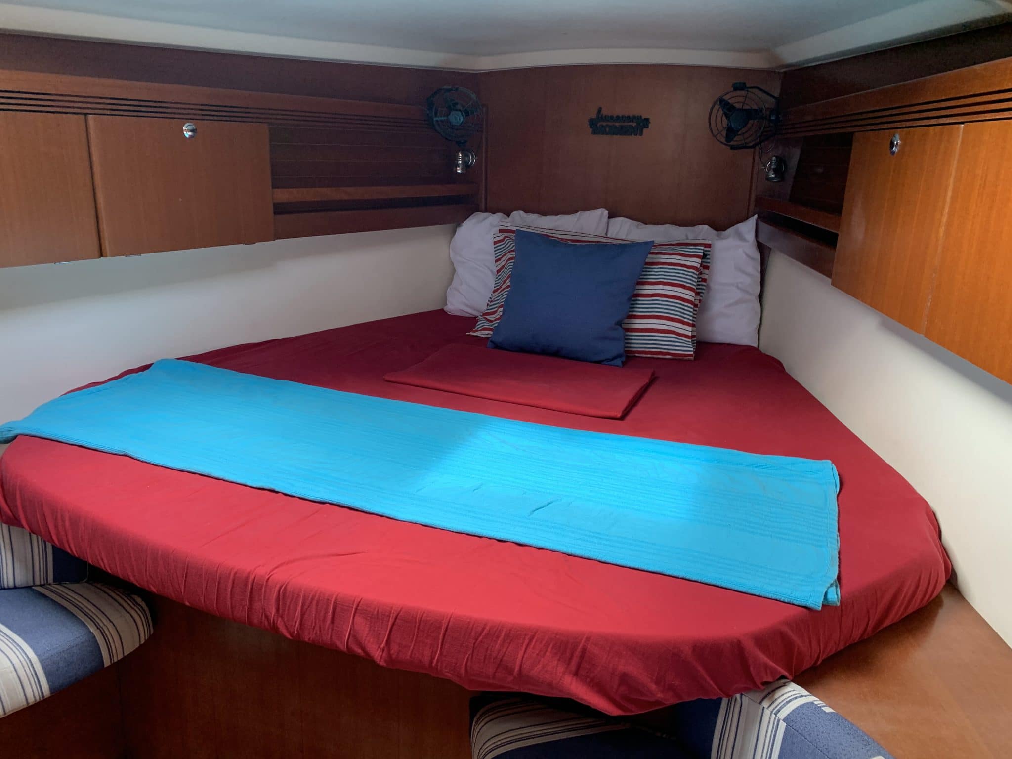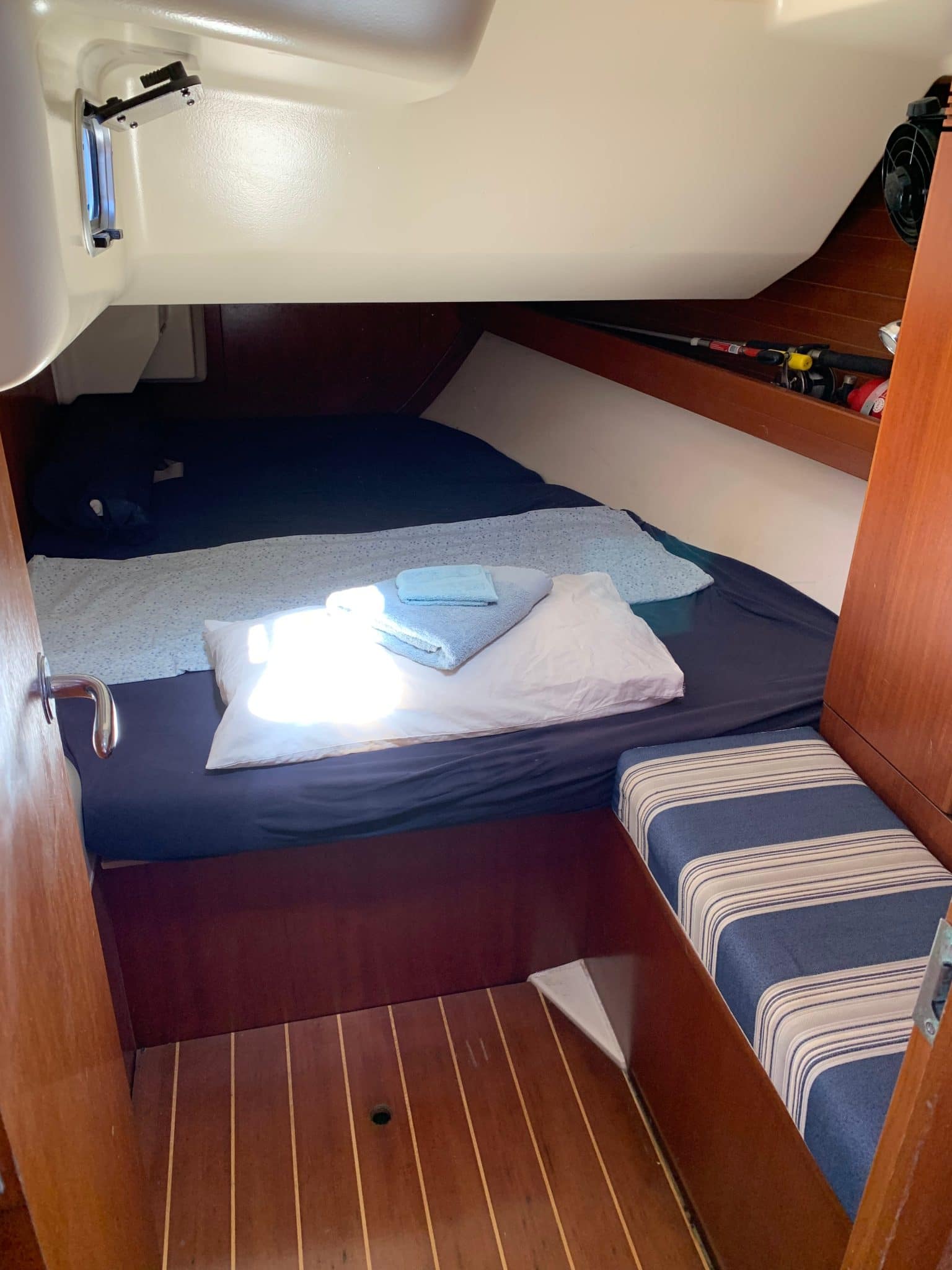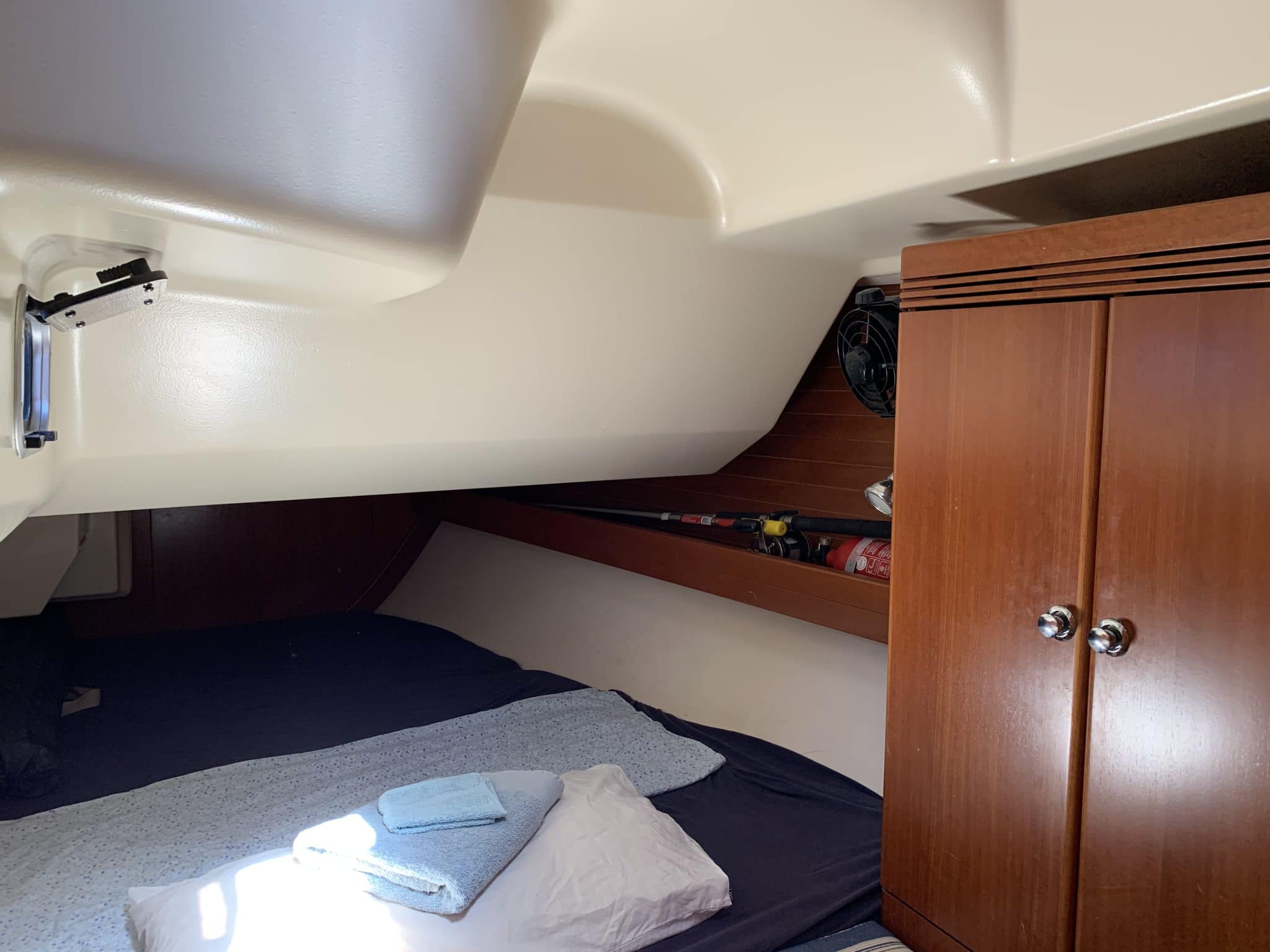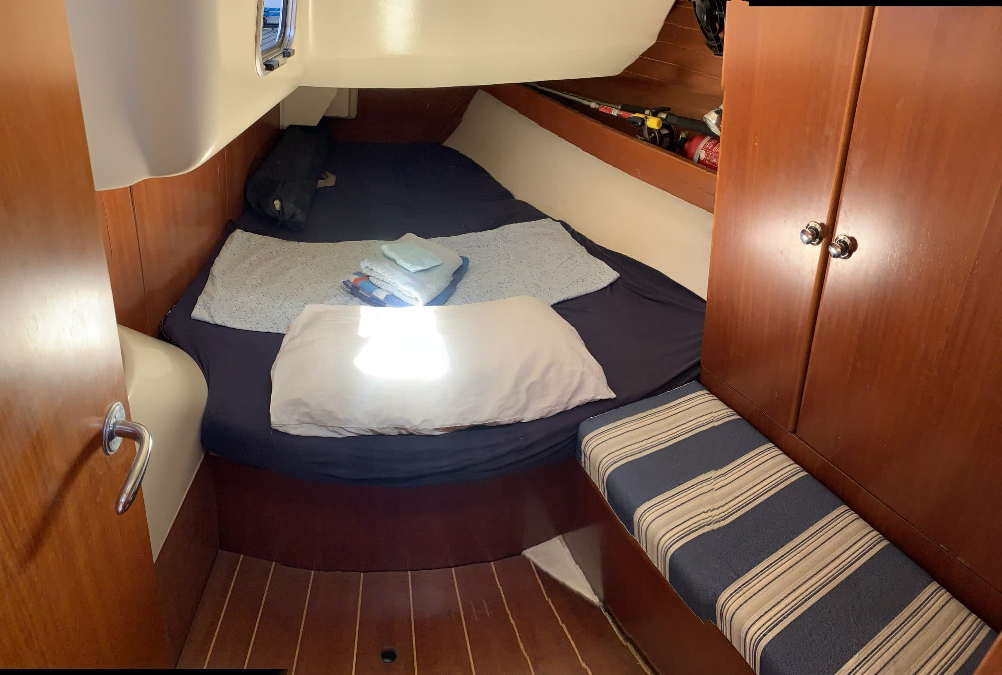 Cabine propriétaire à l’avant salle d’eau avec WC, douche