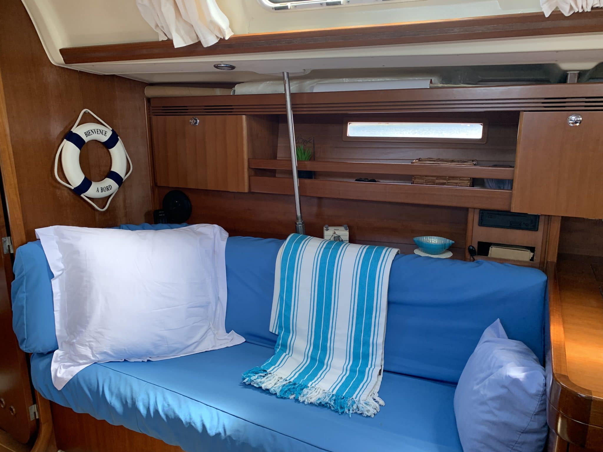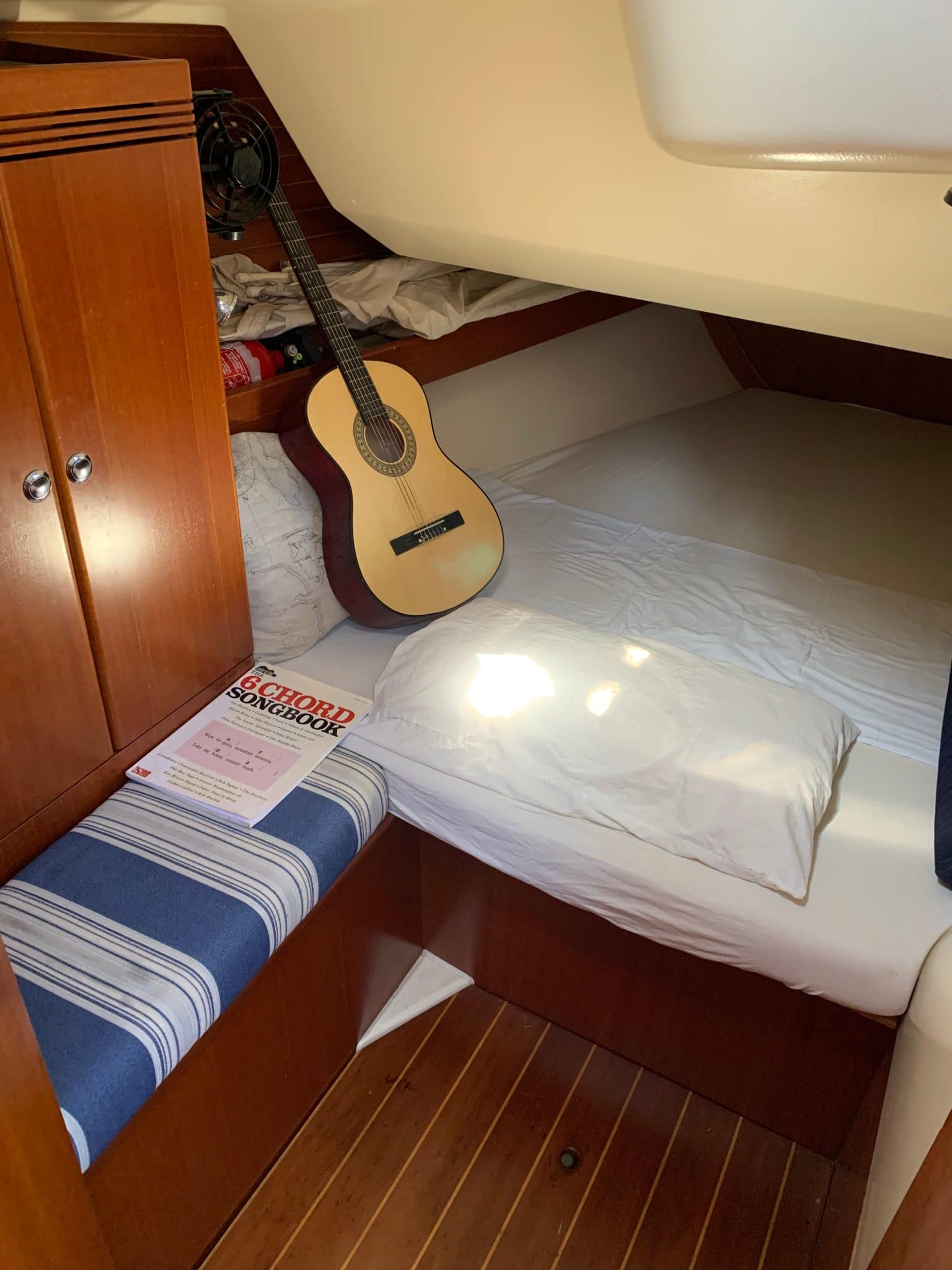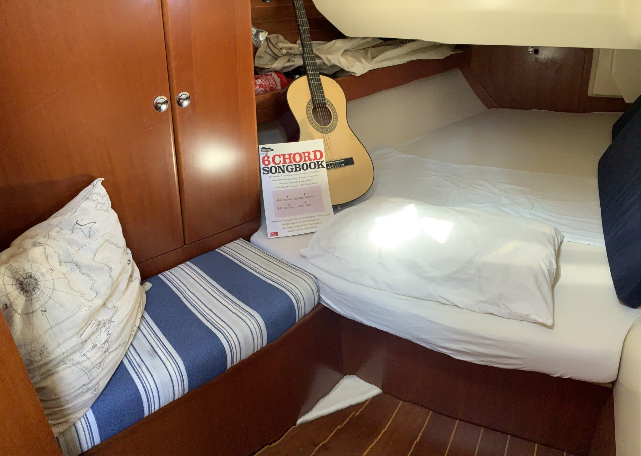 Cabine propriétaire à l’avant salle d’eau avec WC, douche