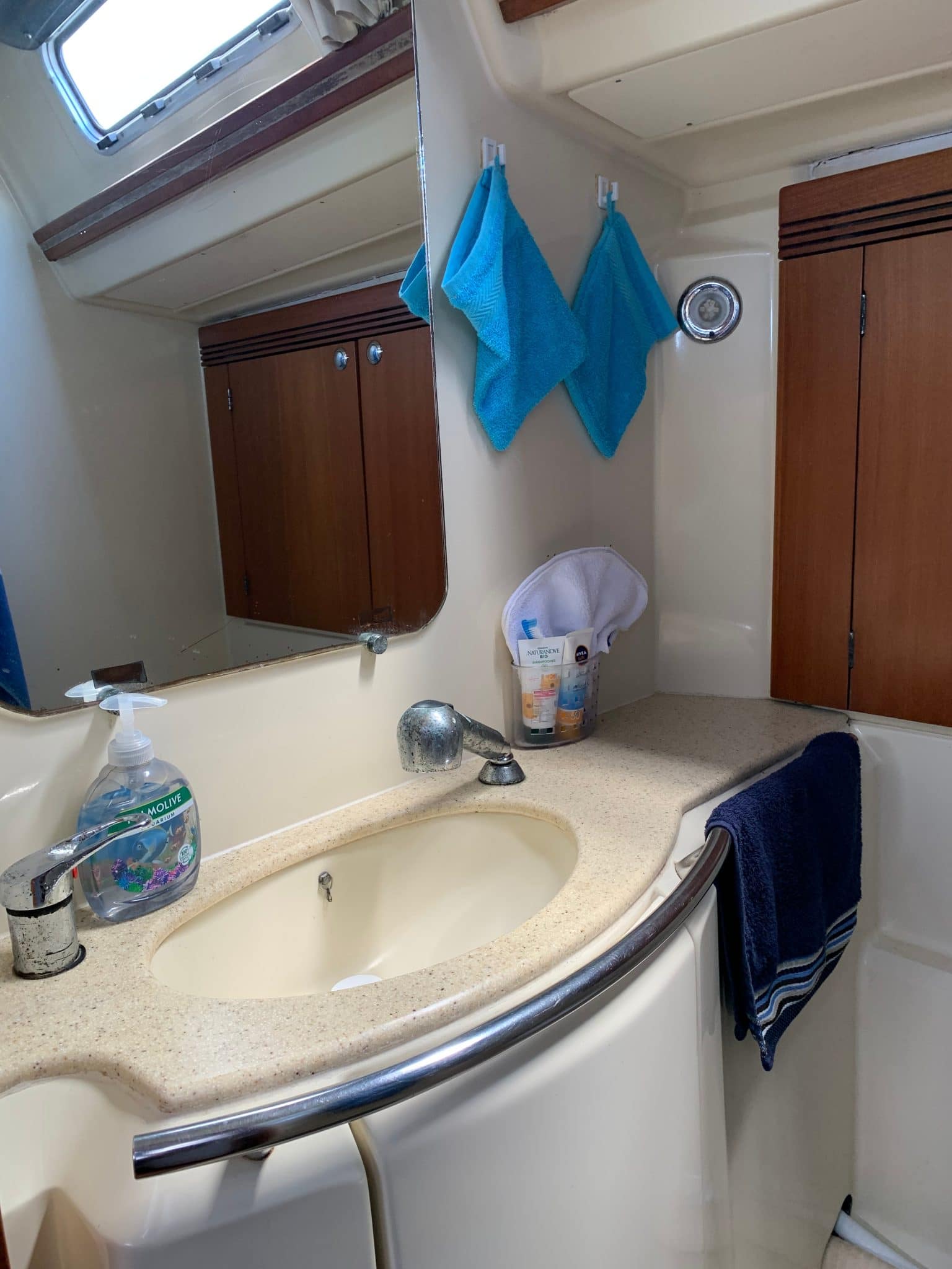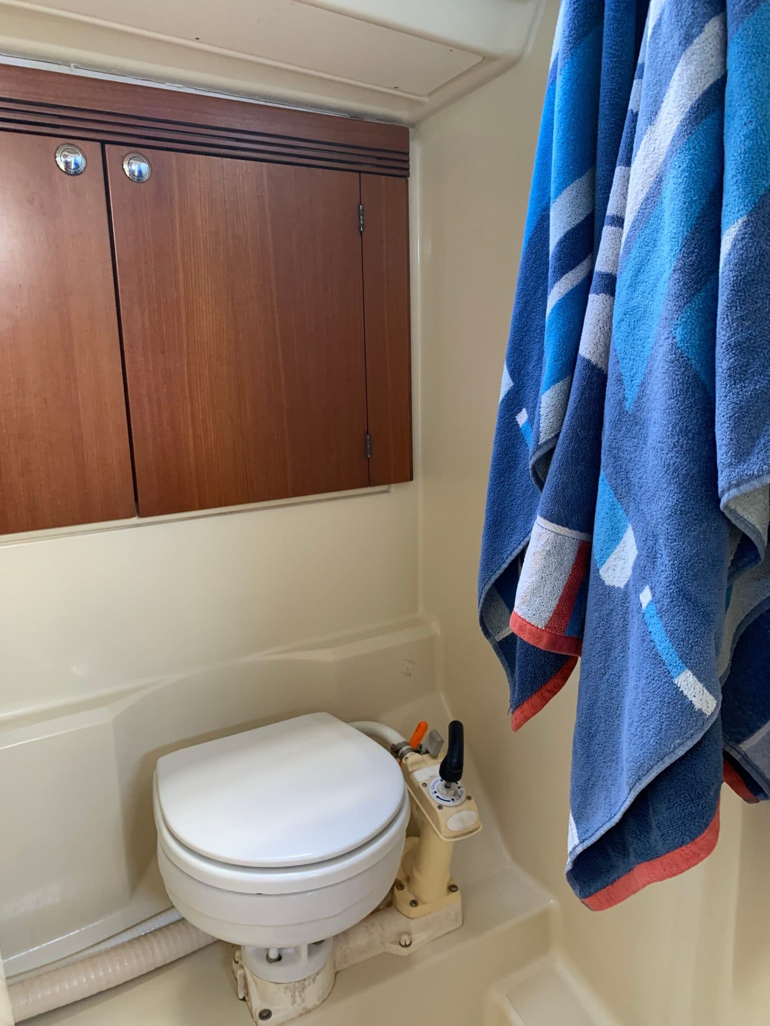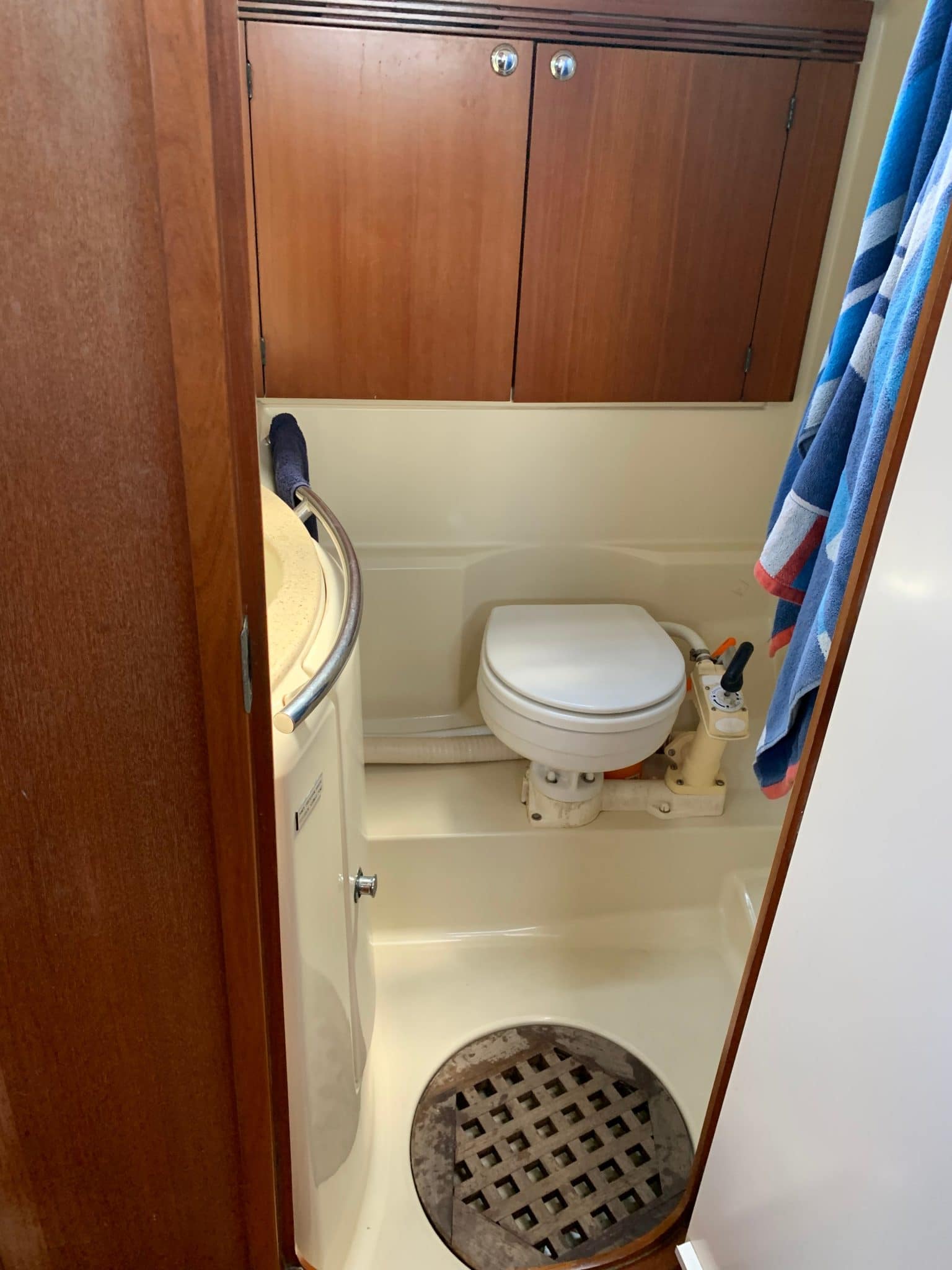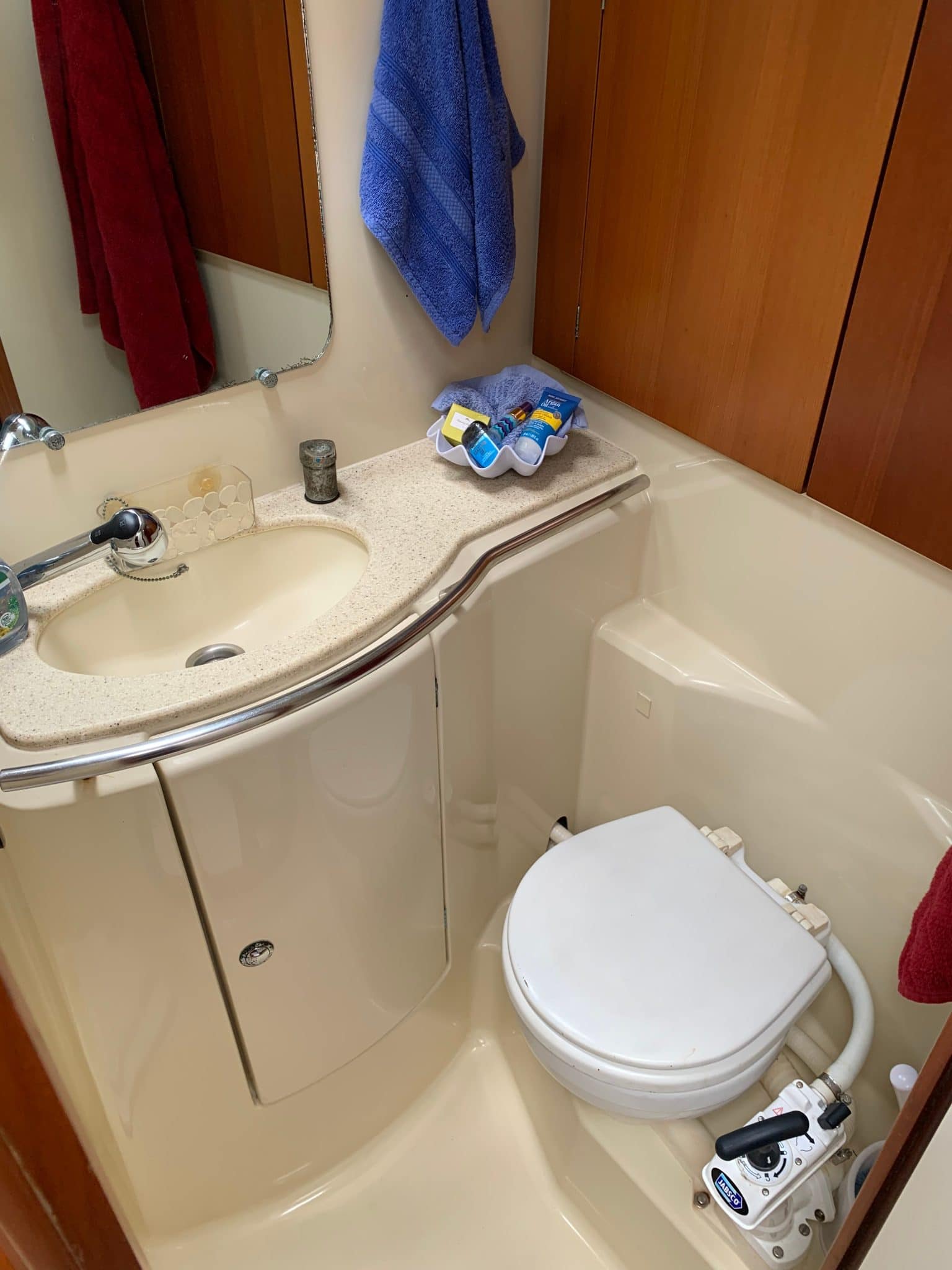 Cabine propriétaire à l’avant salle d’eau avec WC, douche