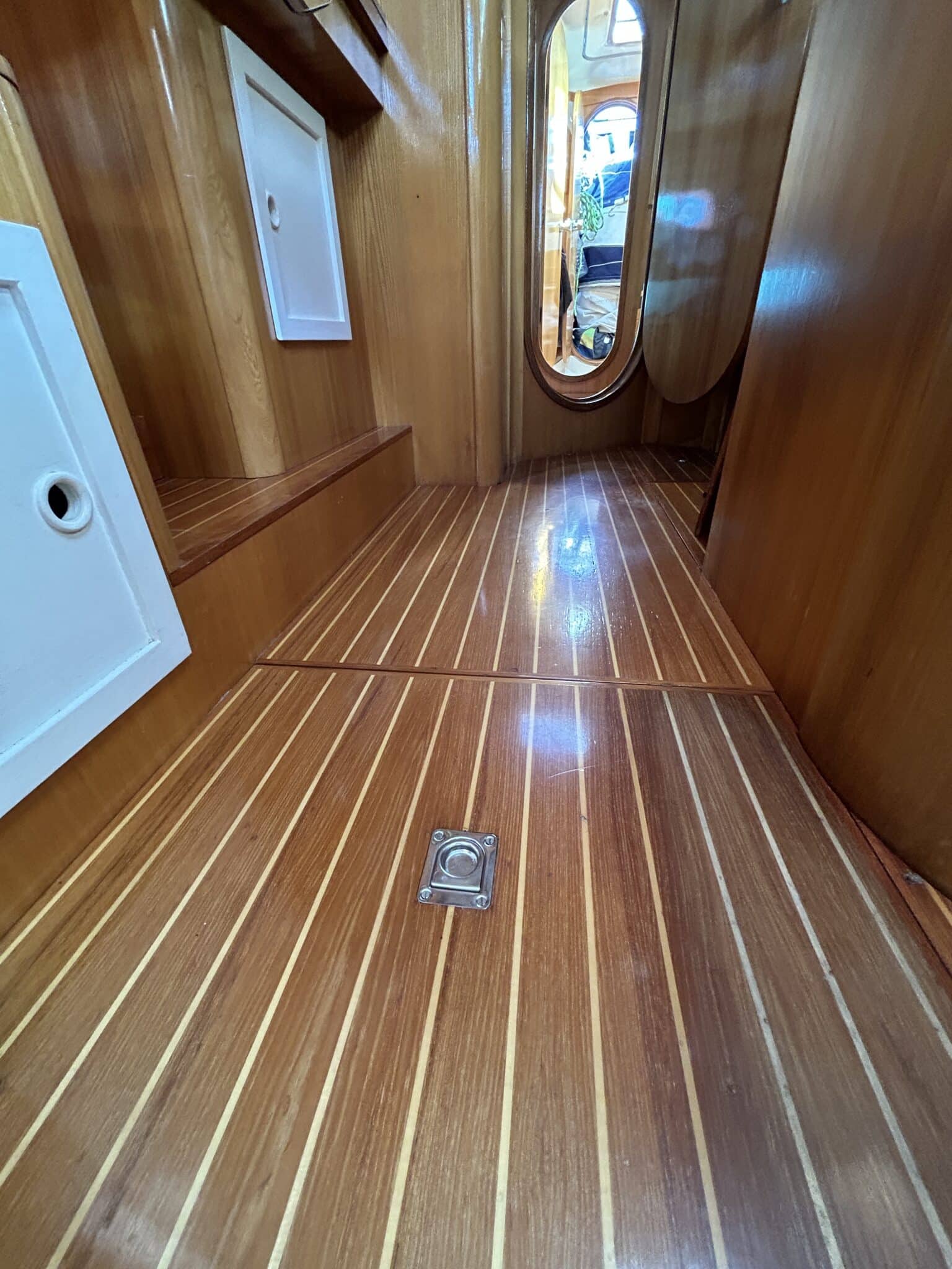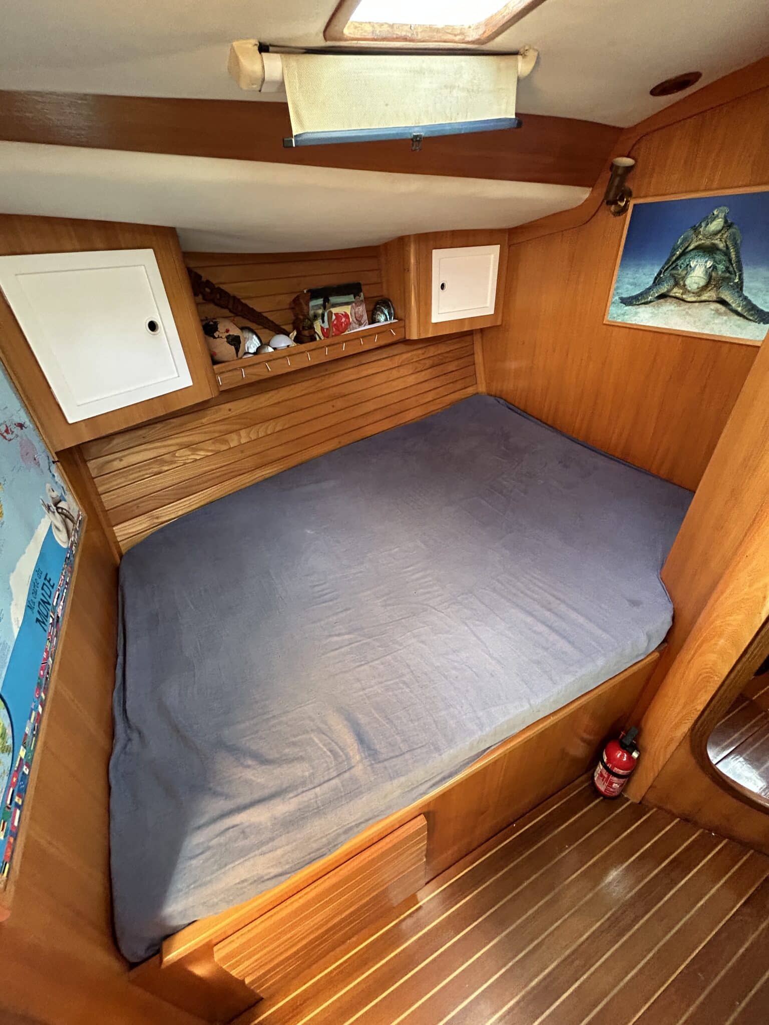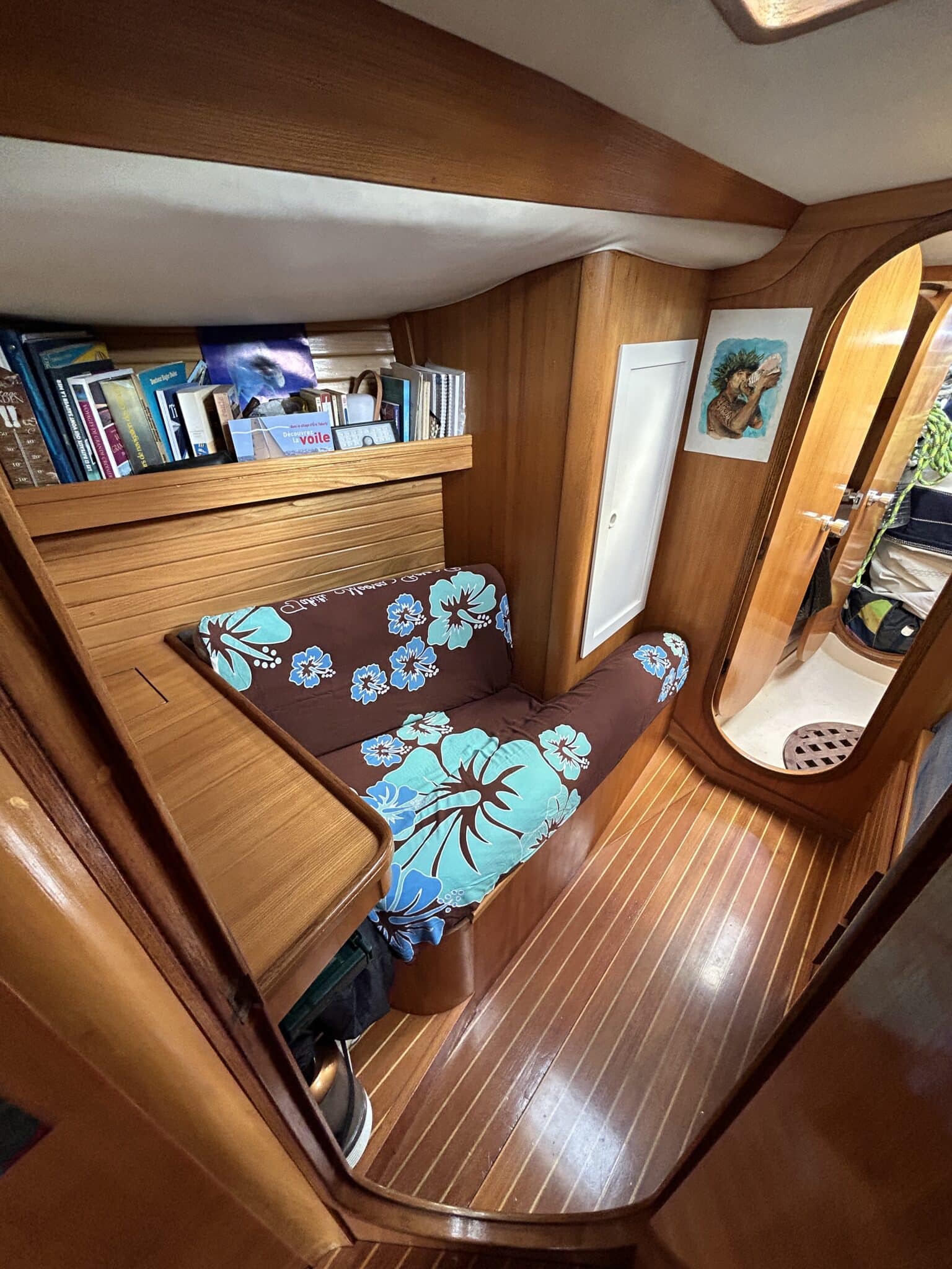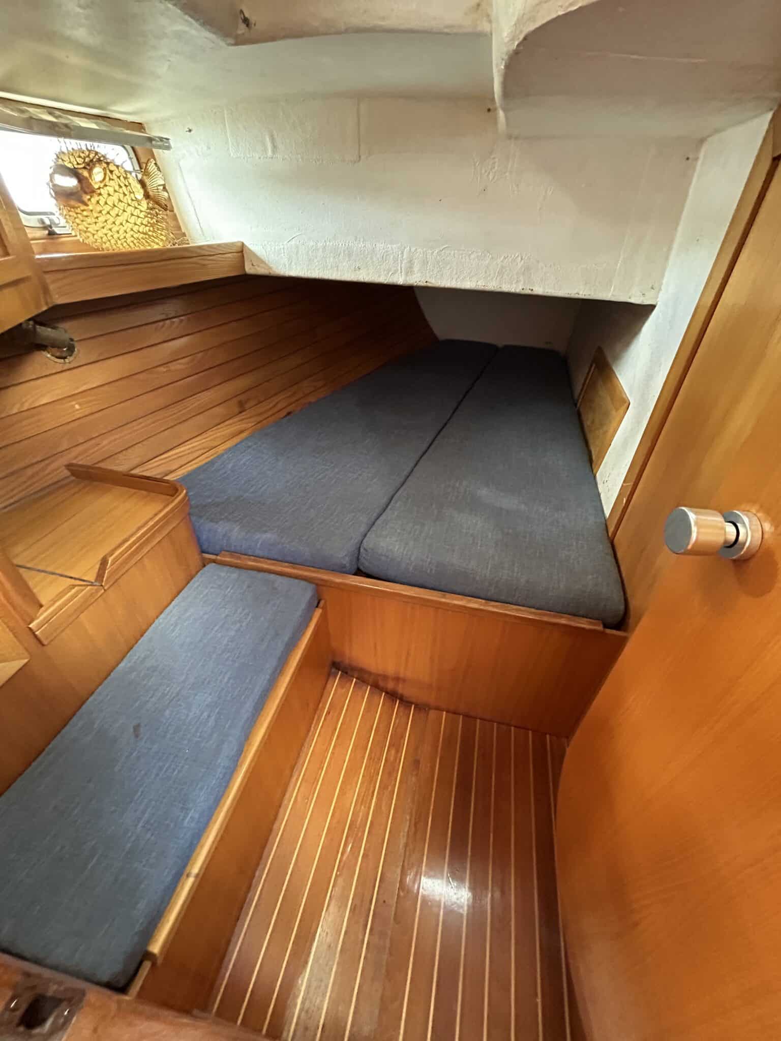 Cabinet de toilette avant et accès soute à voile par l’intérieur (et par hublot)