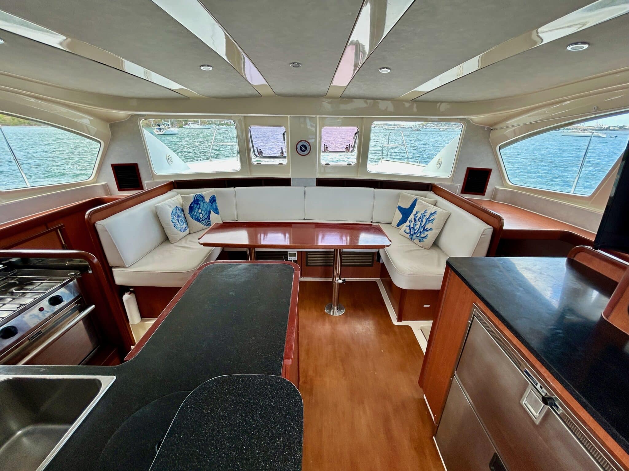 Banquette du carré avec table abaissable (convertible en couchette double, matelas non inclus)