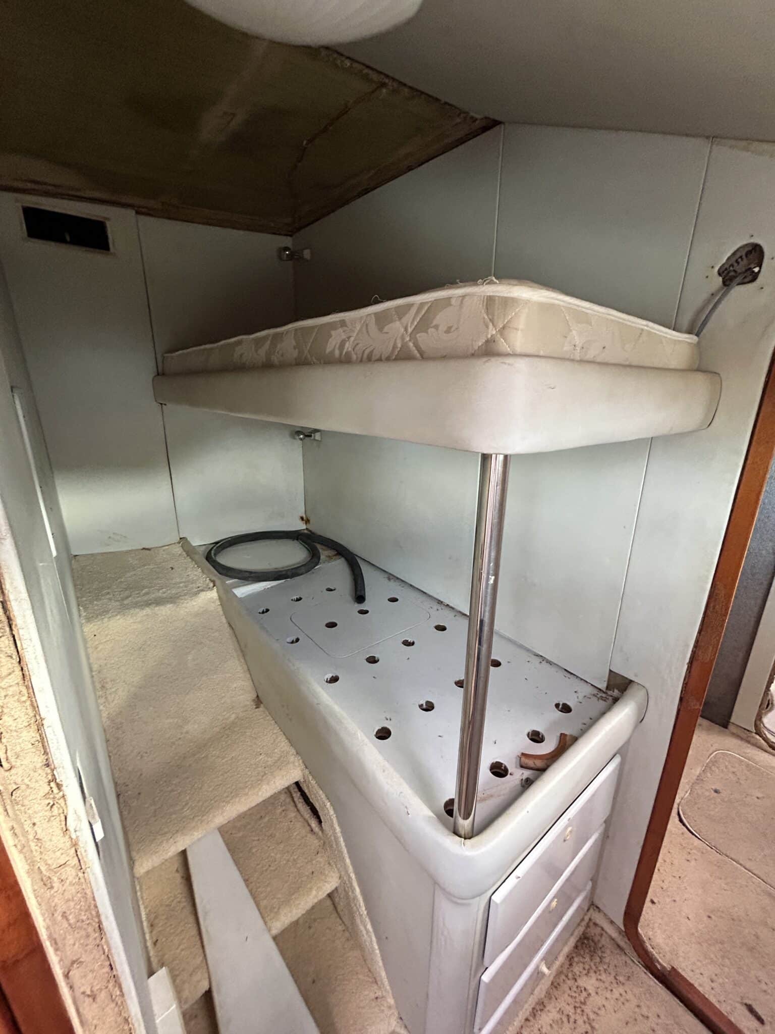 La bateau disposait d’un total de couchages pour 8 personnes, toutes les parties bois devront être démontées dues au termites.