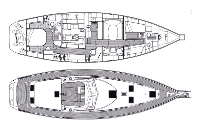 Large owner’s cabin at the rear with private head, large central bed, desk area, TV, stereo with Bose speakers…