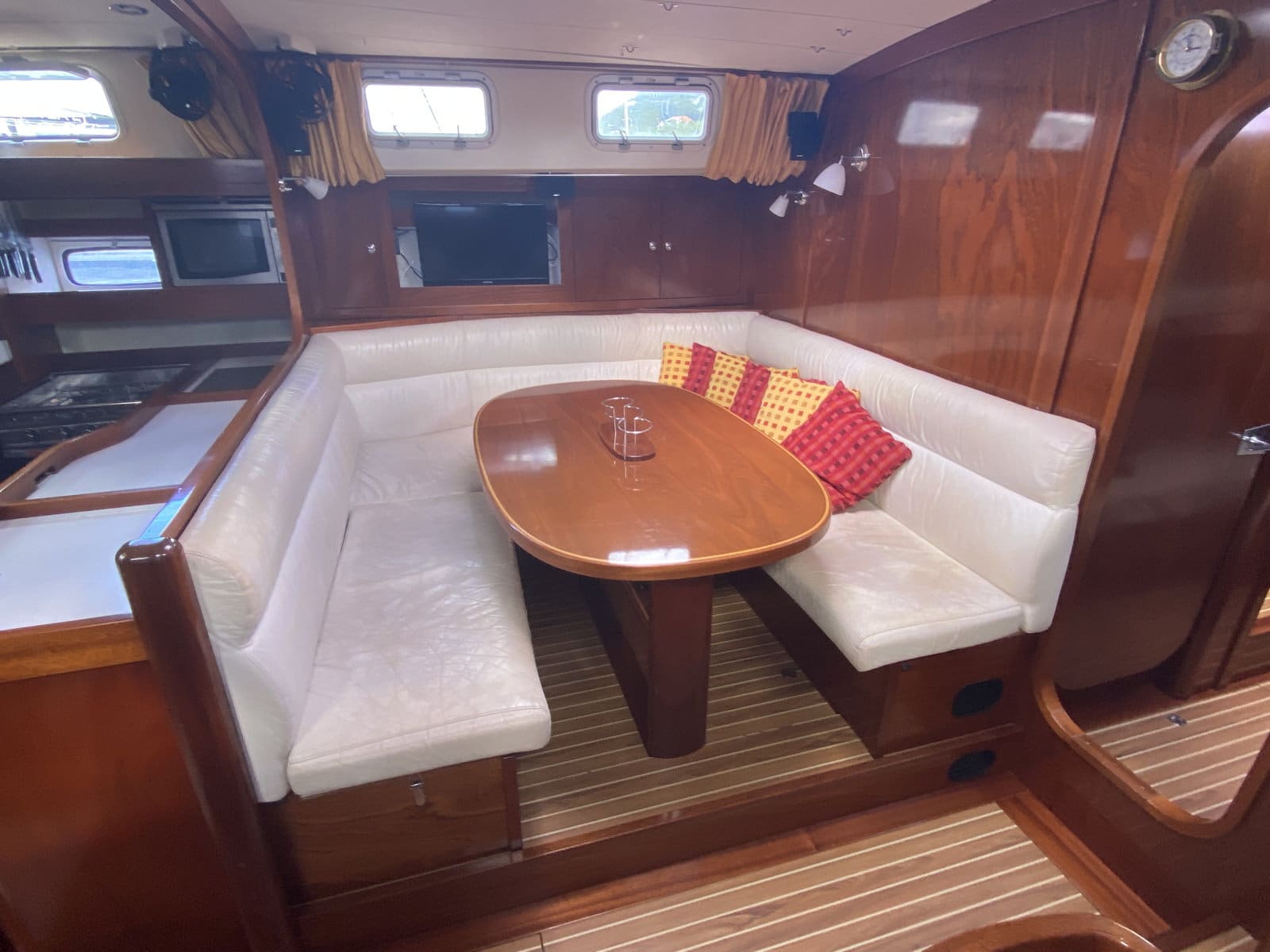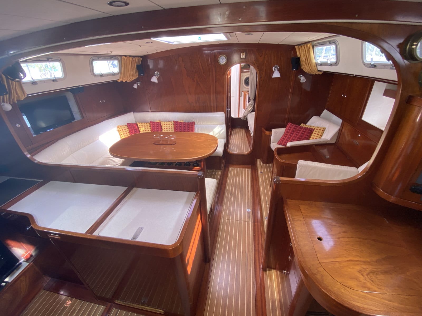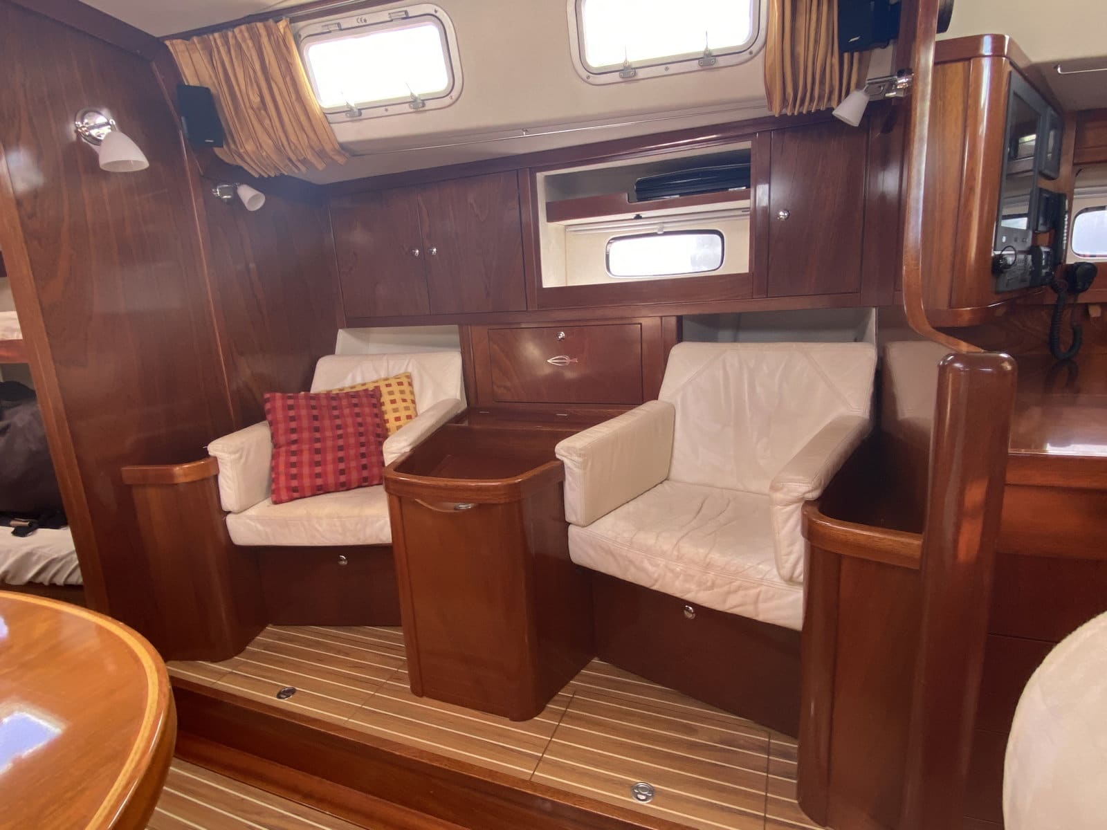 Saloon area with 2 armchairs on starboard