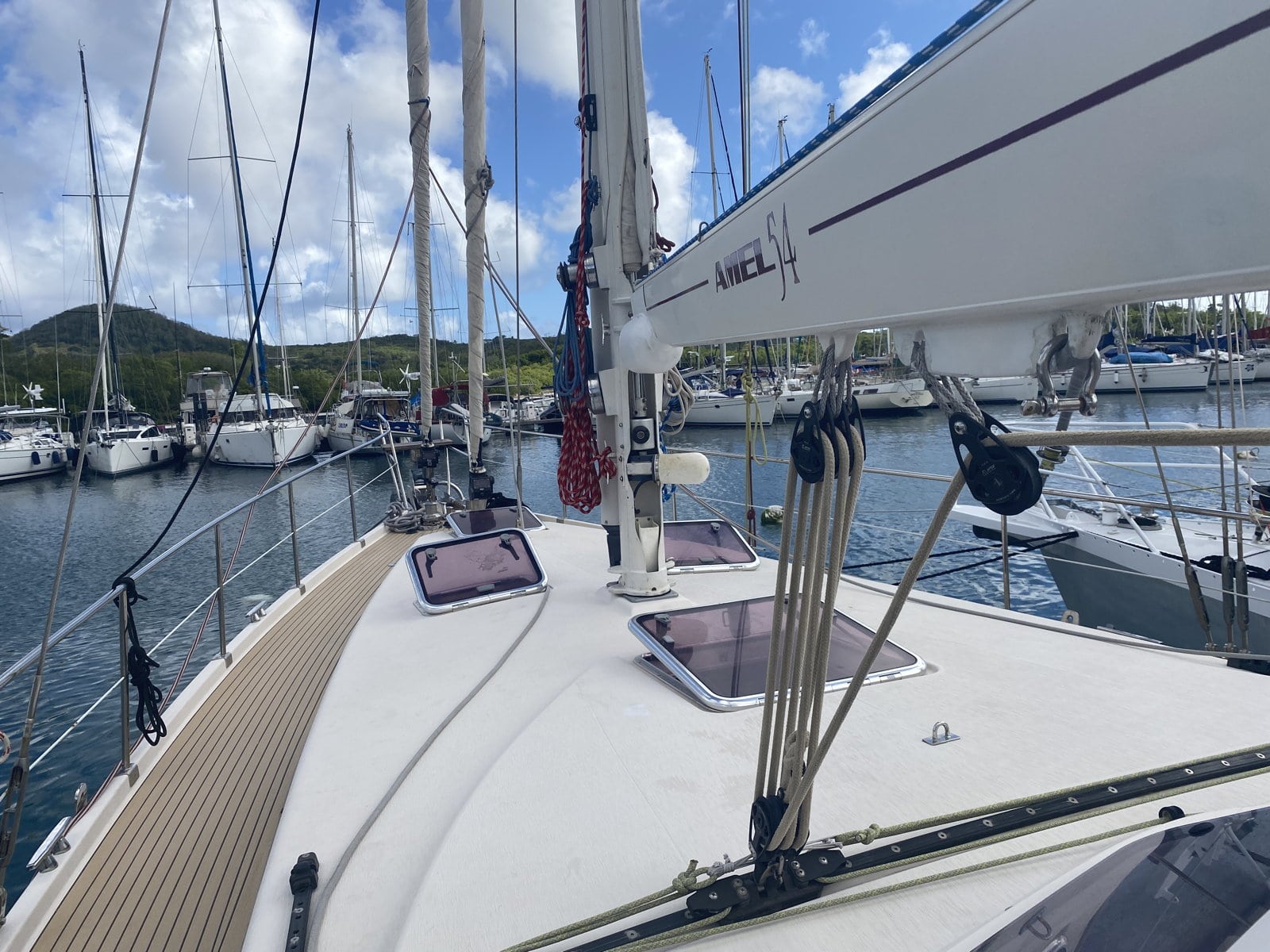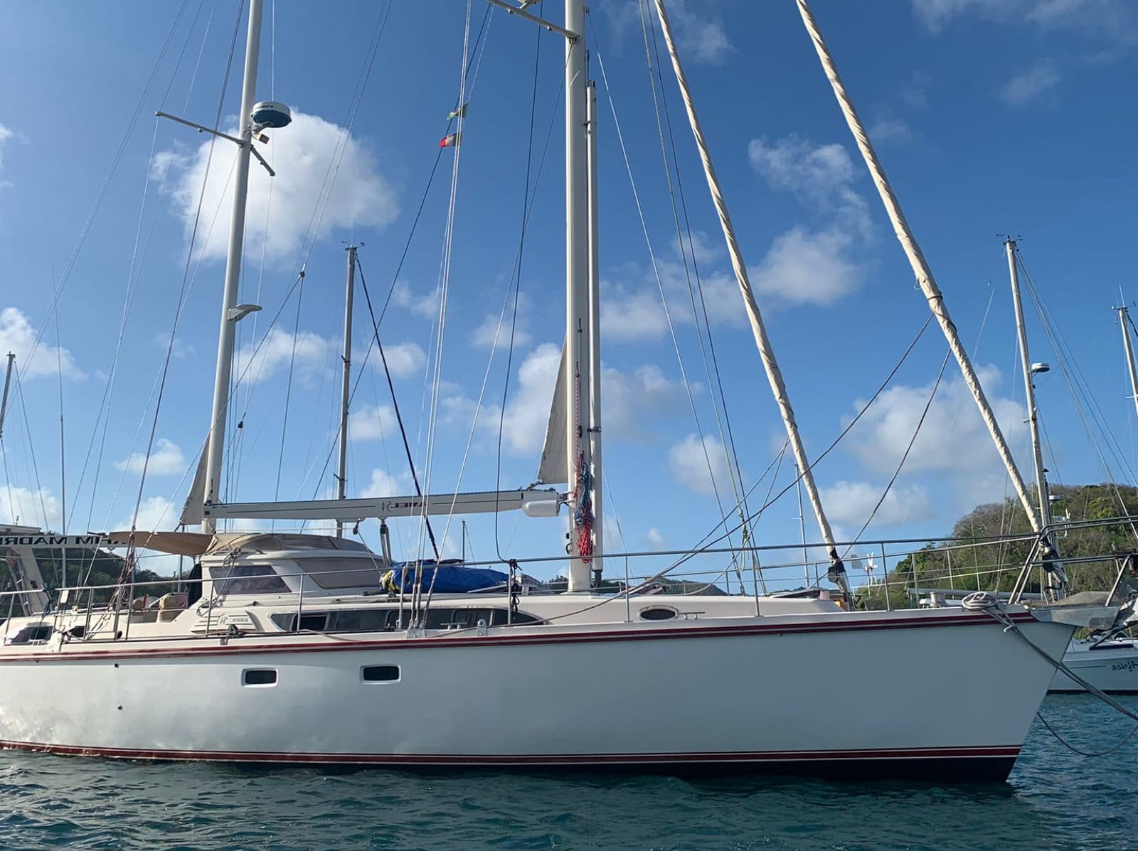 She just crossed the Atlantic to come to the Caribbean : new rigging, big service on the engine, (timing belt – heat exchanger …)