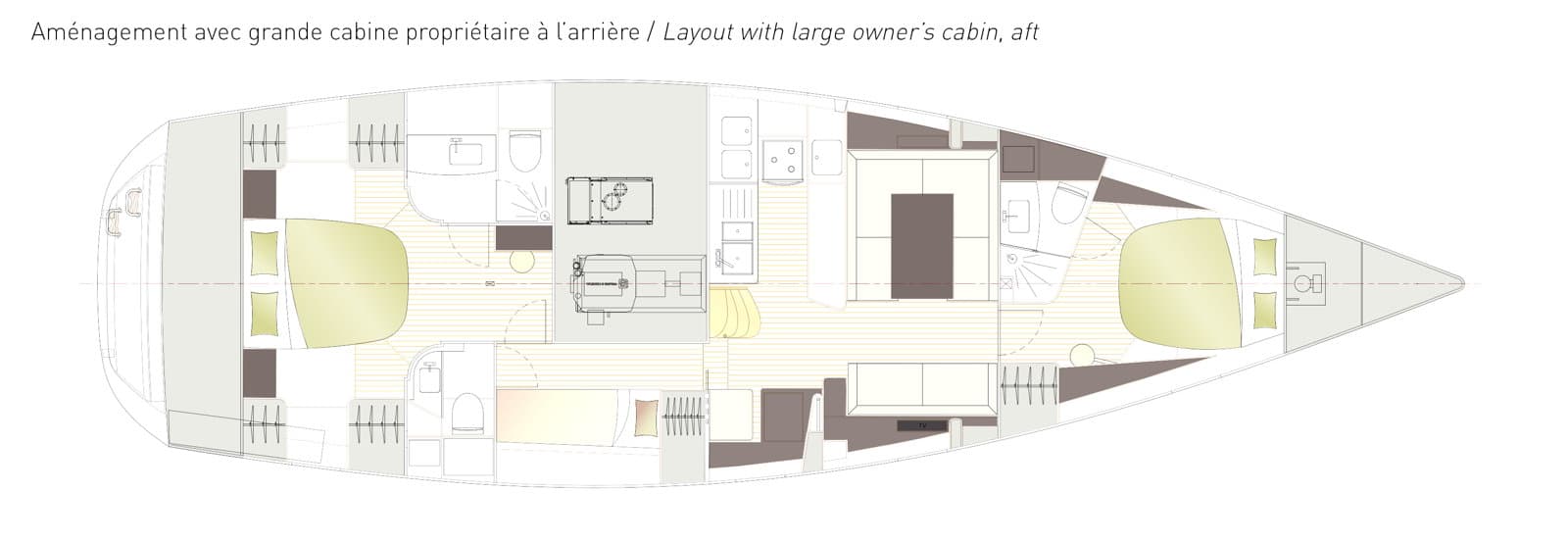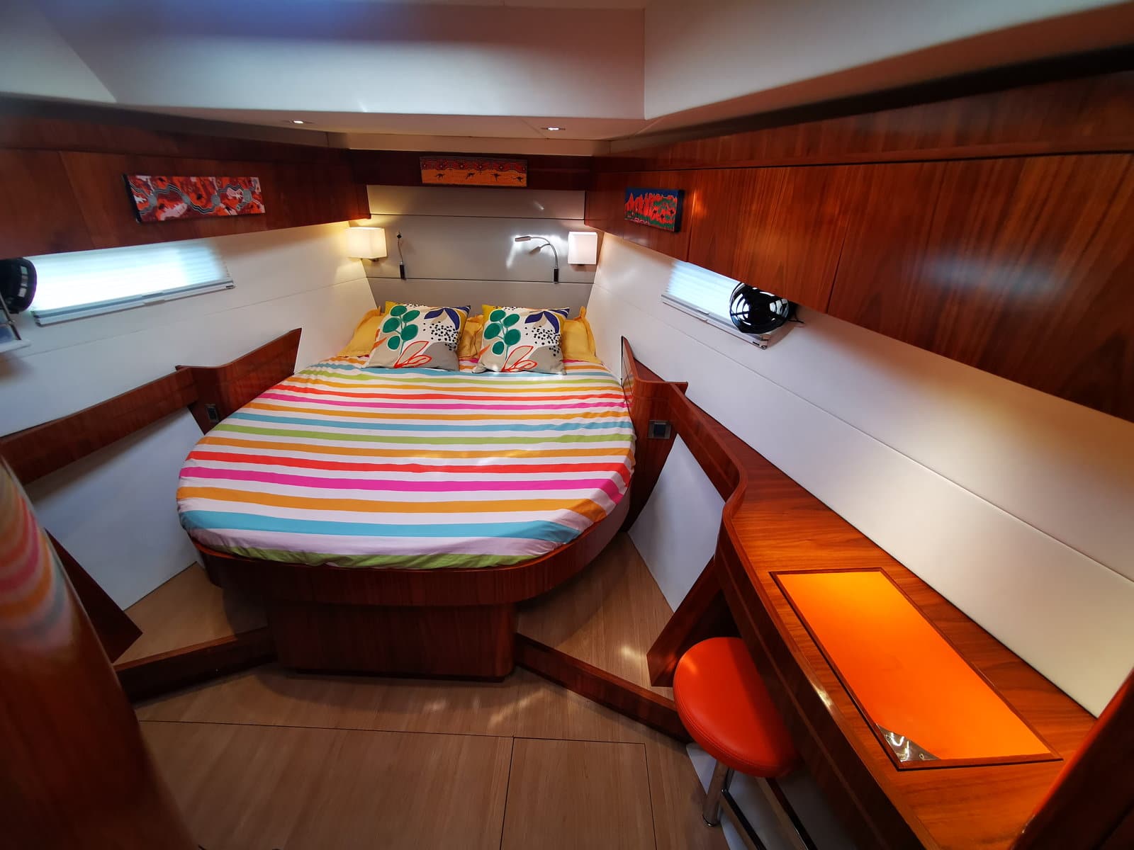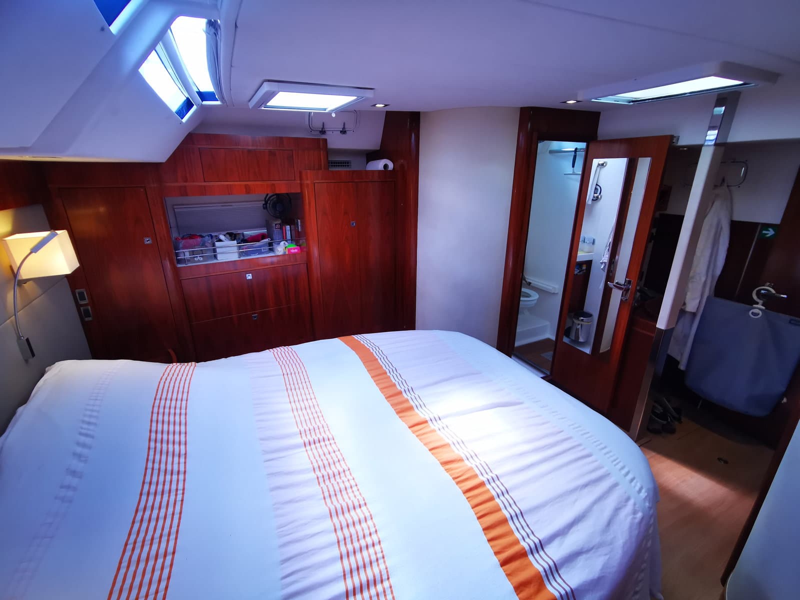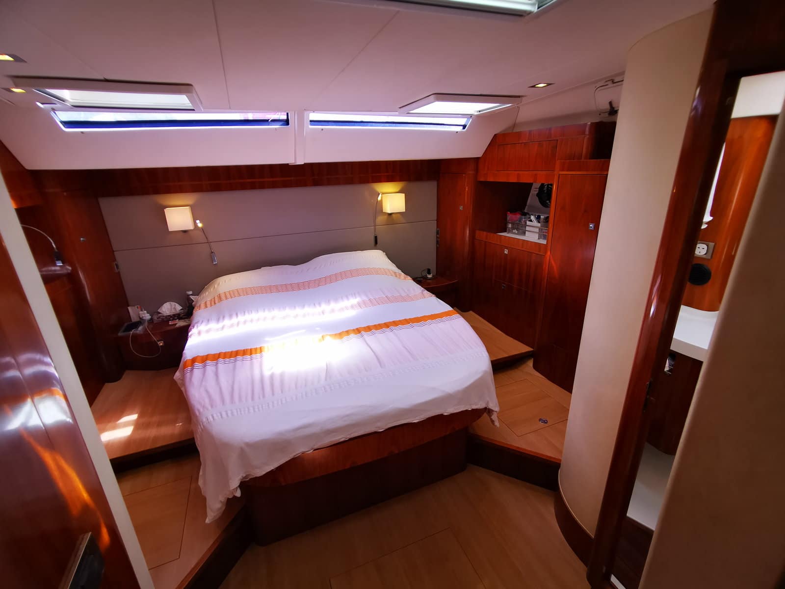 Light and spacious thanks to its opening hatches and large hull portholes, it offers an excellent sea view