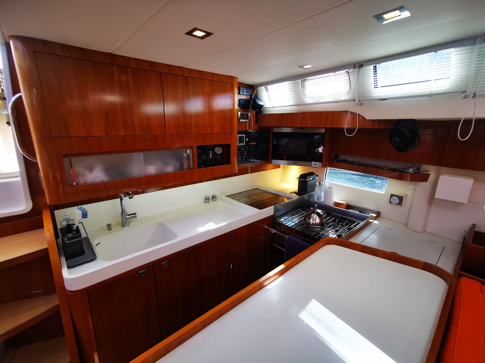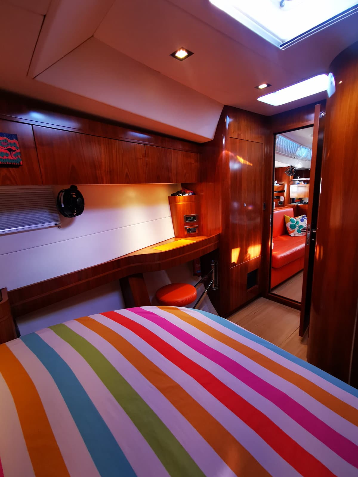 Leds spots and ambient lighting,, dimmers in saloon and cabins
