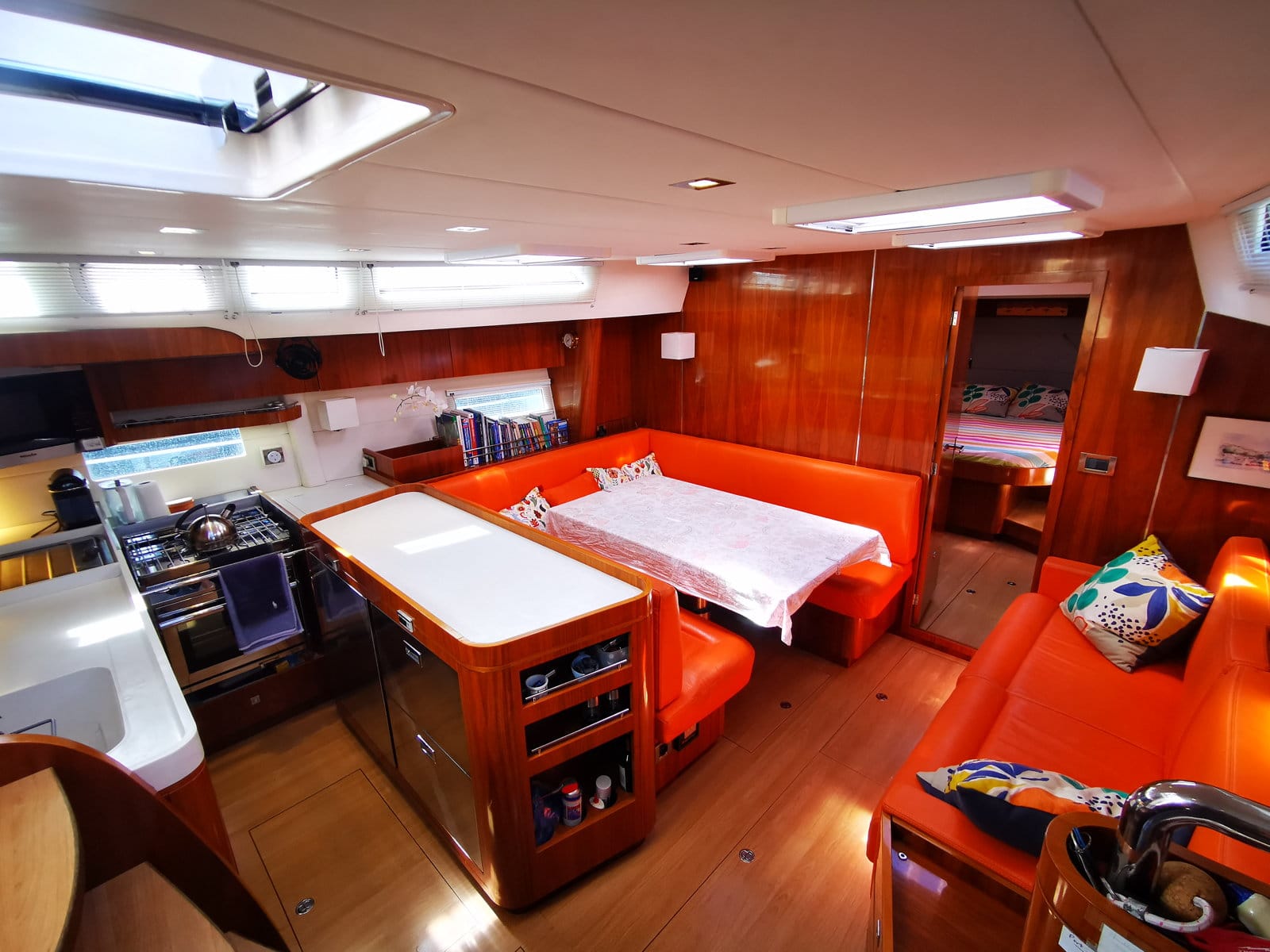 “As regards the boat history, she was sailed from La Rochelle to the Med in 2012 and stayed in the Med until 2018. After we bought her late 2015, we sailed the 2016 season in Greece and Turkey, the following season from Malta to Italy ( including Venice), Montenegro and Croatia.