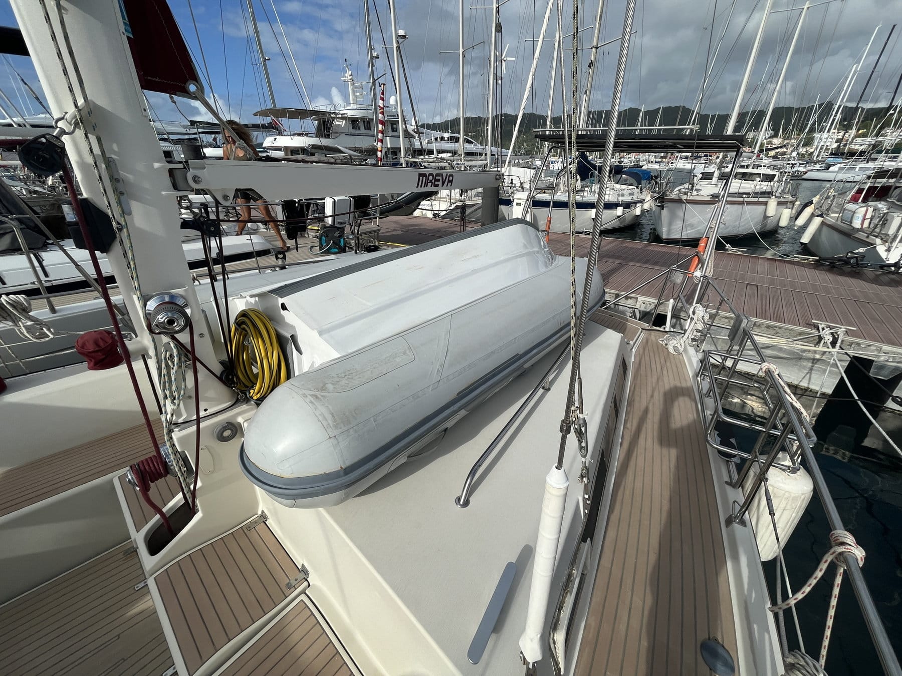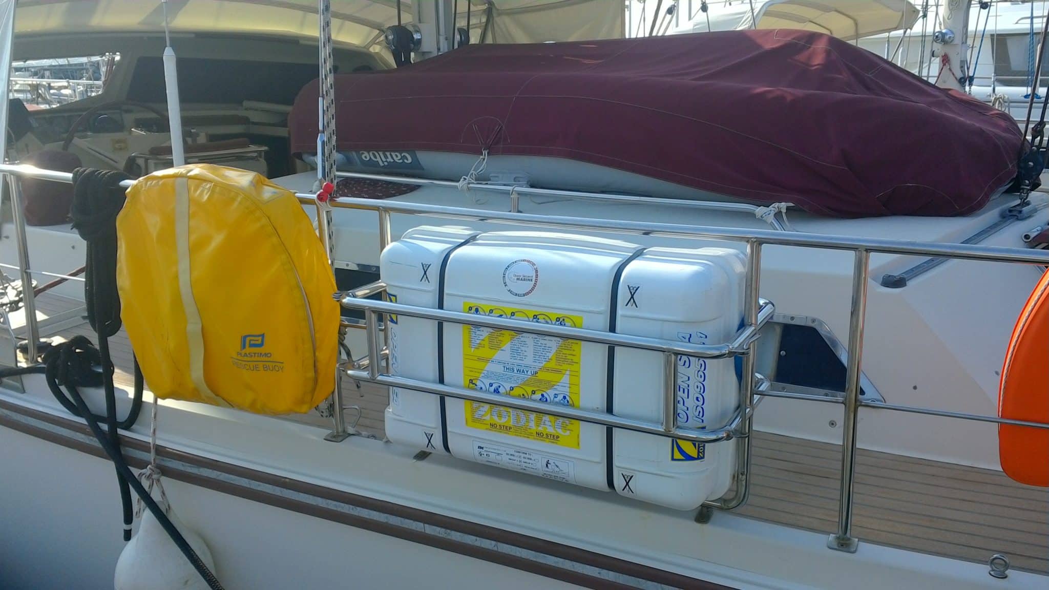 Stainless Support for the liferaft on the guard rail
