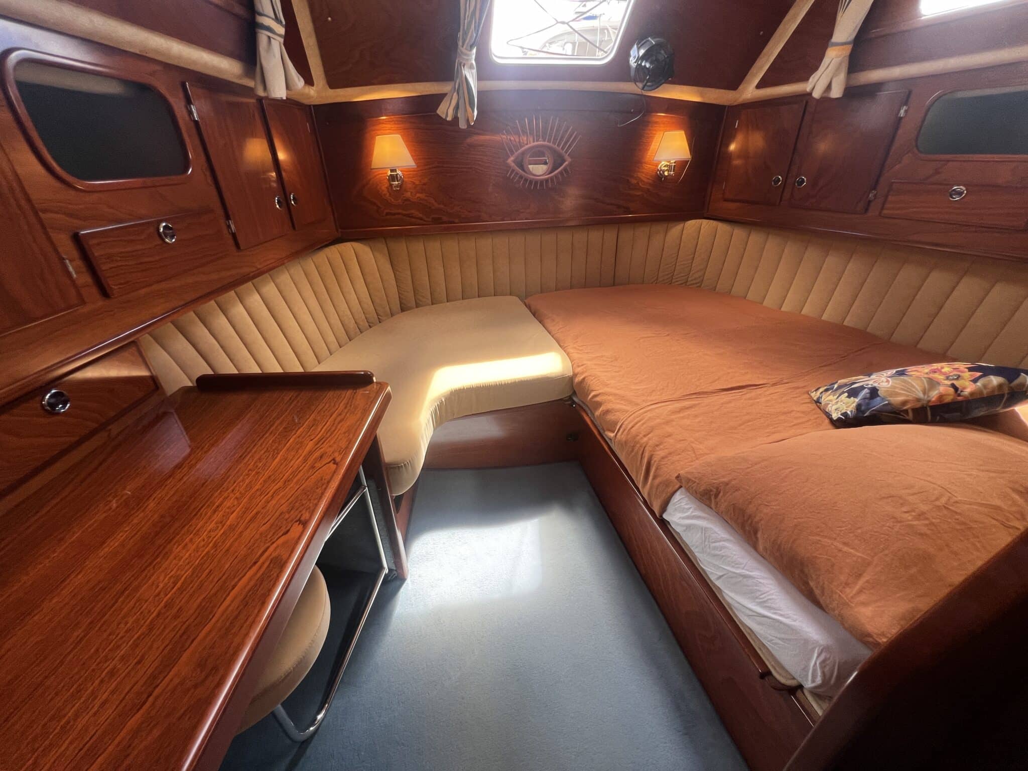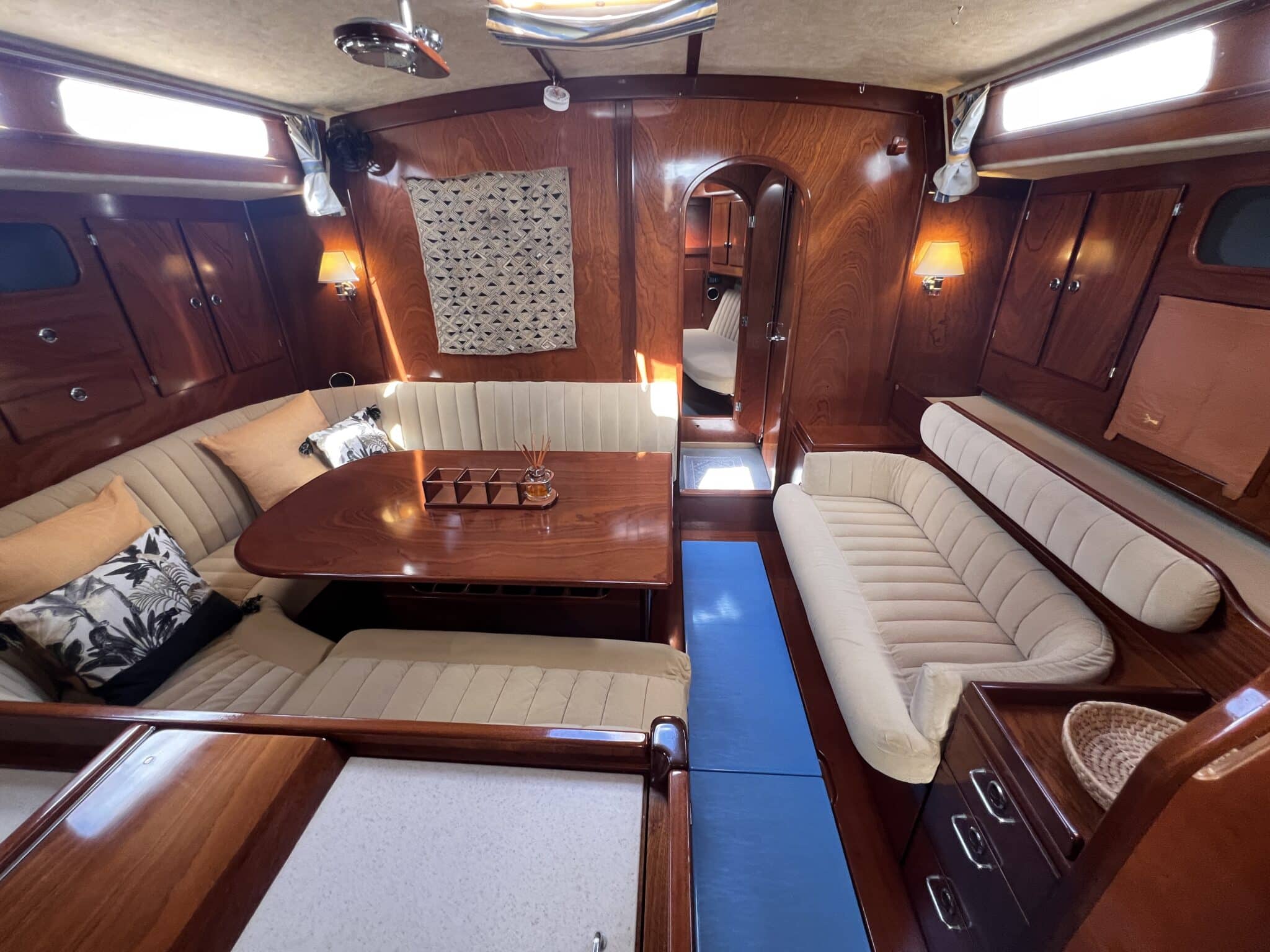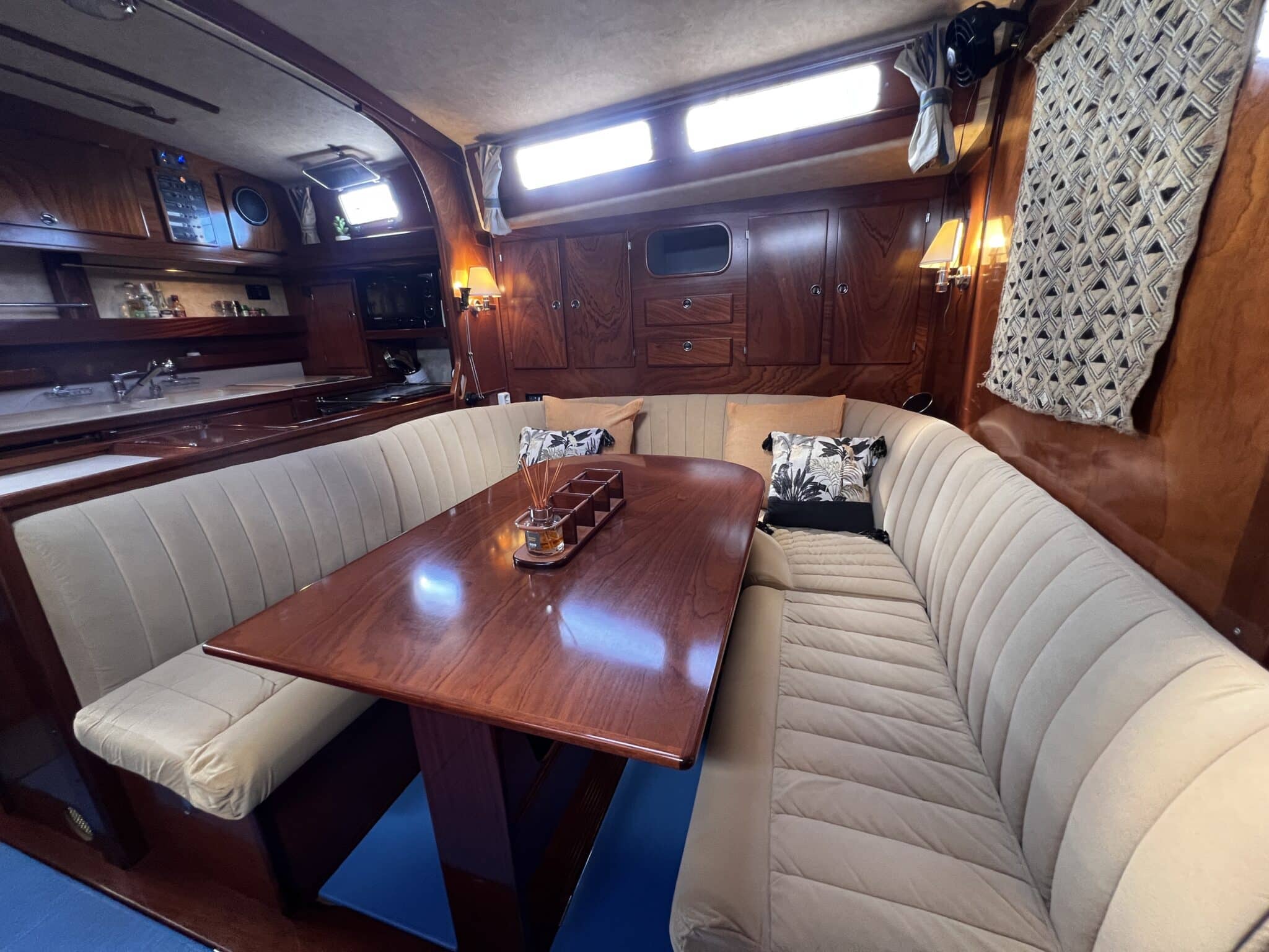 Large table on port sofa on starboard