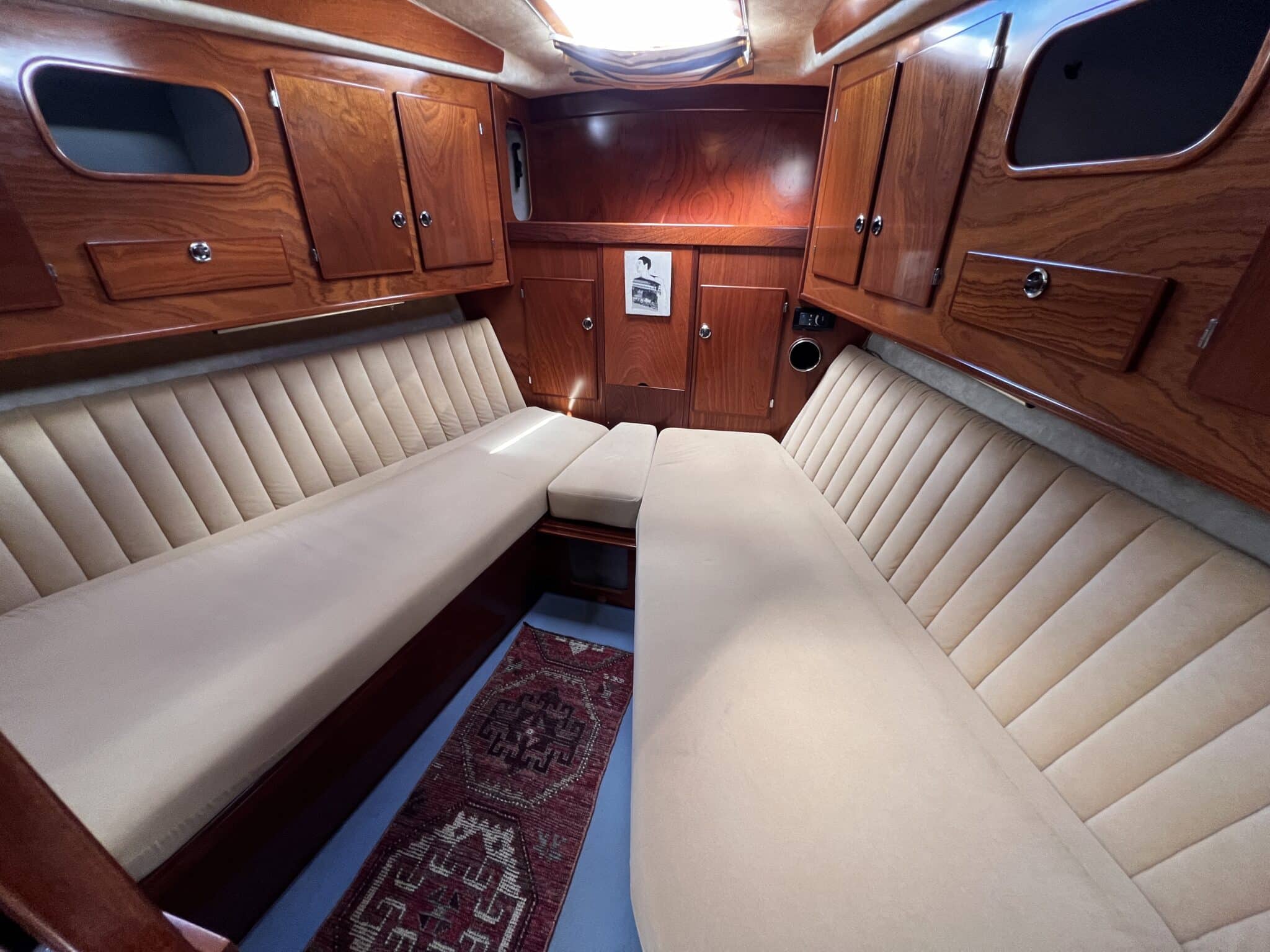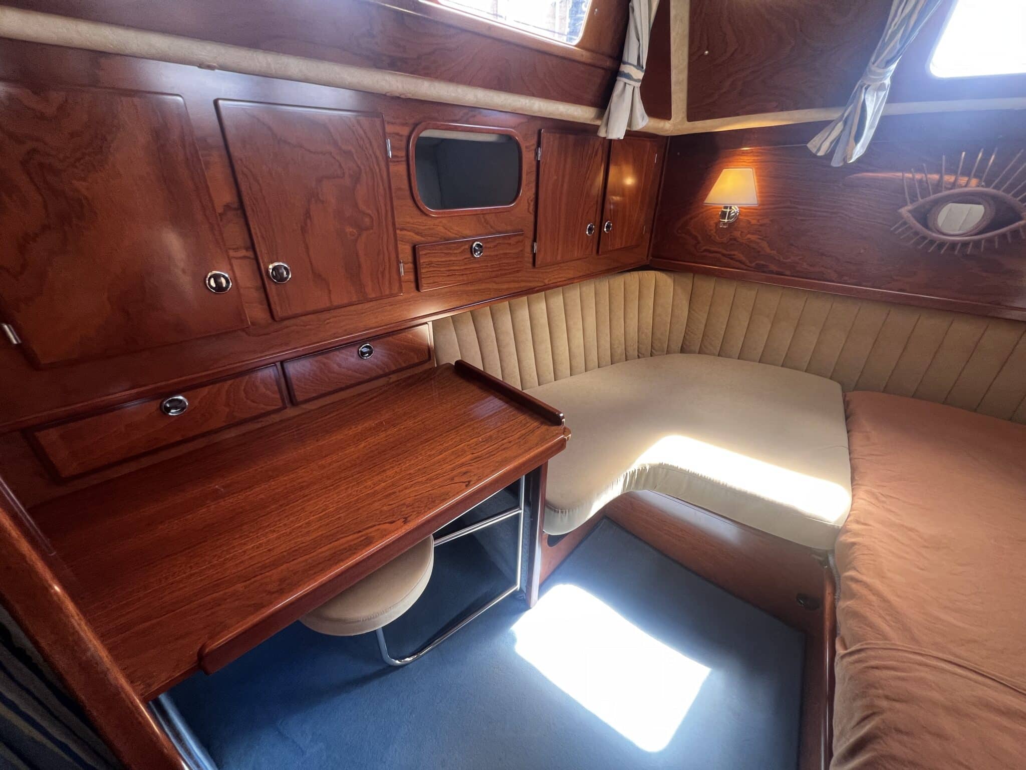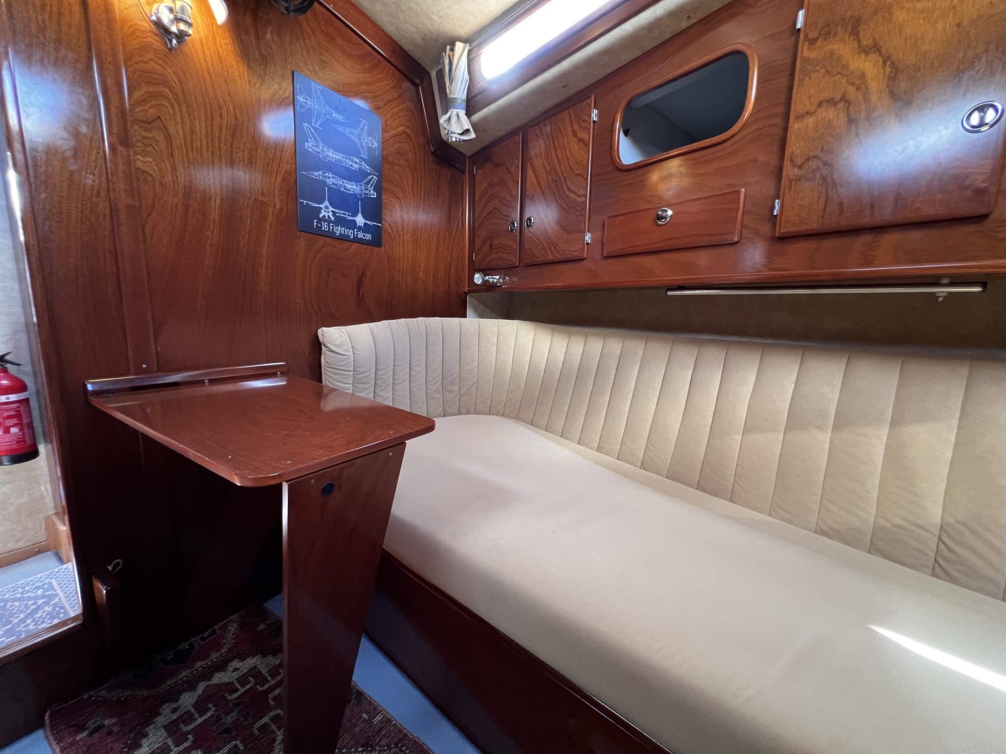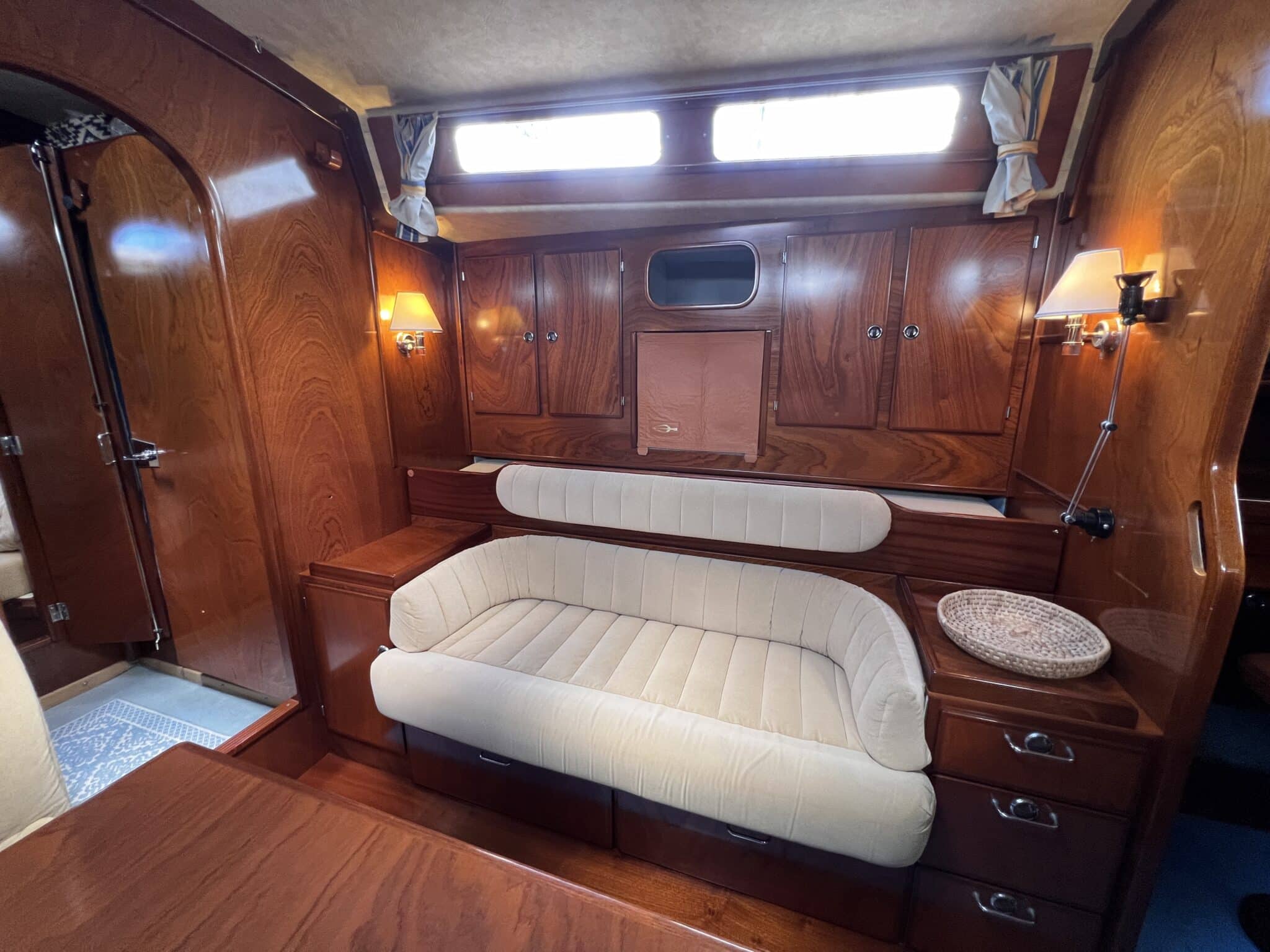Large table on port sofa on starboard