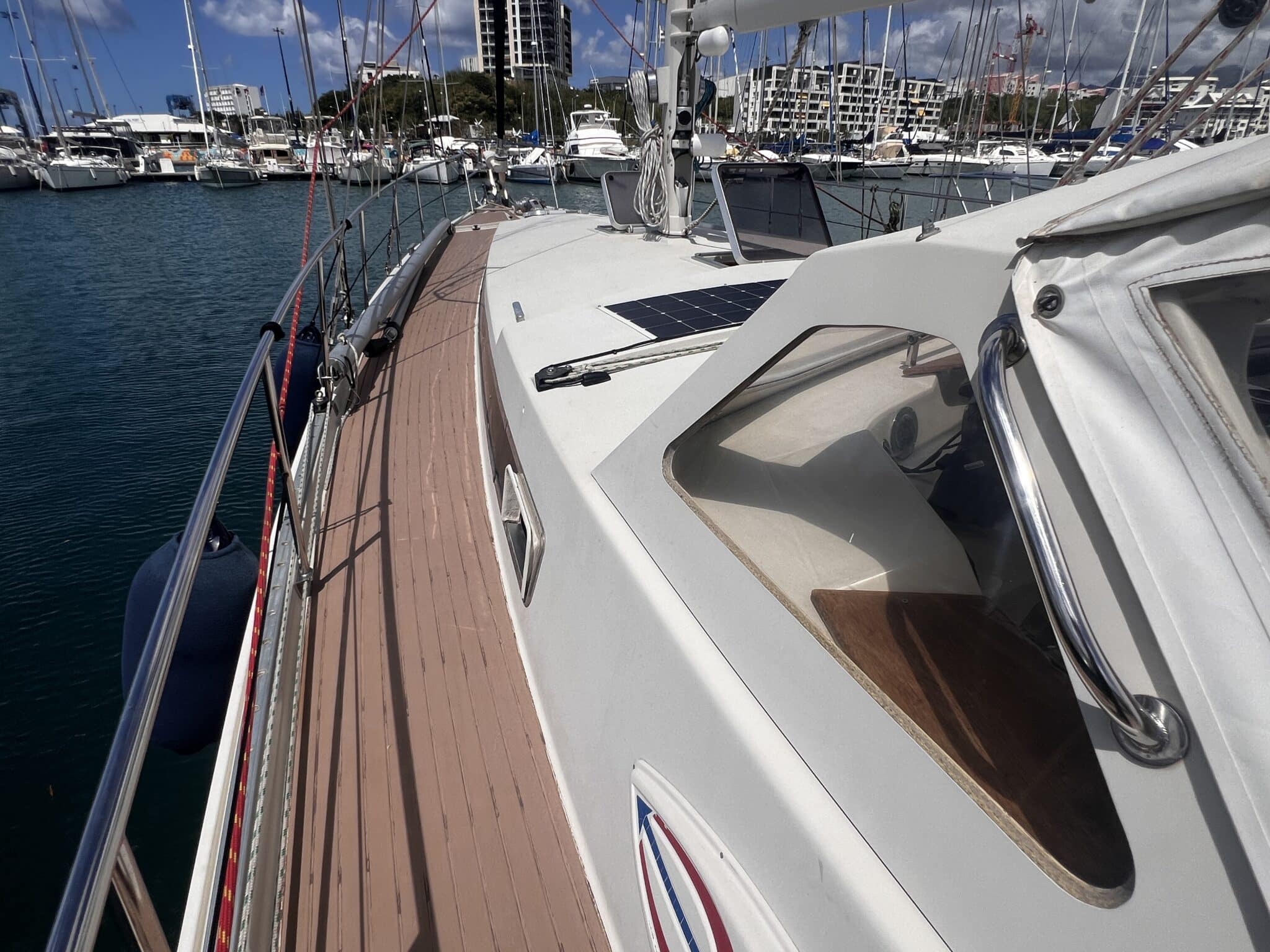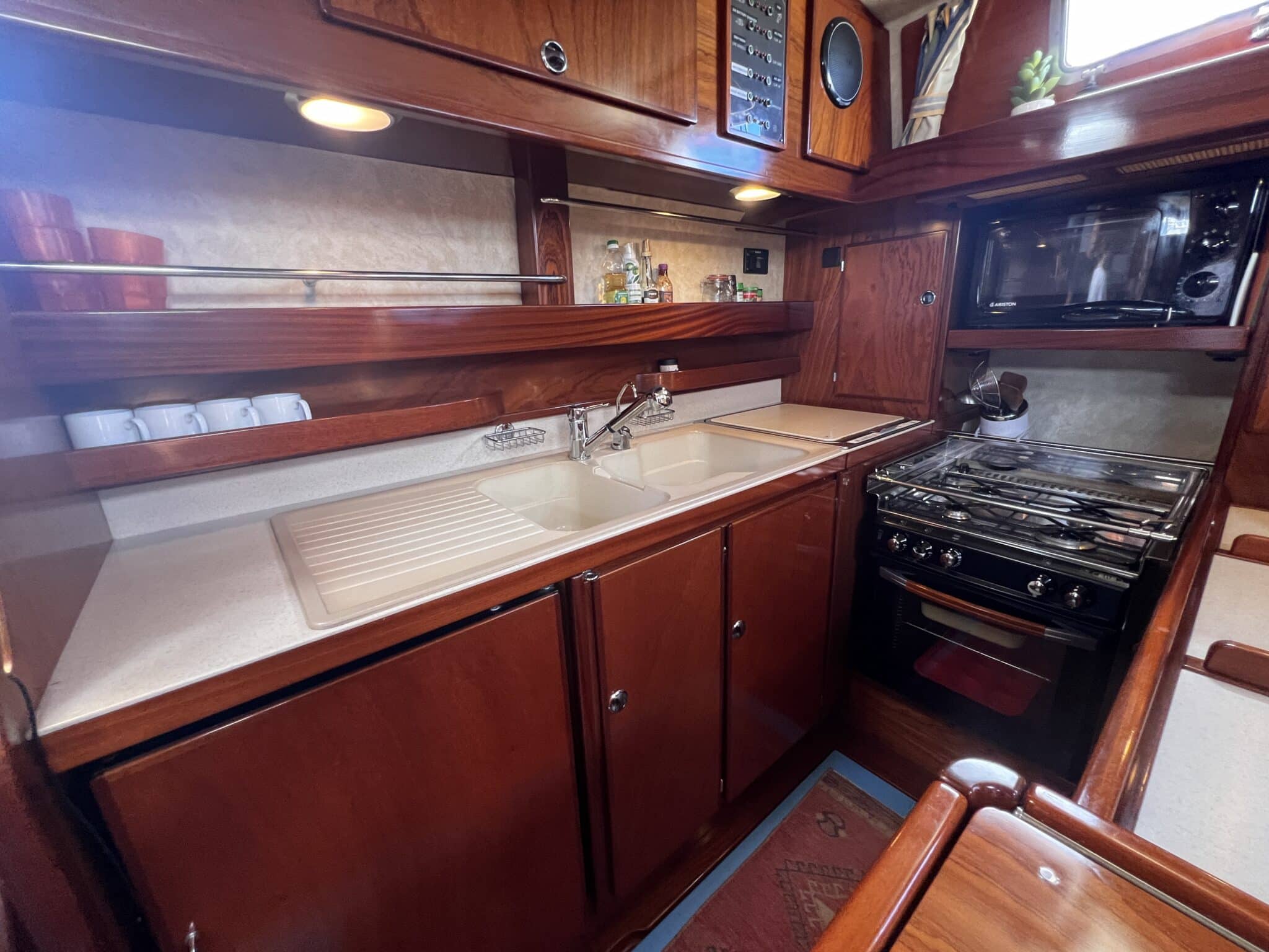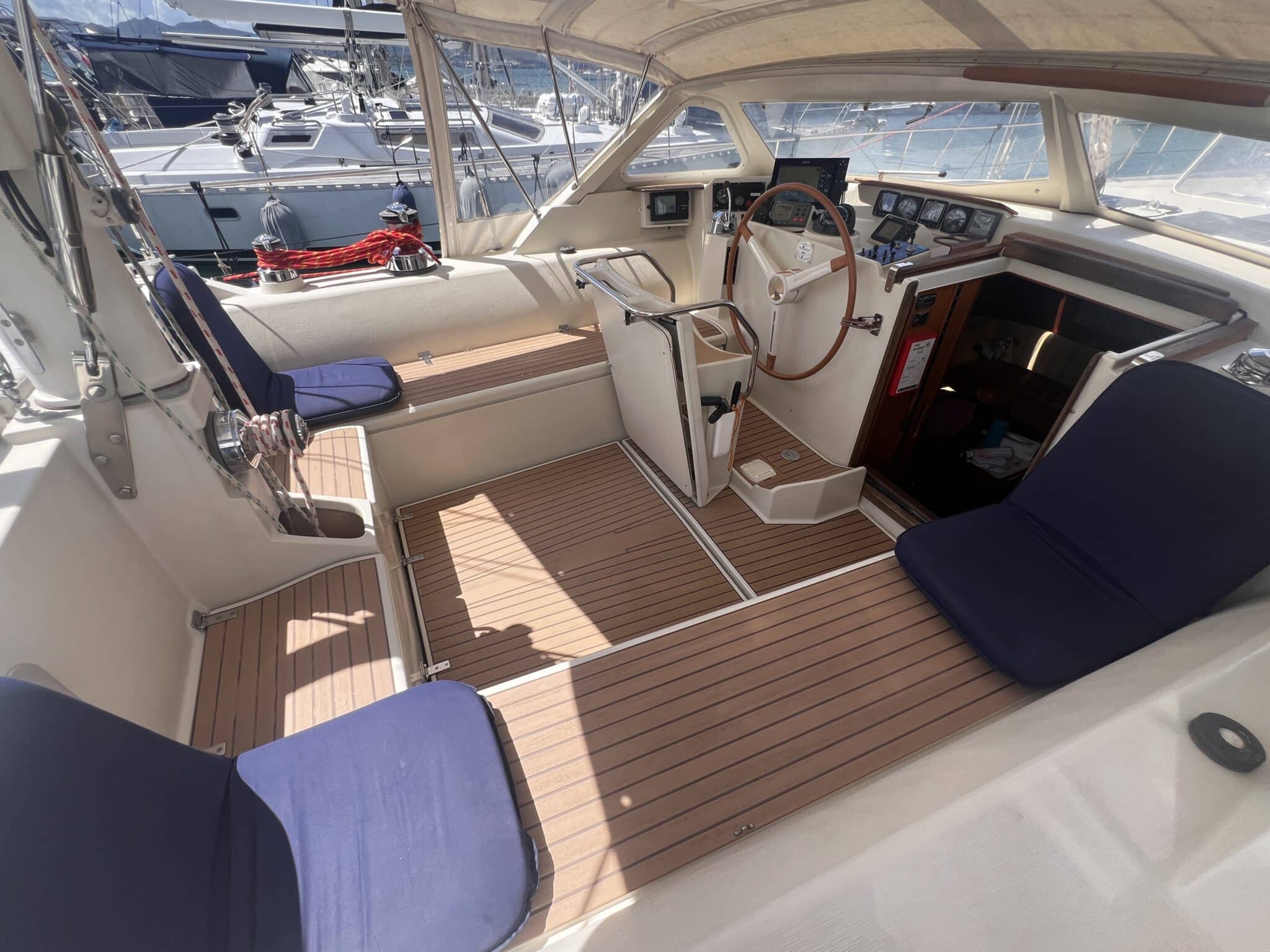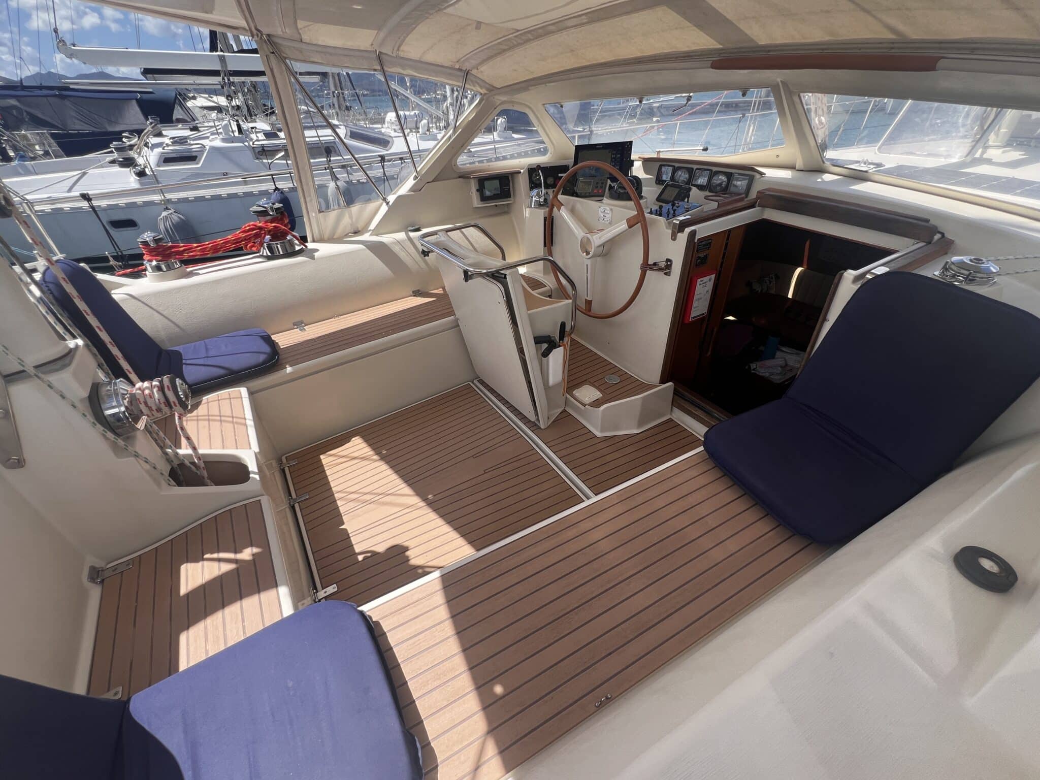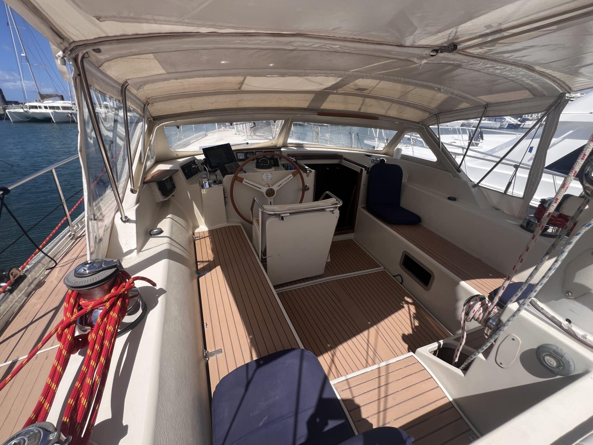 “Trinity is a ready to go around the world cruising yacht. She’s had love, attention, effort and a not insignificant amount of money spent on her. In return, she has taken great care of our family during our cruising in the Mediterranean and on our Atlantic crossing. We know that she will do the same for the next owner.”