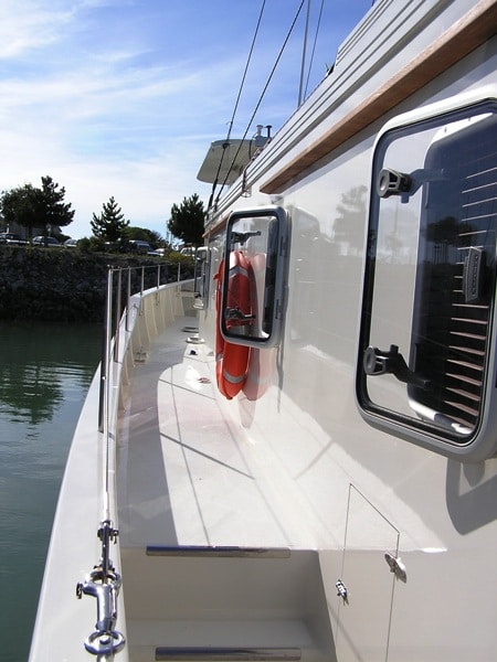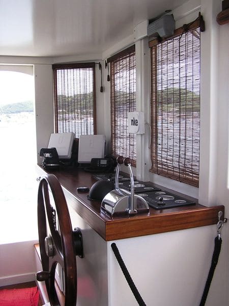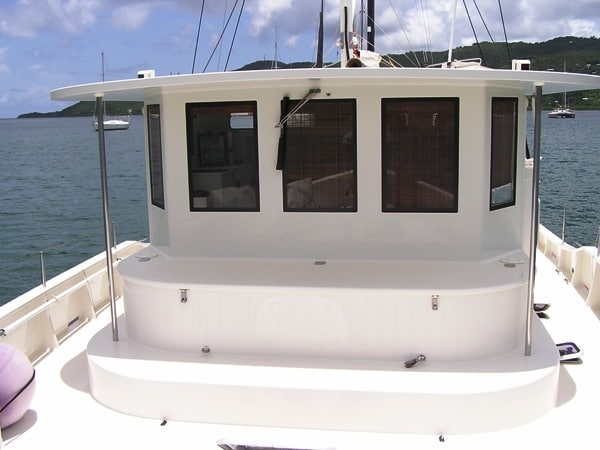 Separate wheelhouse (forward) giving access to lower deck and foredeck