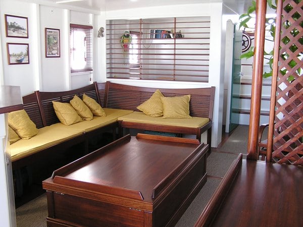 Comfortable and bright salon / saloon occupying the entire center of the ship
