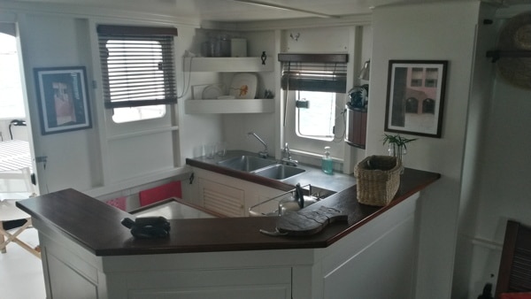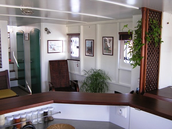Living space: cockpit, saloon, kitchen and owner’s cabin on the same level