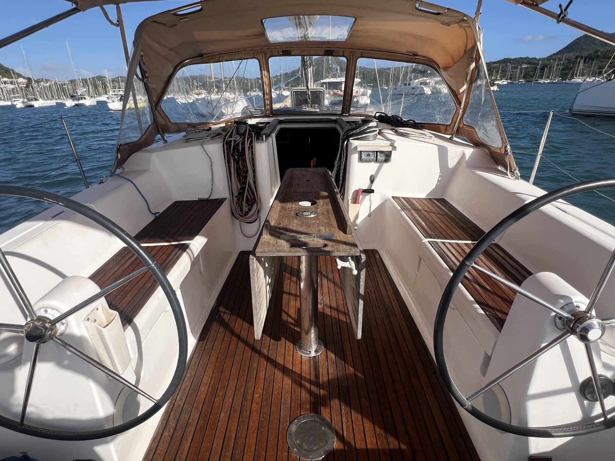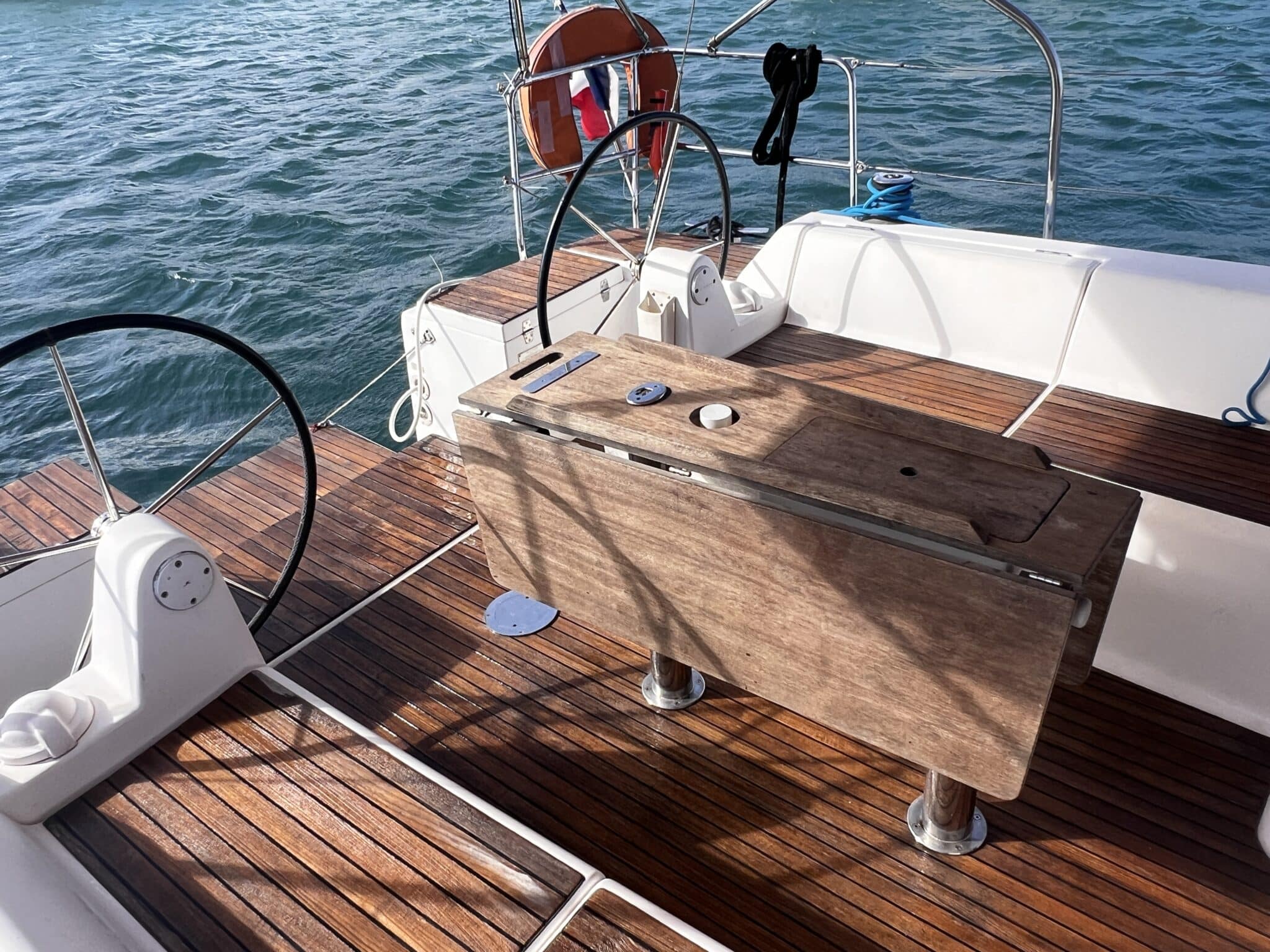 Double helm station in cockpit