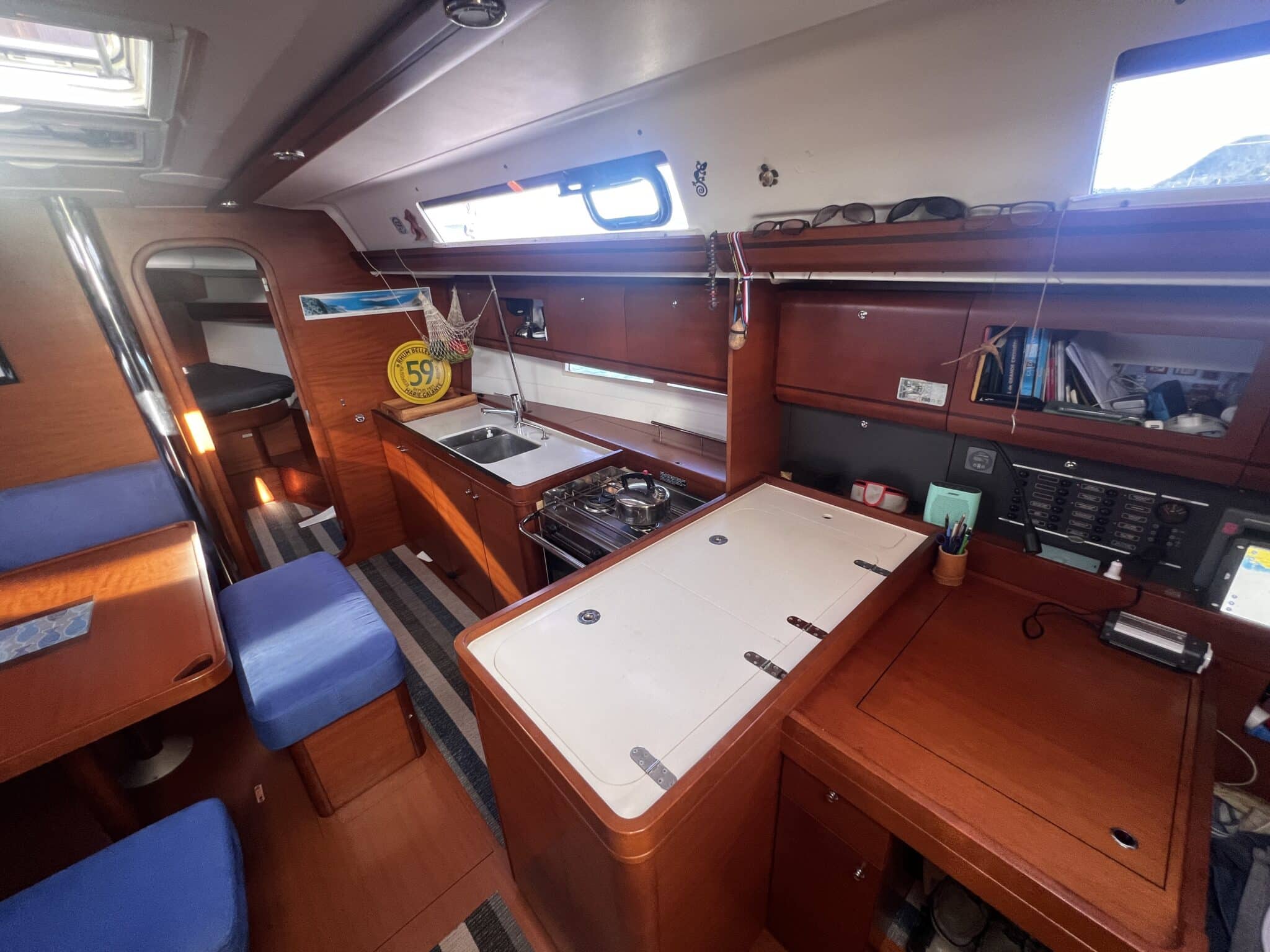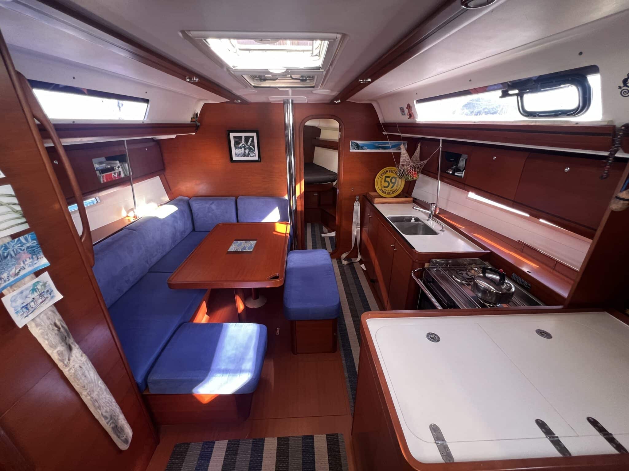 Spacious saloon down companionway with galley to starboard