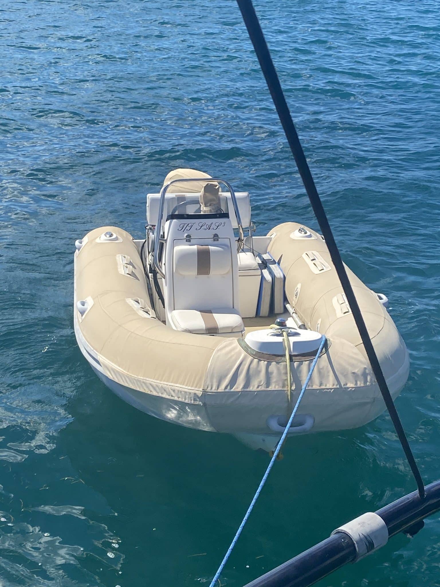 Hydraulic tilting bar at the aft to raise the dinghy