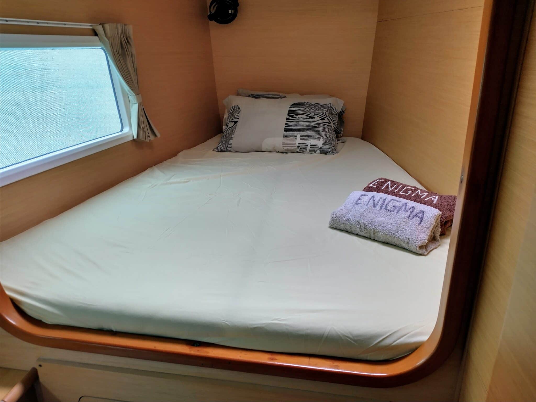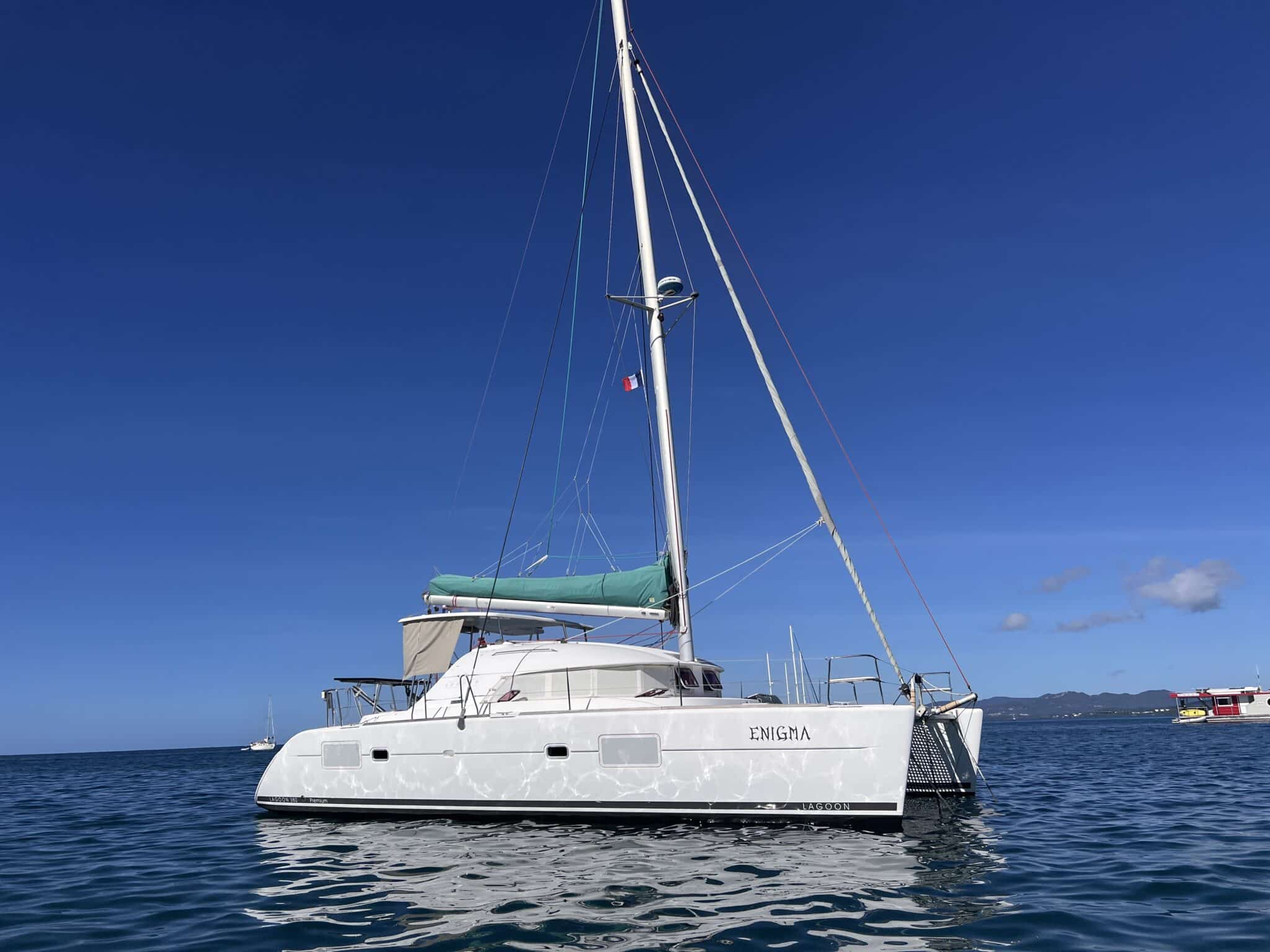 “As a retired captain and crew on sailing super yachts, my wife and I chose Enigma, a Lagoon 380 owners version catamaran, for our home afloat in the Caribbean.