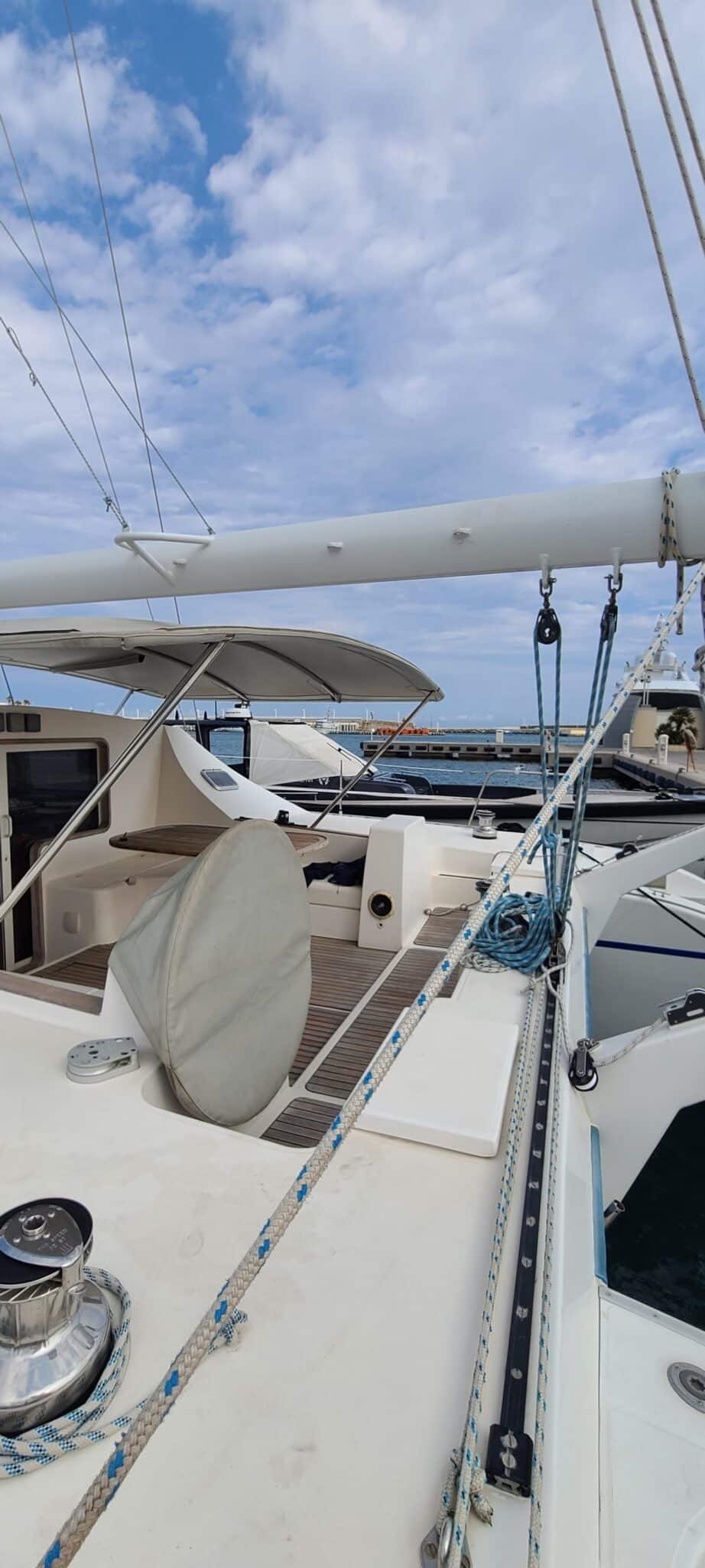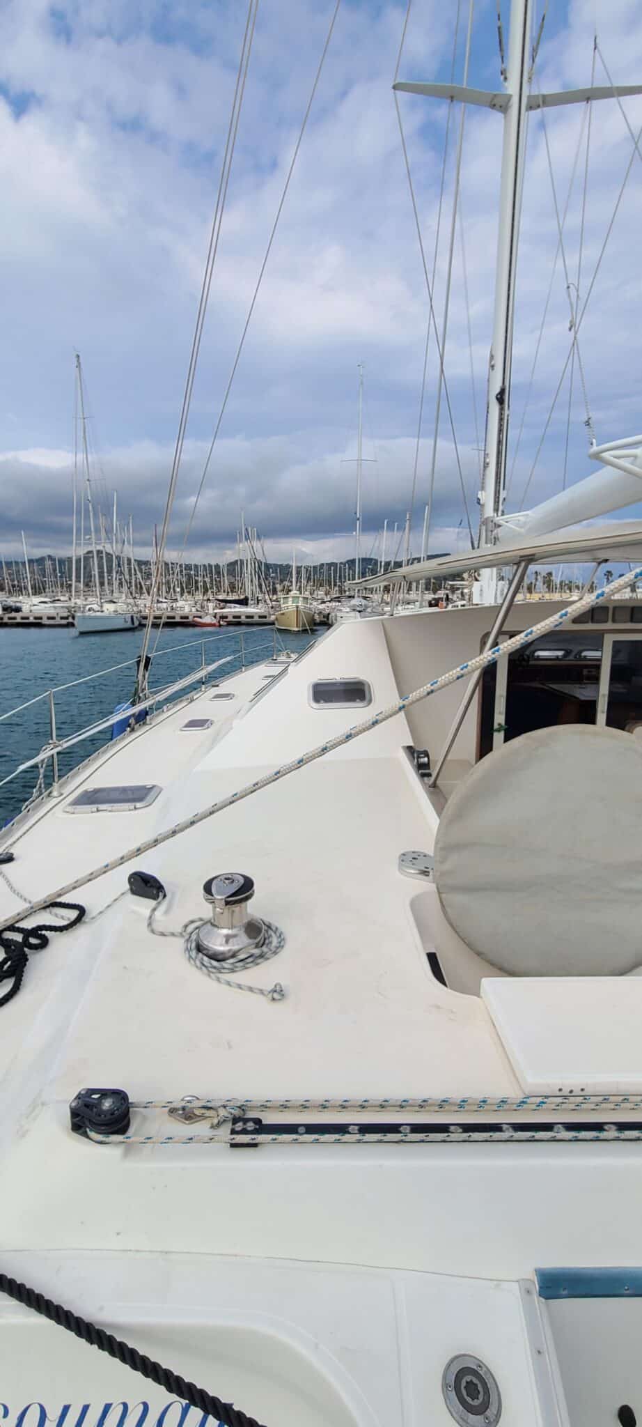 Kassoumay was upgraded from the basic 47 model with a Lagoon 470 rig. This added 1.5 m to the mast and associated power. She has undergone full annual rigging inspections. The forestay and roller system were changed in 2012. ANDERSEN INOX Winches