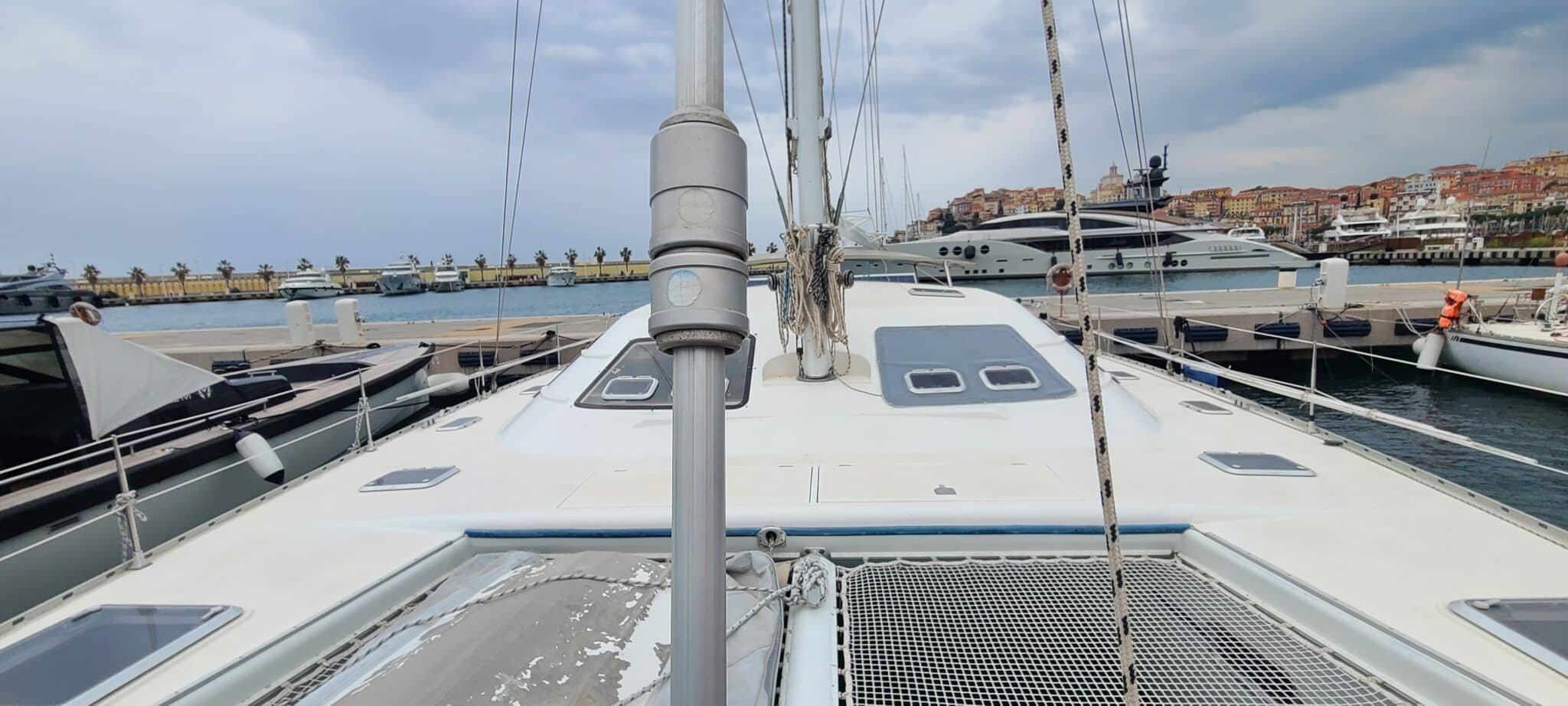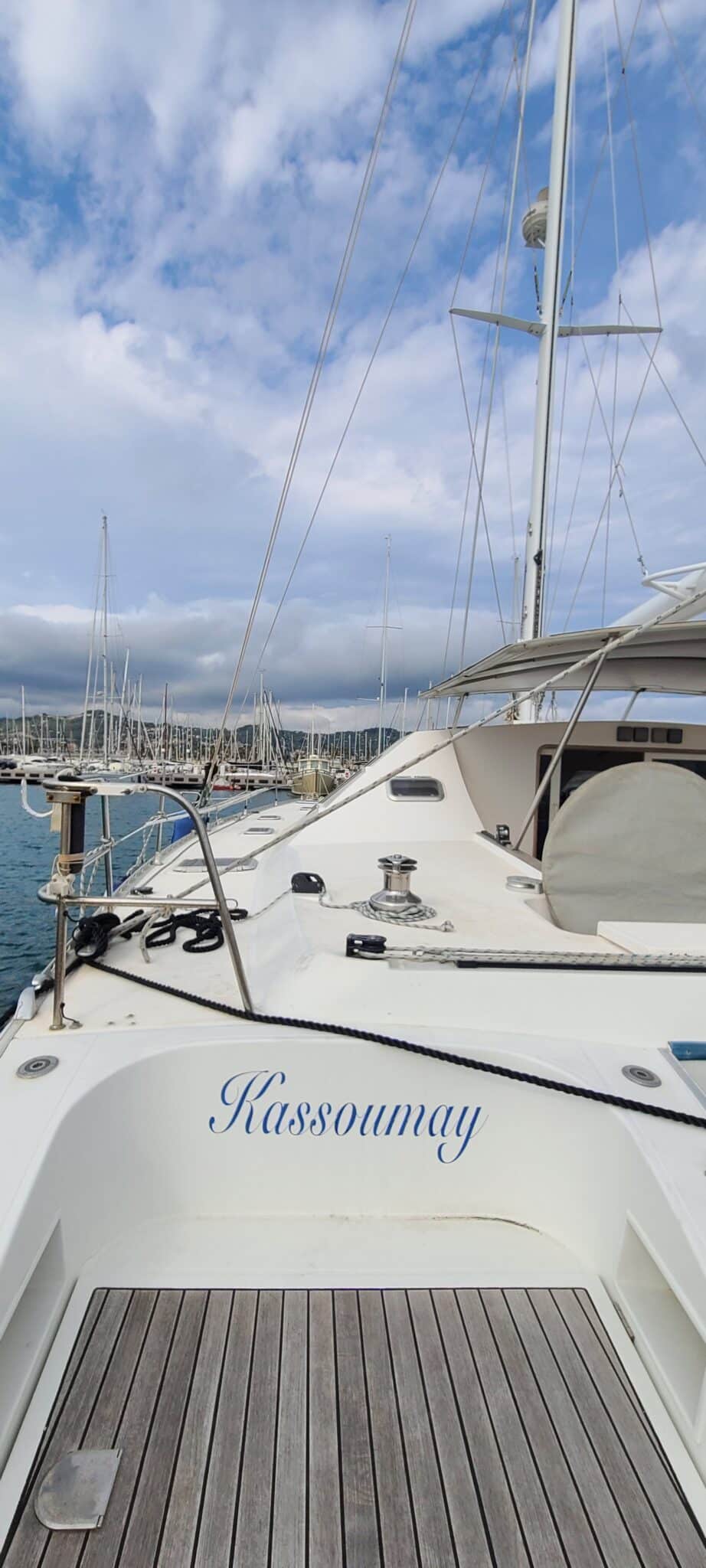 The mast of this boat is longer than the standard version and the fittings are oversized. Thus KASSOUMAY is a boat whose performance is far superior to that of a standard Lagoon 47.