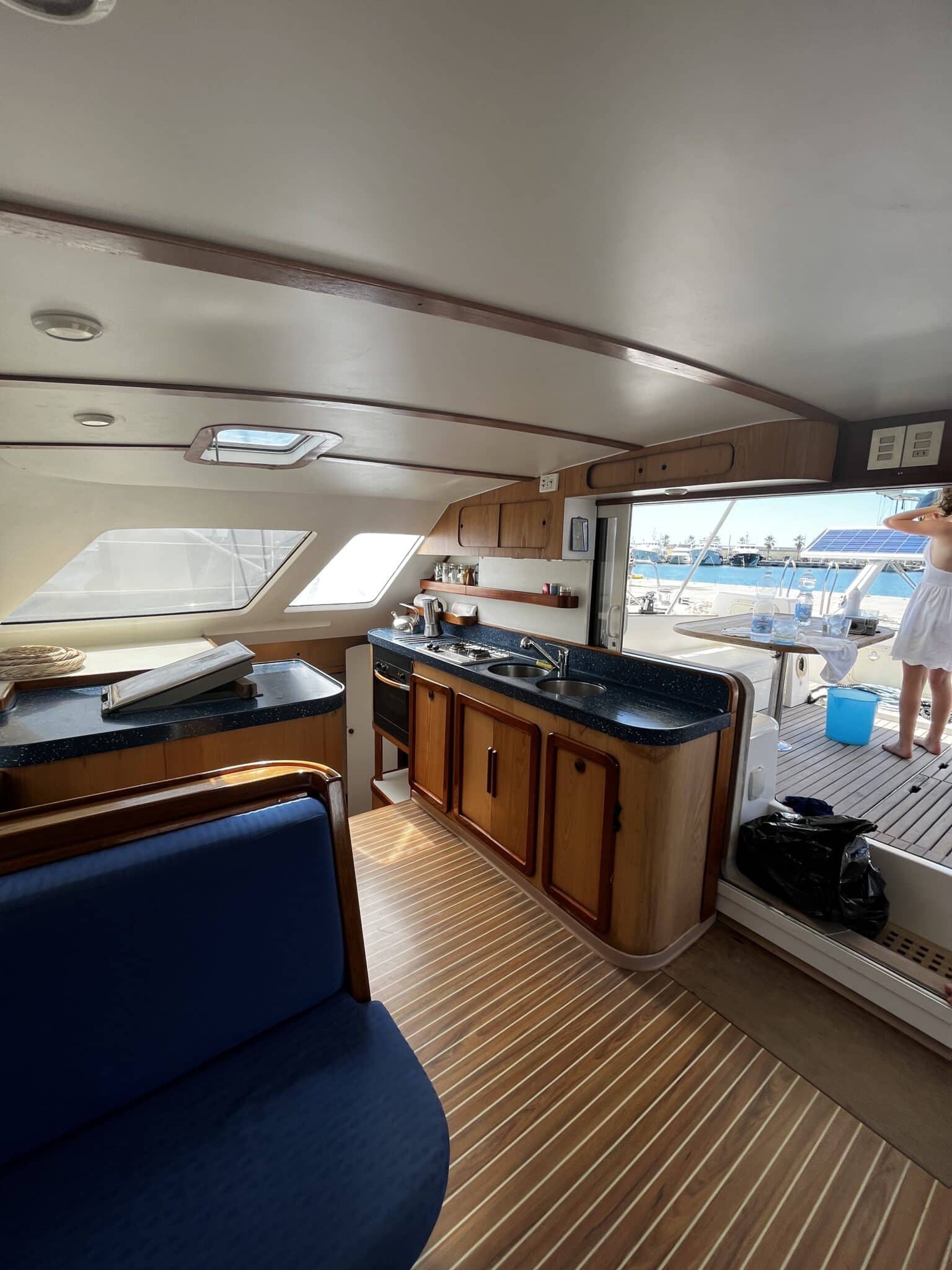 The first owner of this boat, a marine surveyor, had a boat delivered by lagoon without interior fittings. He then had a shipyard make the adjustments so that the weight of the boat would be considerably reduced compared to the standard version, for example by using composite bulkheads and floors.