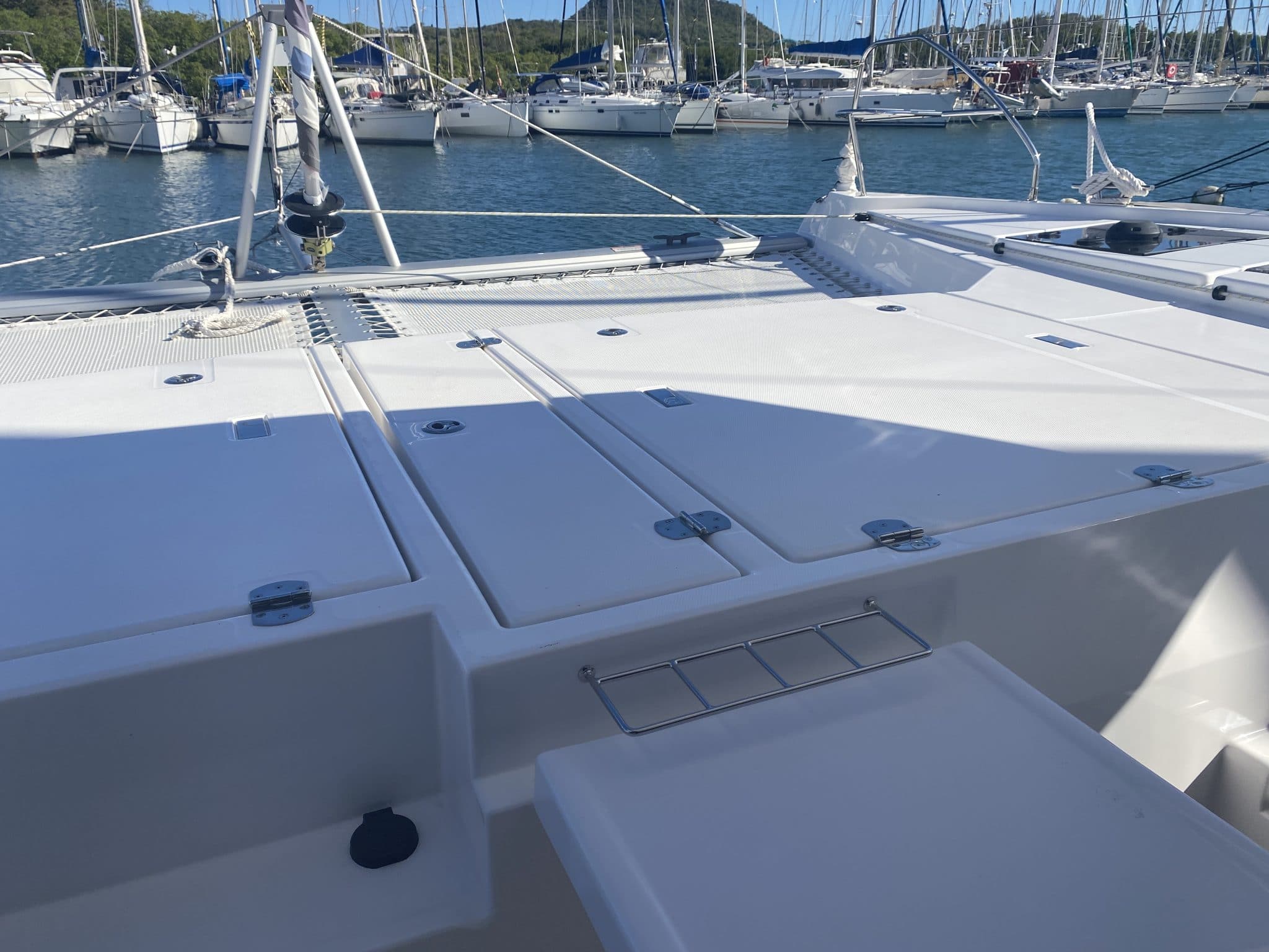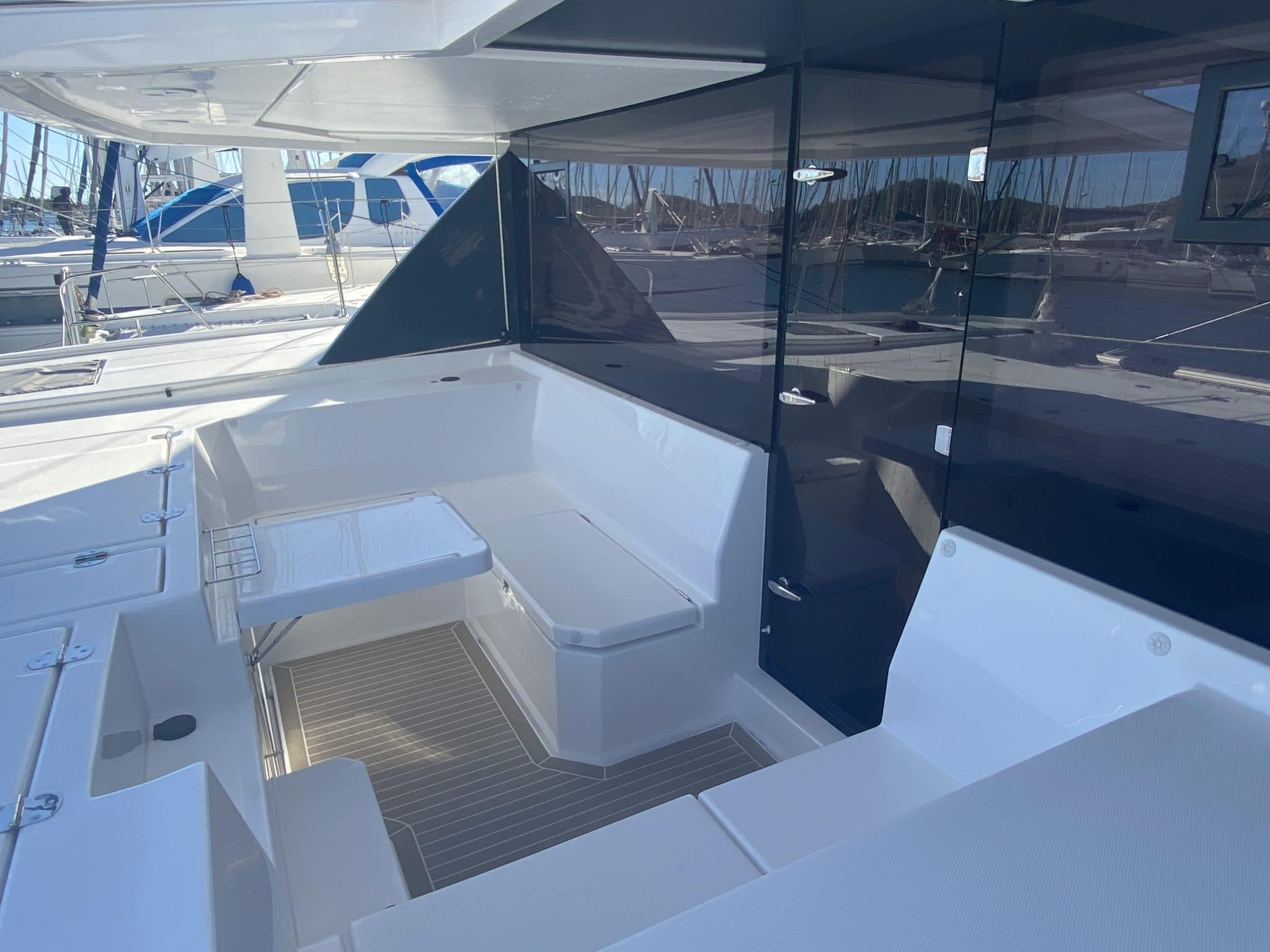 Composite teak deck : aft cockpit, fwd cockpit, helm platform, transom steps and coachroof lounge