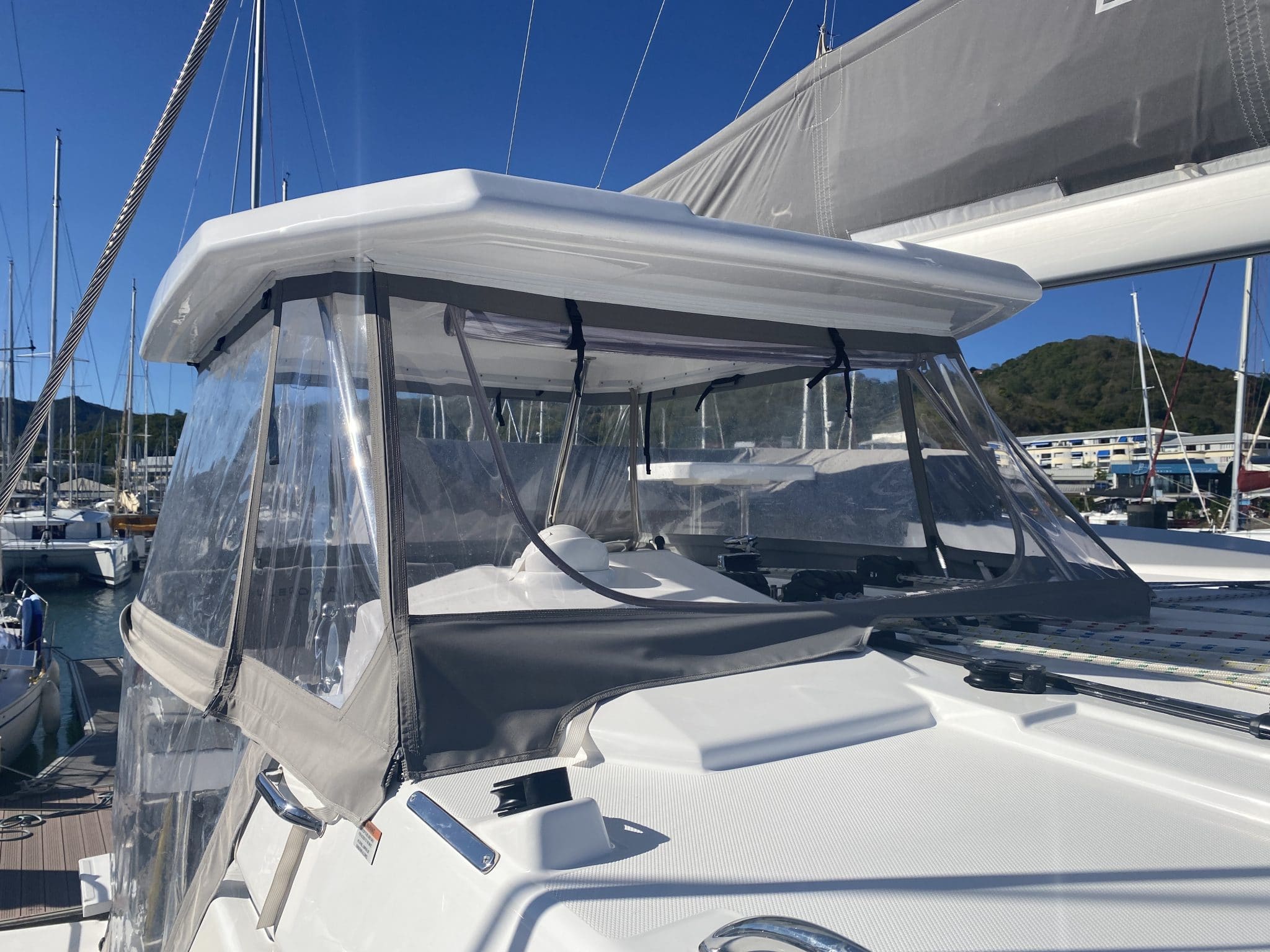 Aft cockpit : hardtop with full enclosure, table, cushions, barbecue,…