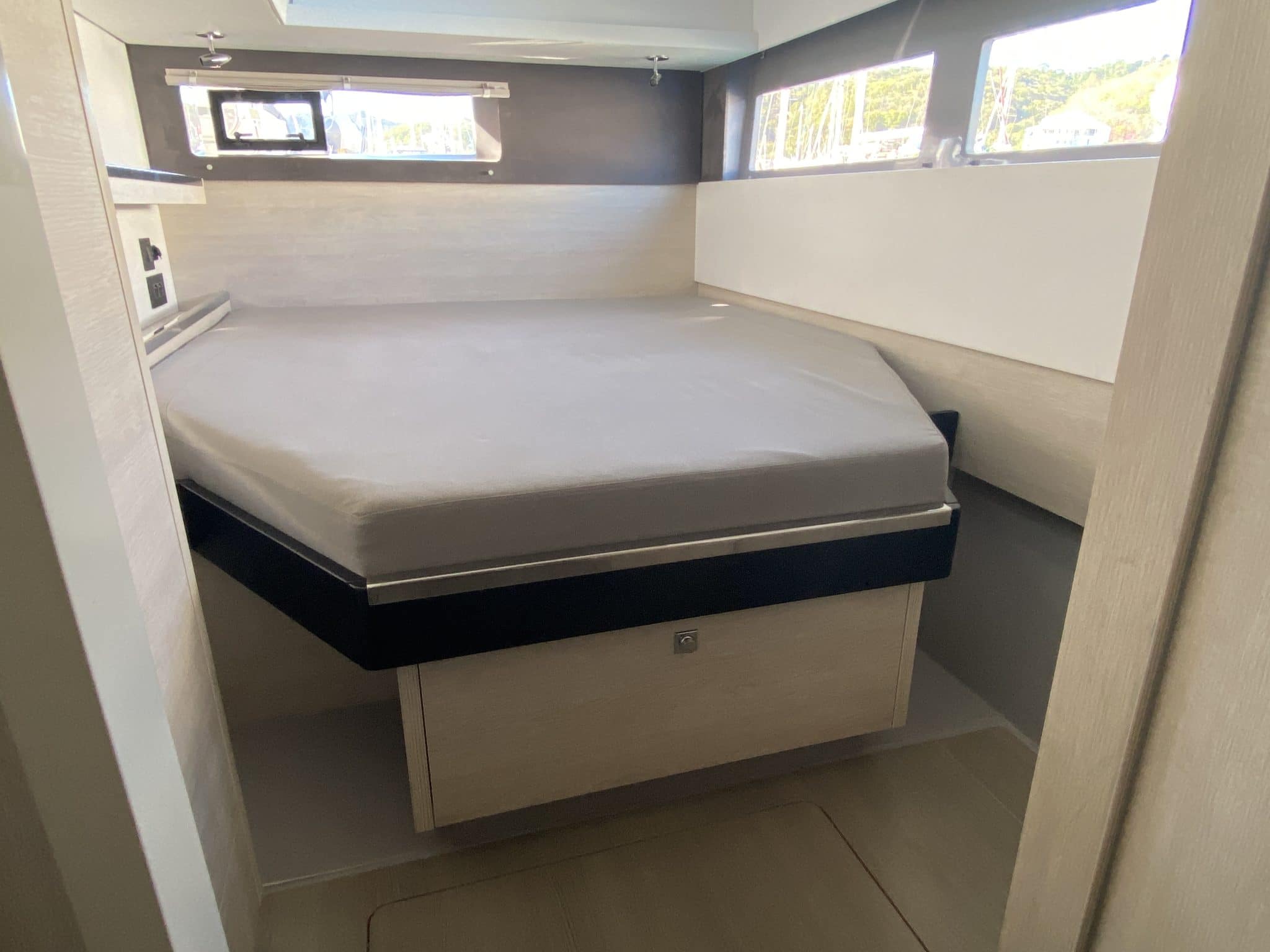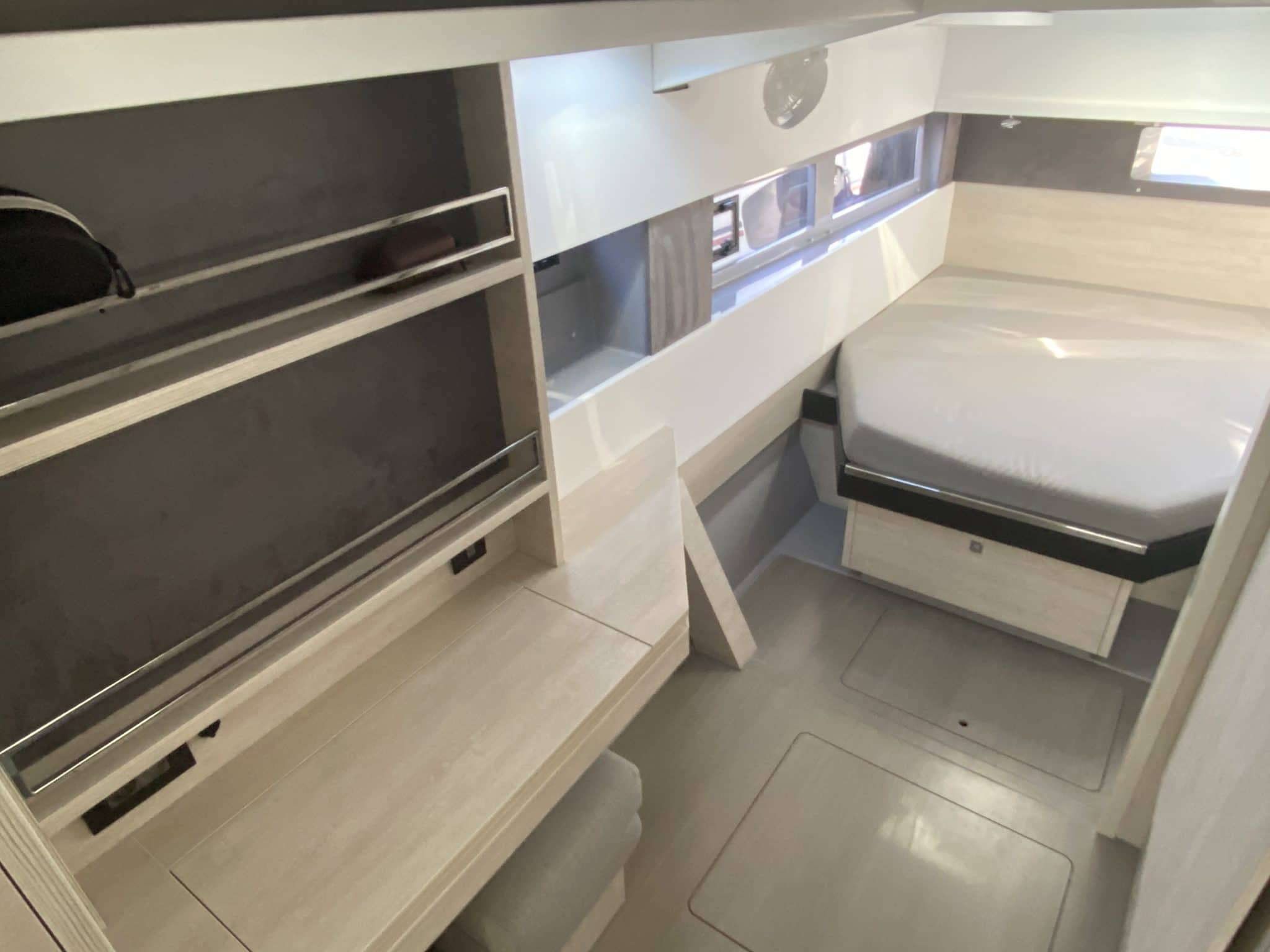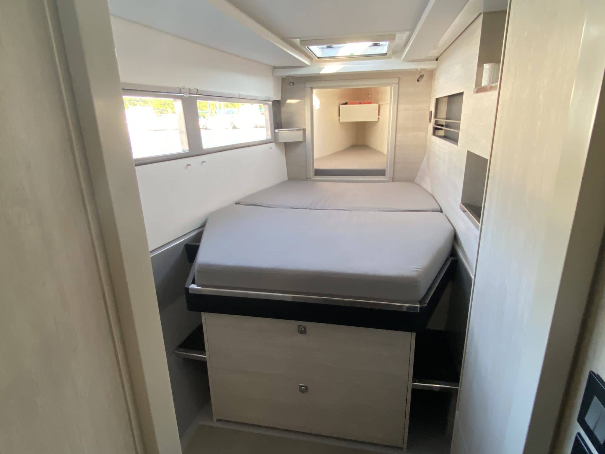 2 double cabins + 2 heads + forward point converted into a child’s bed