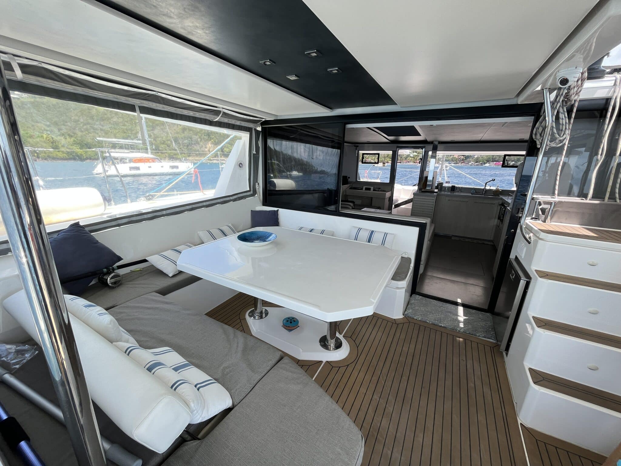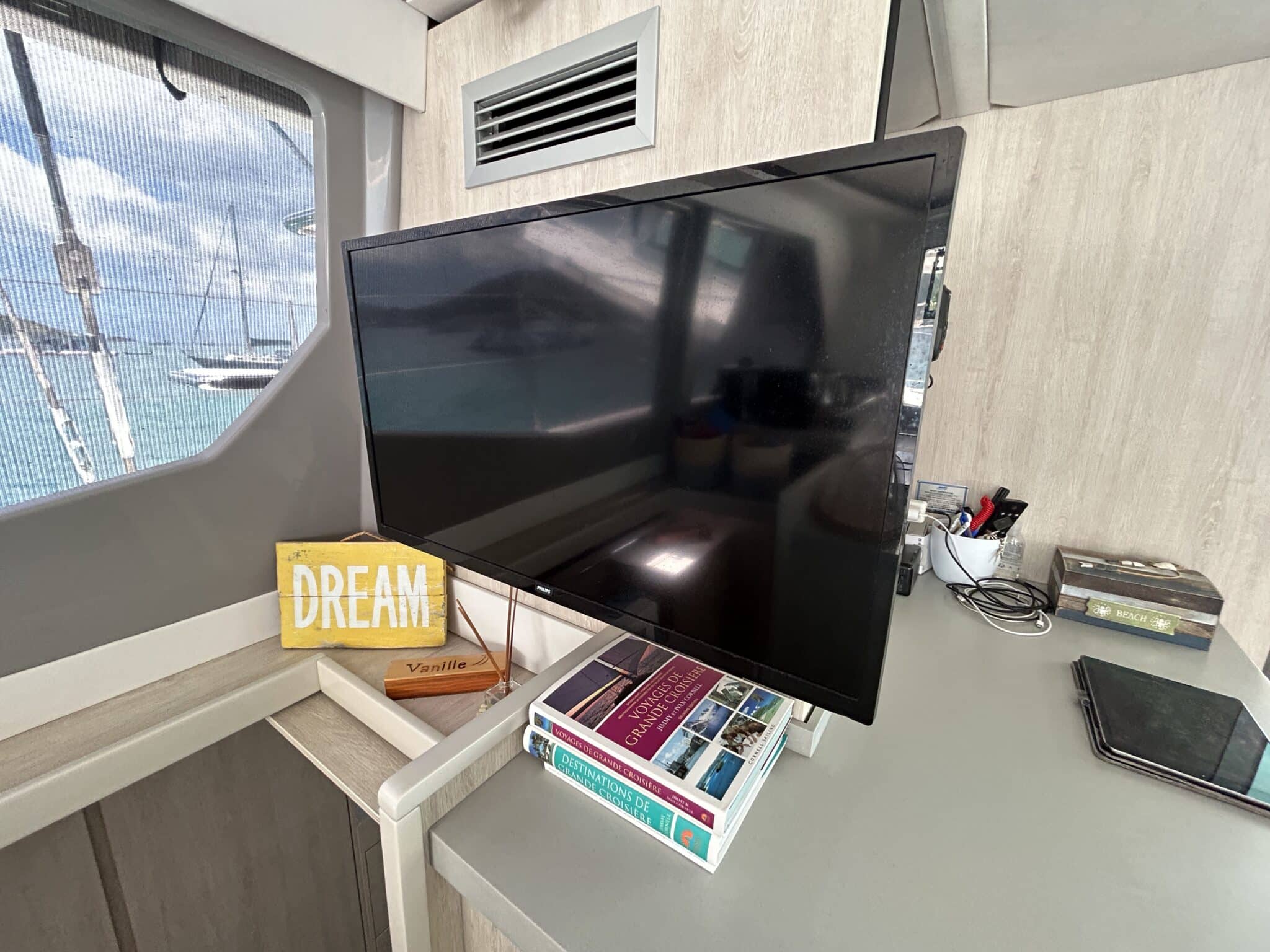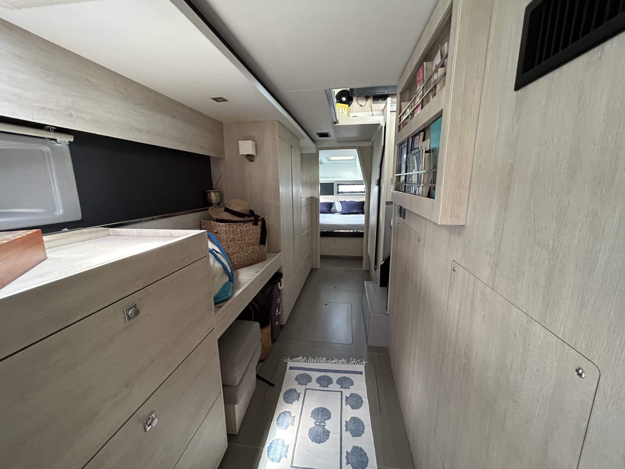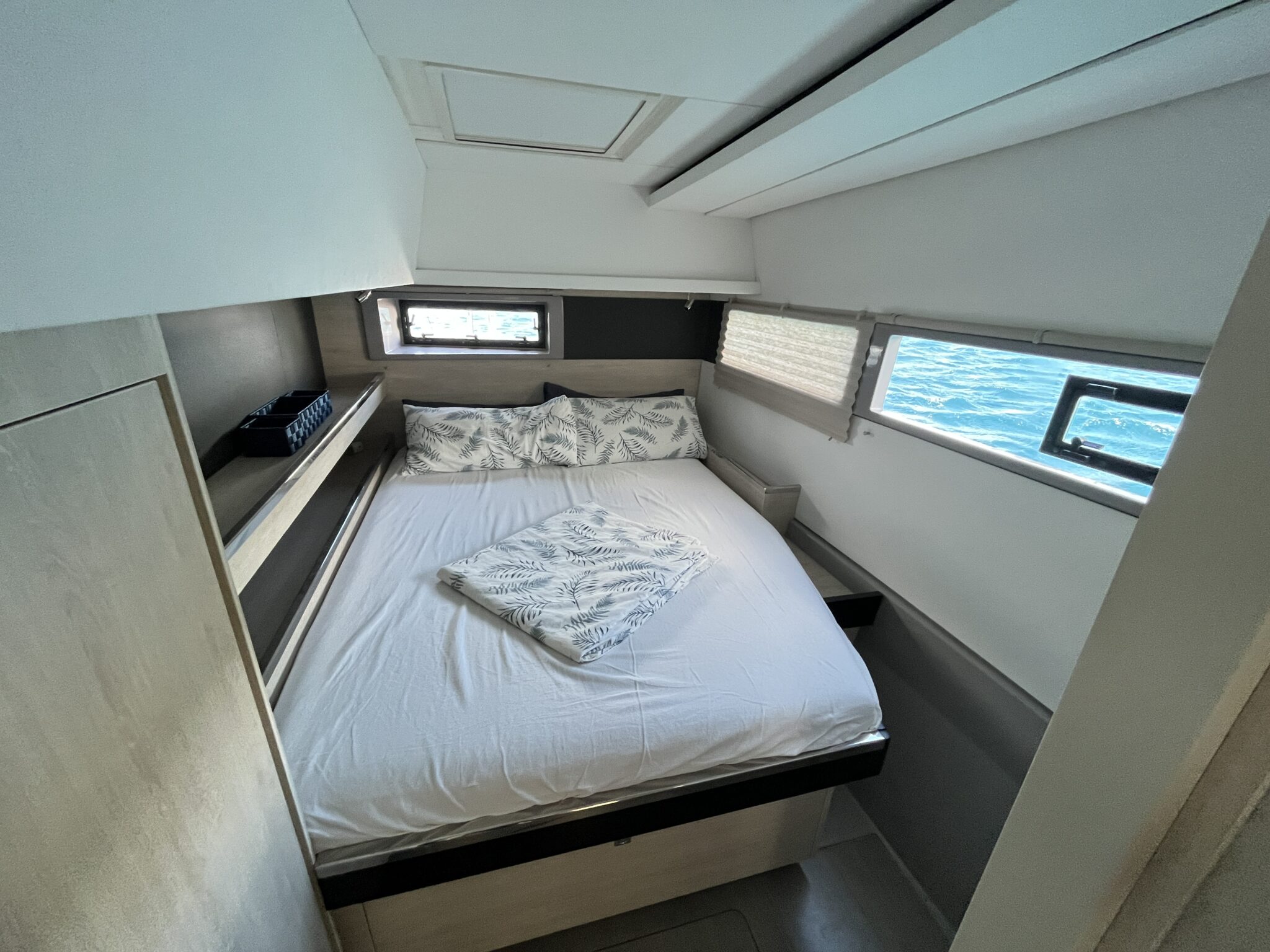 Owner’s version, saloon , front and rear cockpits, Full electronics – YANMAR 45 Hp engines – Genset 220 V  9000 W – Electric Winches – Lithium Batteries – Solar Panels – Water Maker – Air Conditioning – Dinghy + 30 Hp OB with electric start – Kayak – Paddle – Electric Bike – Electric Scooter -StarLink – STARLINK   Ideal for World Tour !
