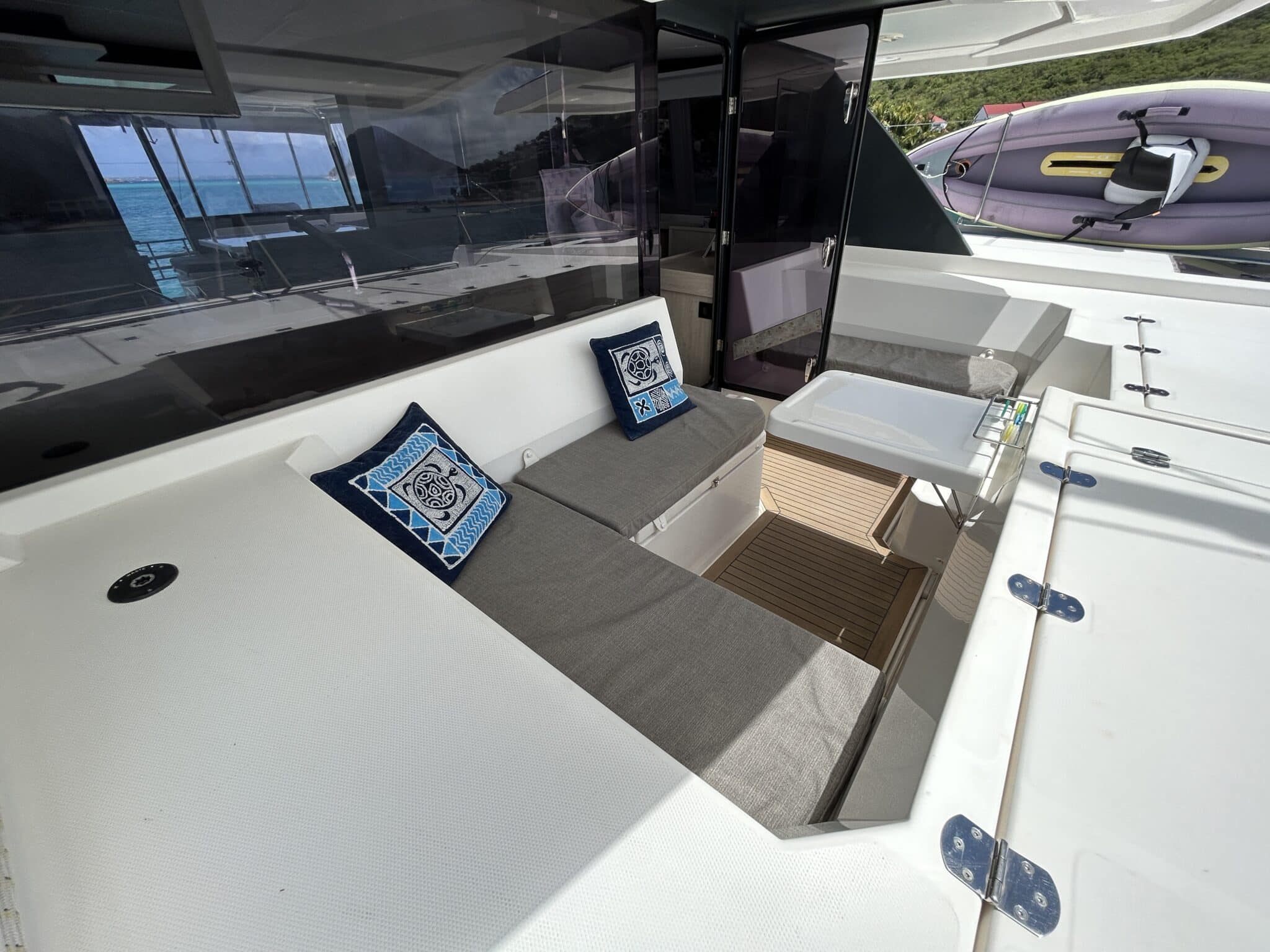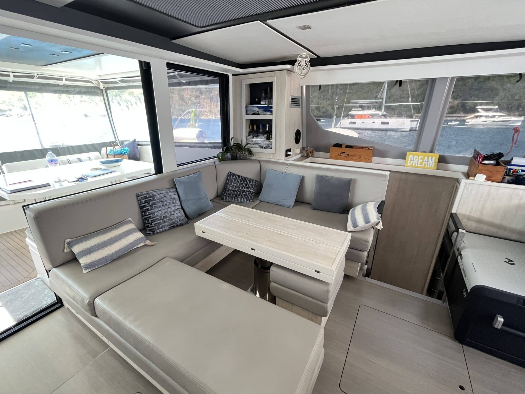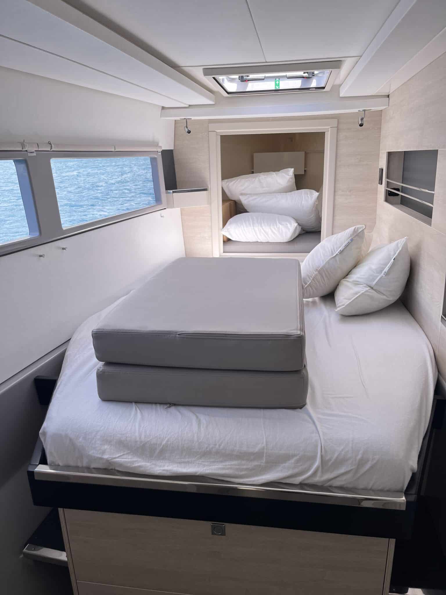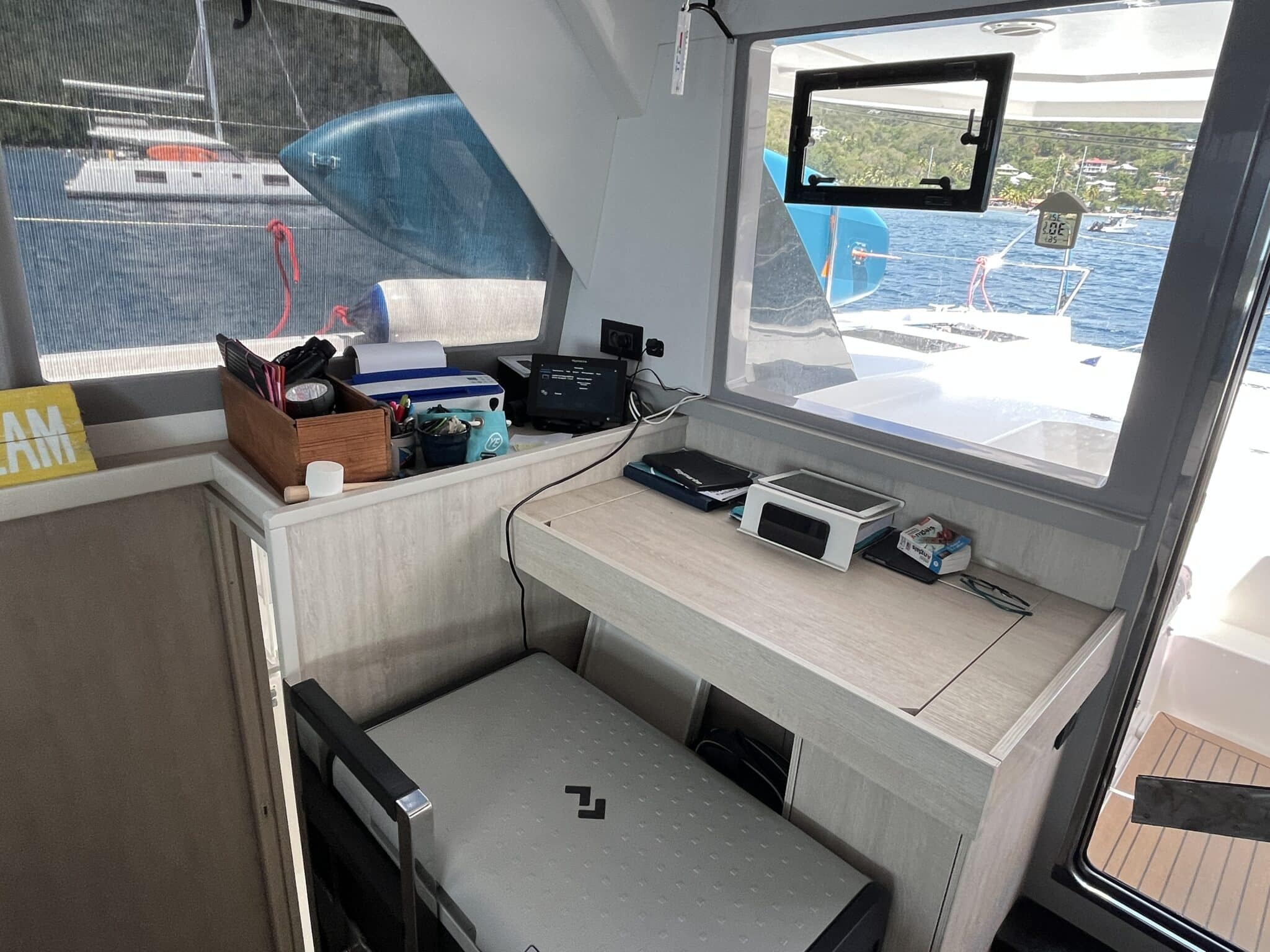 Owner’s version, saloon , front and rear cockpits, Full electronics – YANMAR 45 Hp engines – Genset 220 V  9000 W – Electric Winches – Lithium Batteries – Solar Panels – Water Maker – Air Conditioning – Dinghy + 30 Hp OB with electric start – Kayak – Paddle – Electric Bike – Electric Scooter -StarLink – STARLINK   Ideal for World Tour !